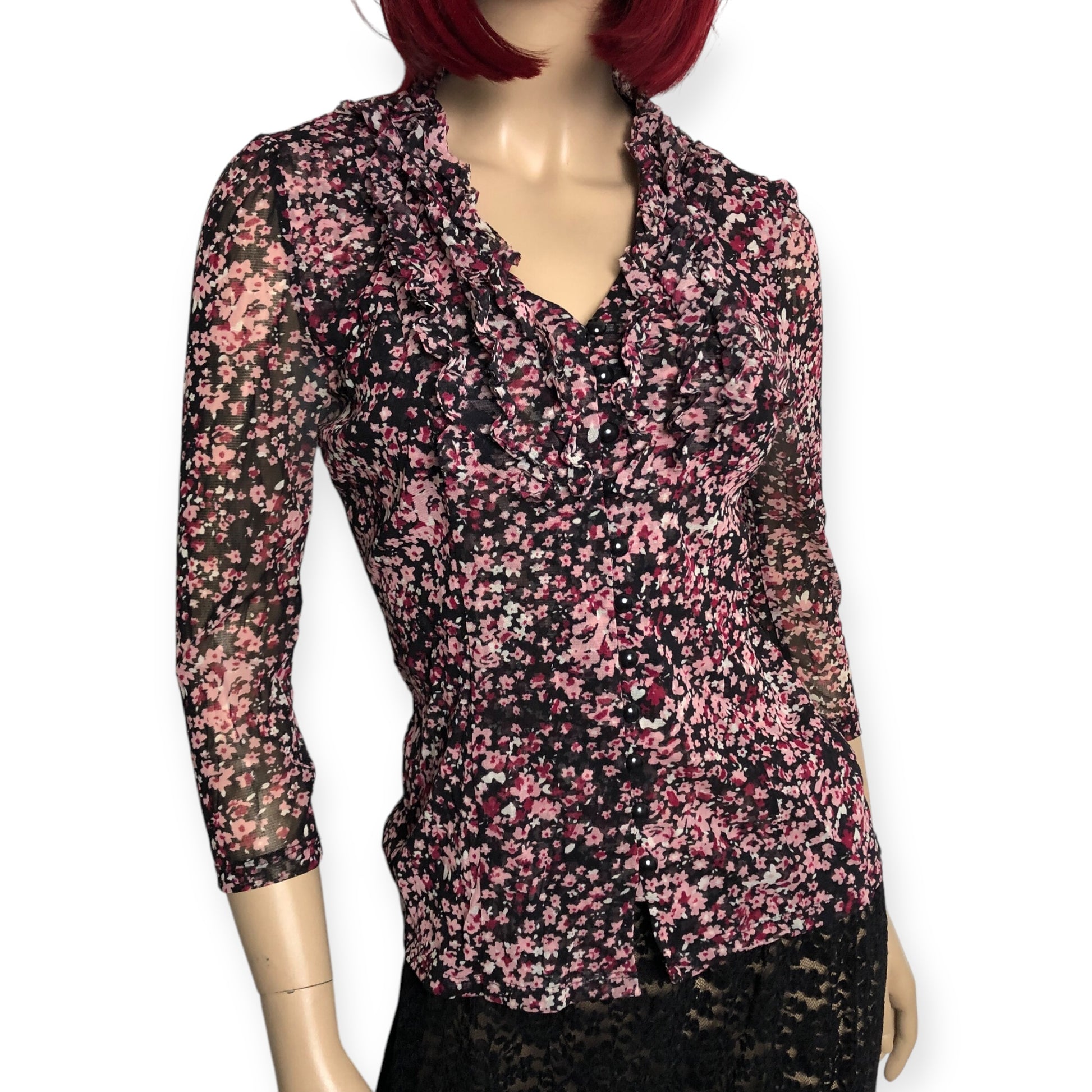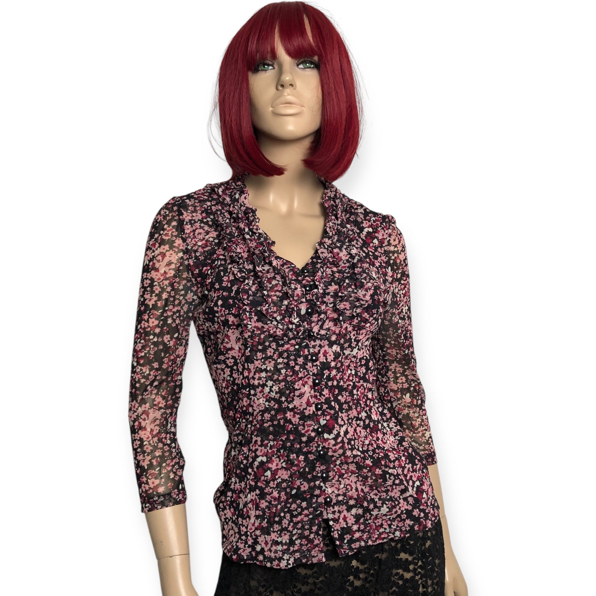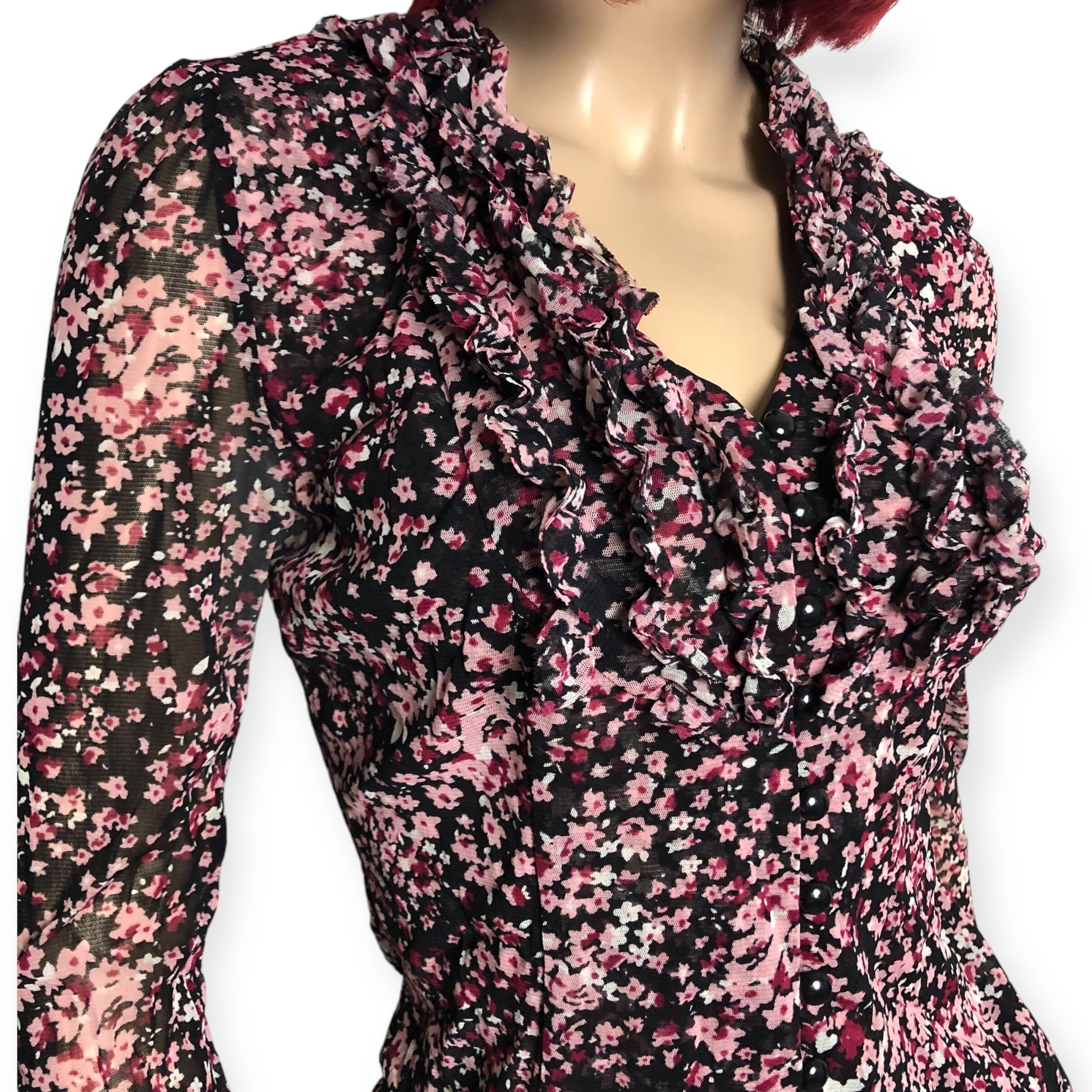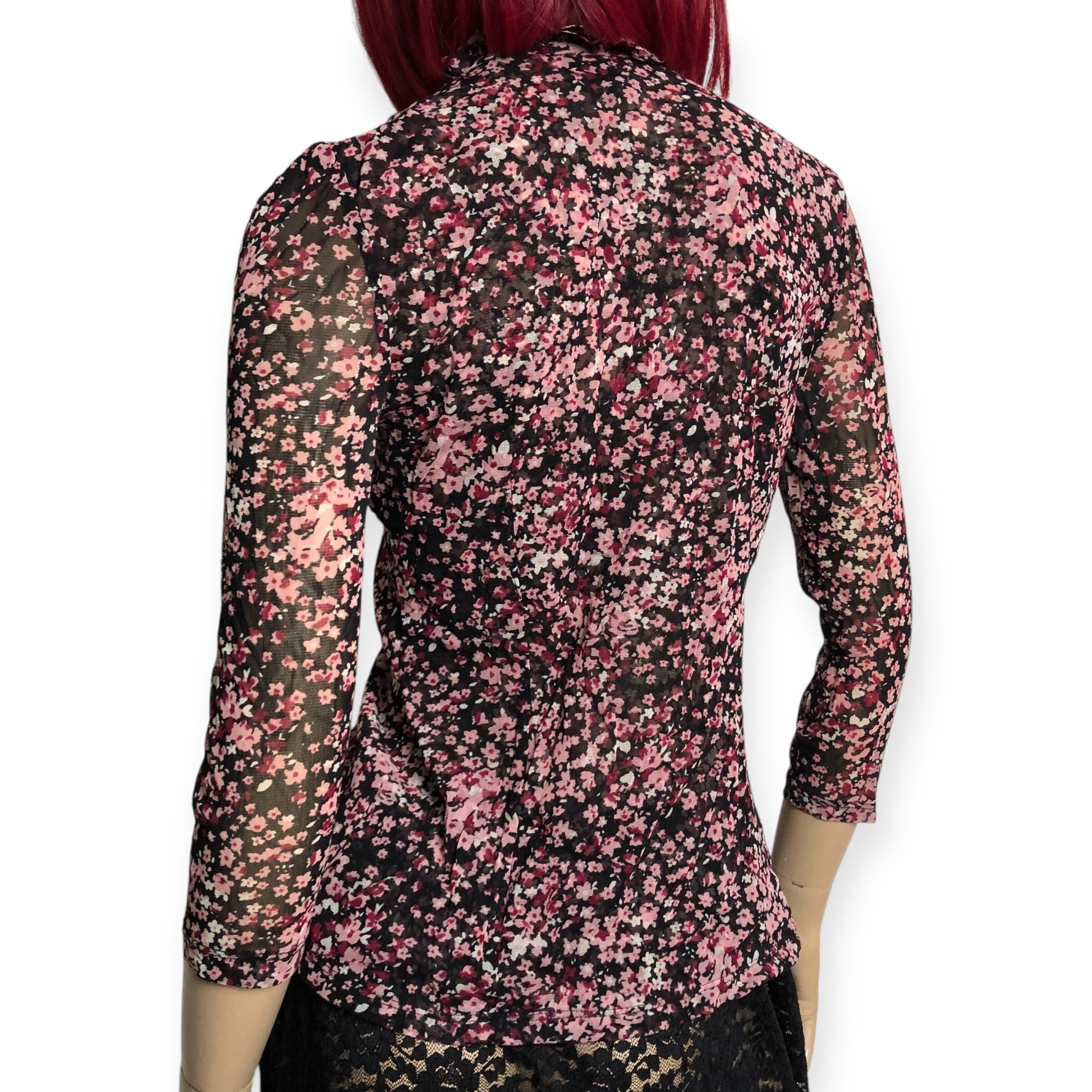 90’s INC International Concepts Black and Pink Floral Print Mesh Blouse (M)