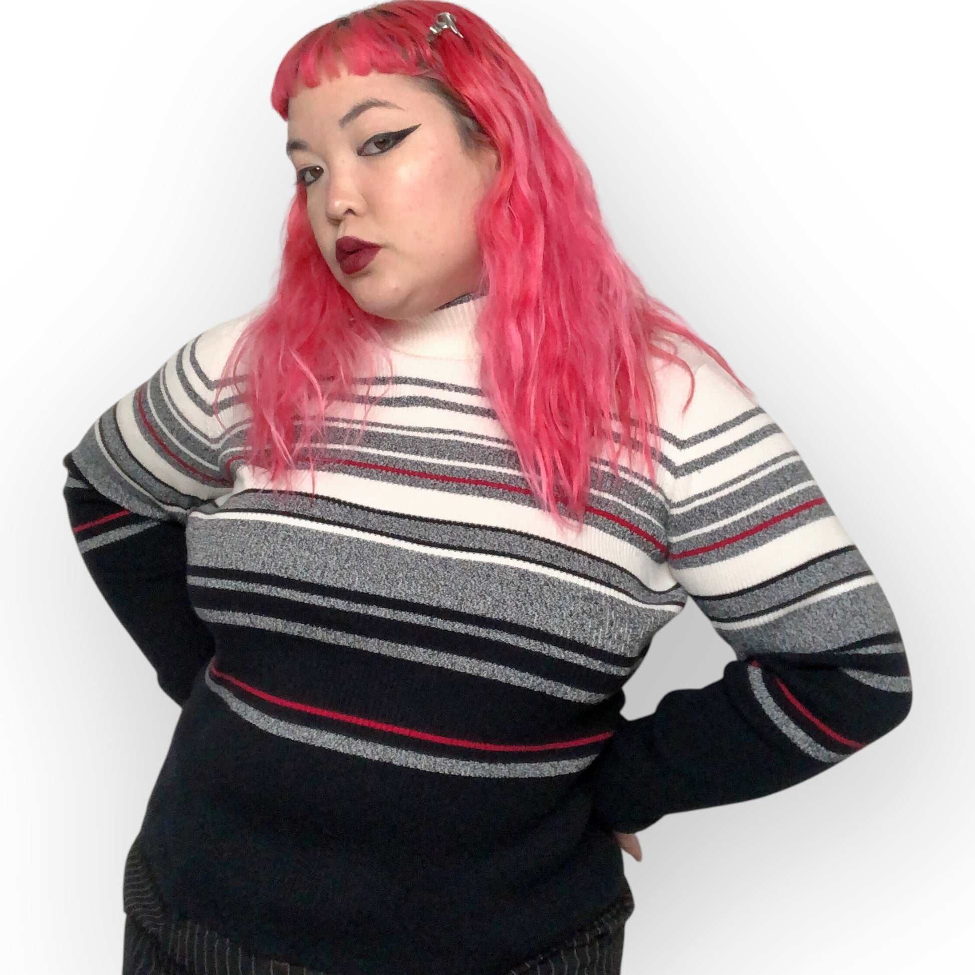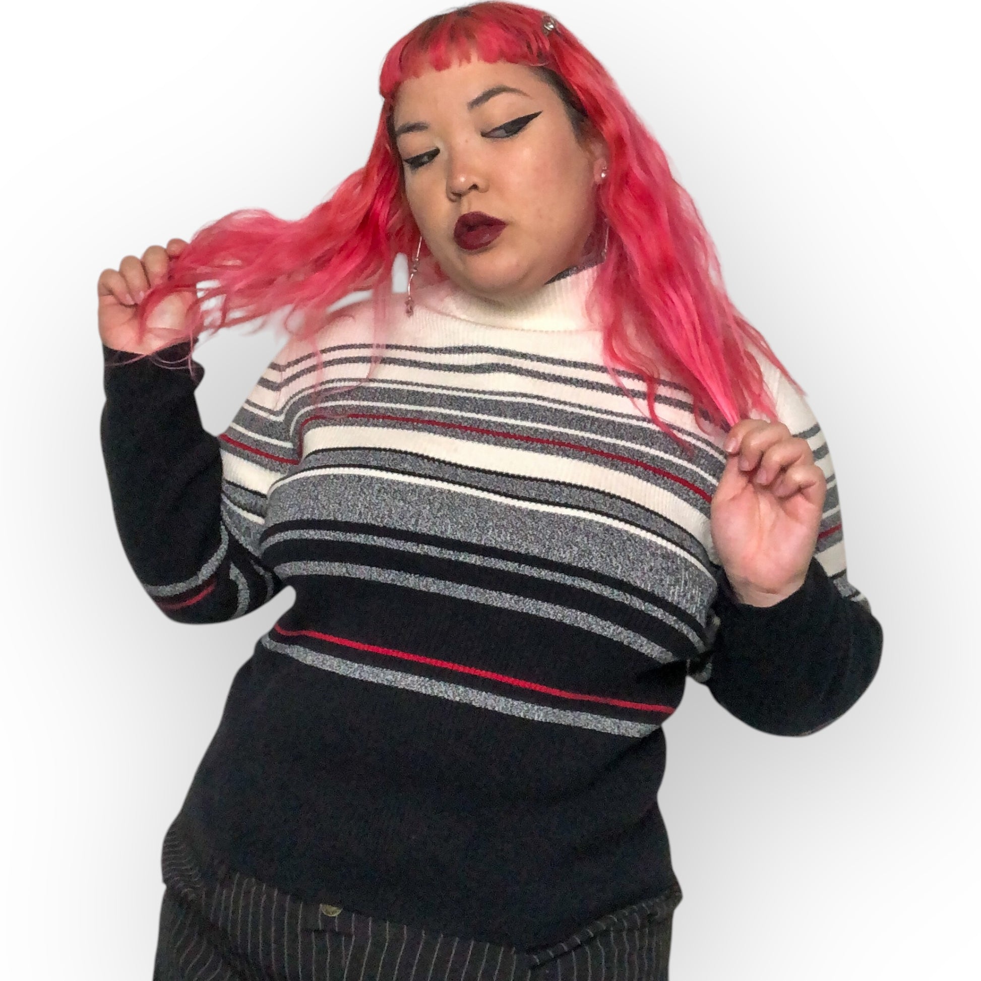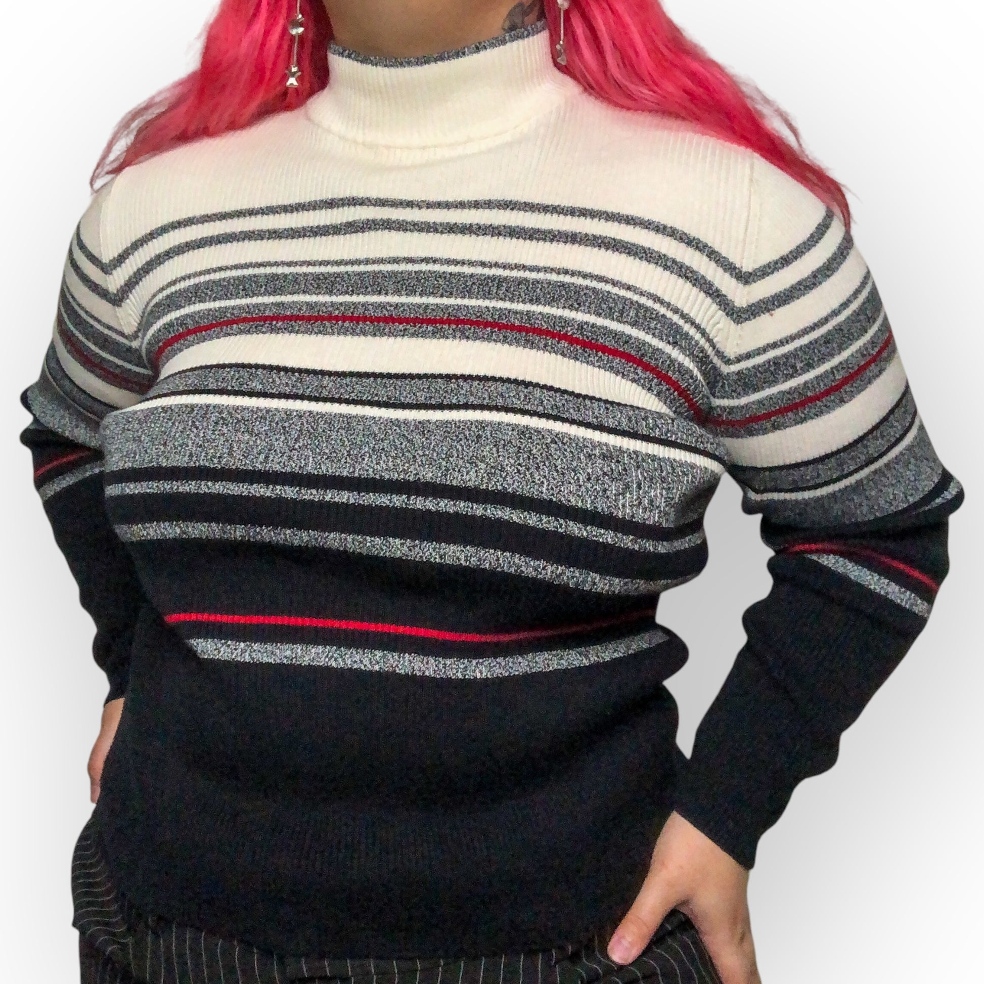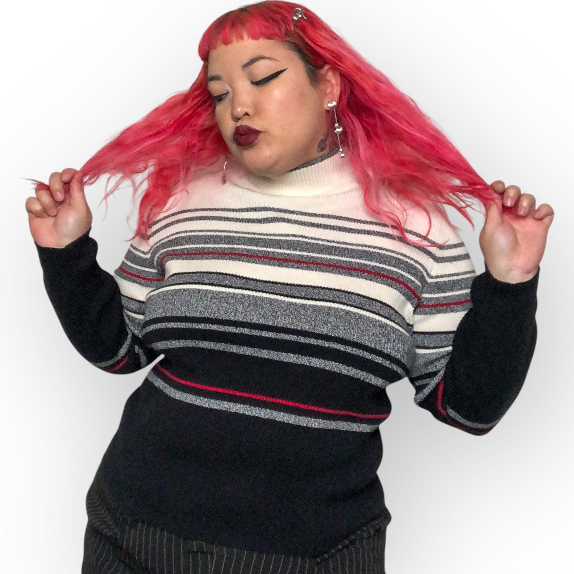 90’s Karen Scott Striped Mock Turtleneck Sweater (XL)