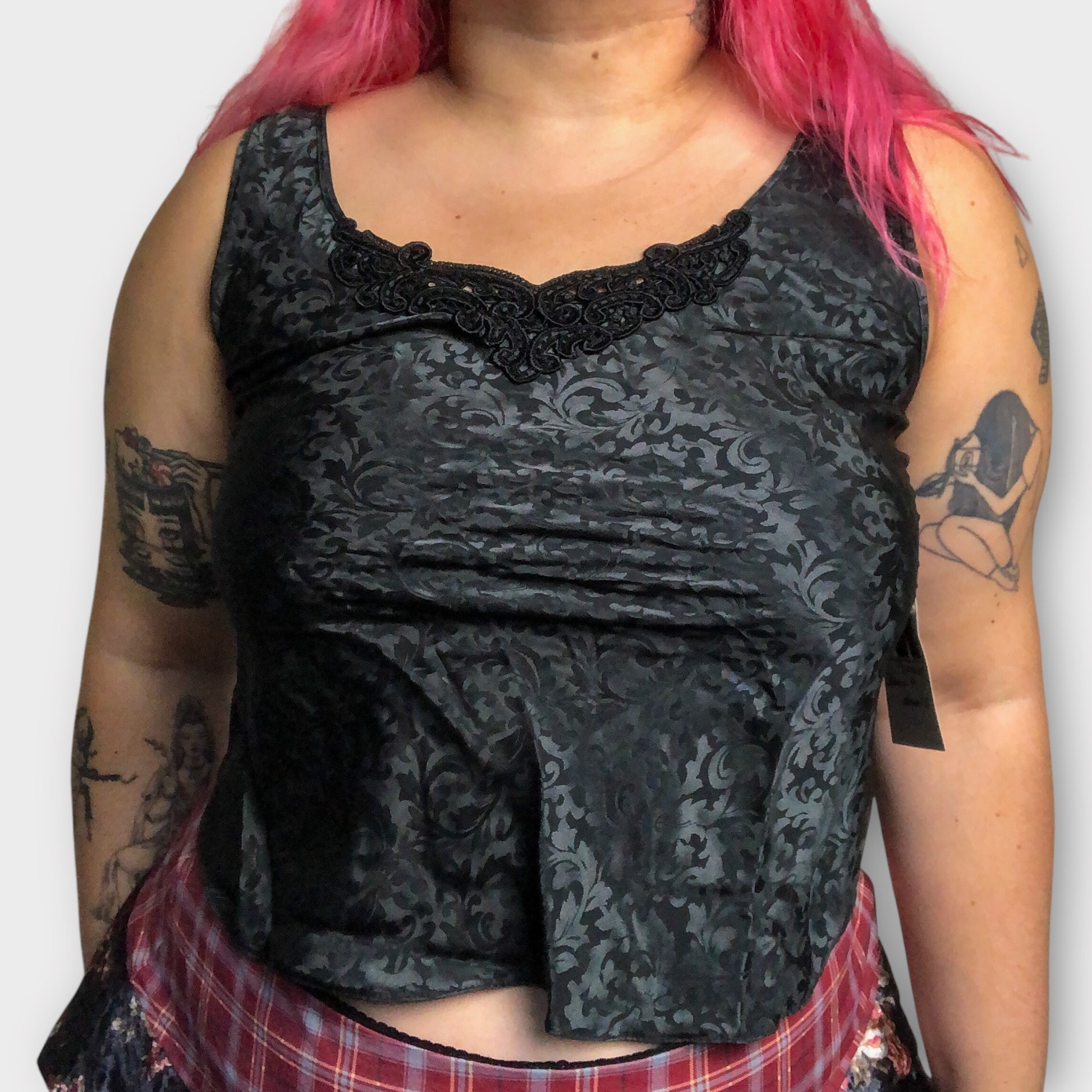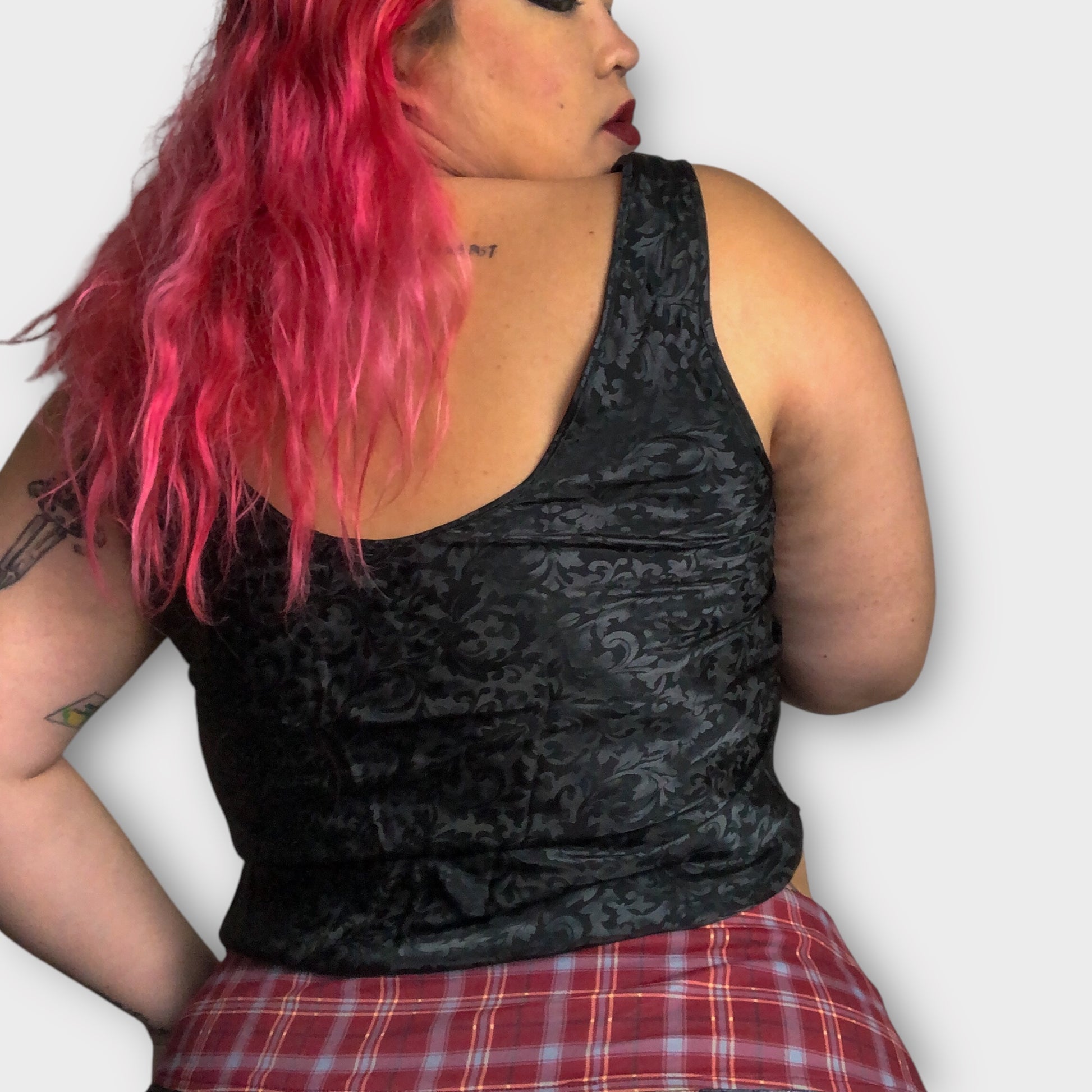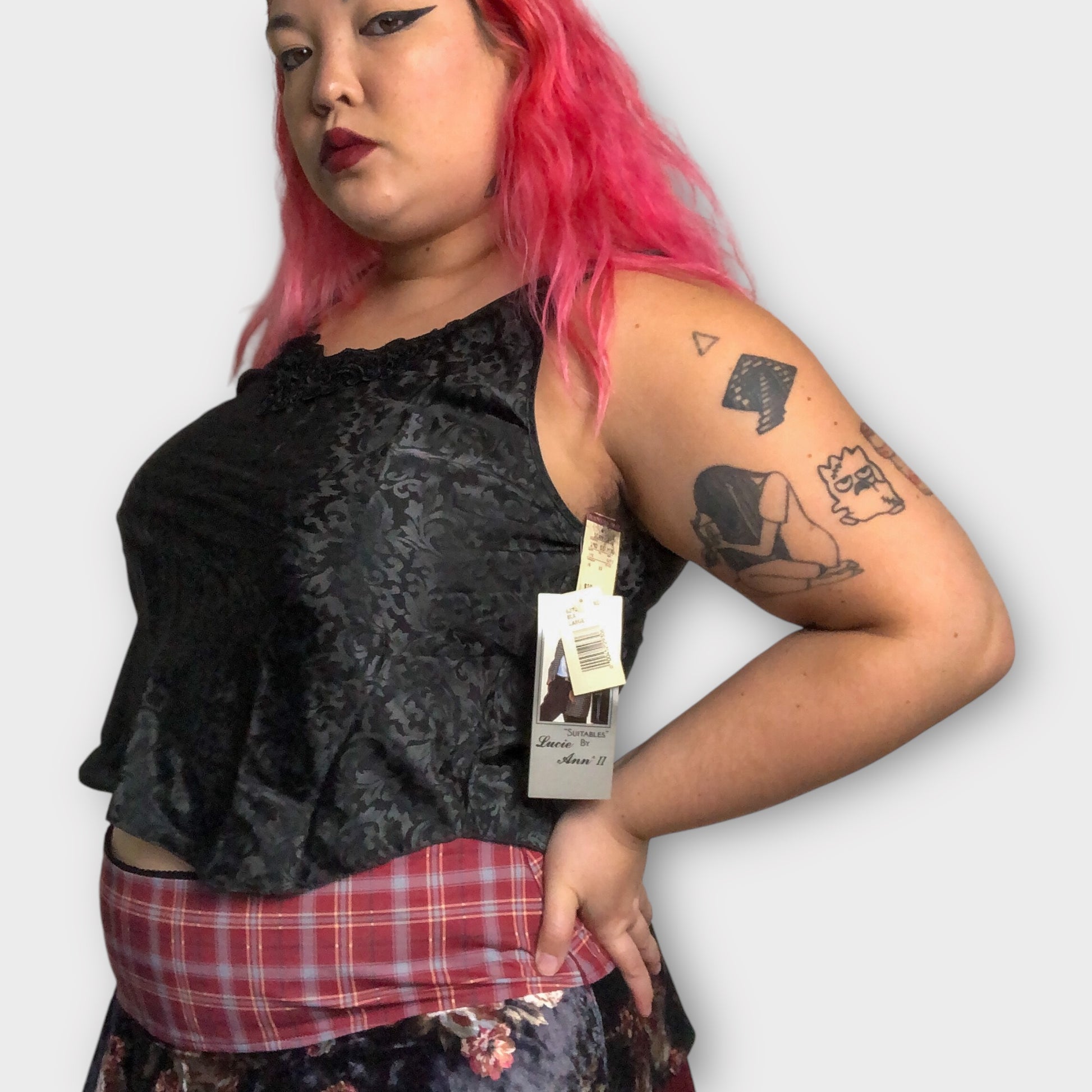90’s Lucie Ann II Black Filigree Satin Tank Top (L)