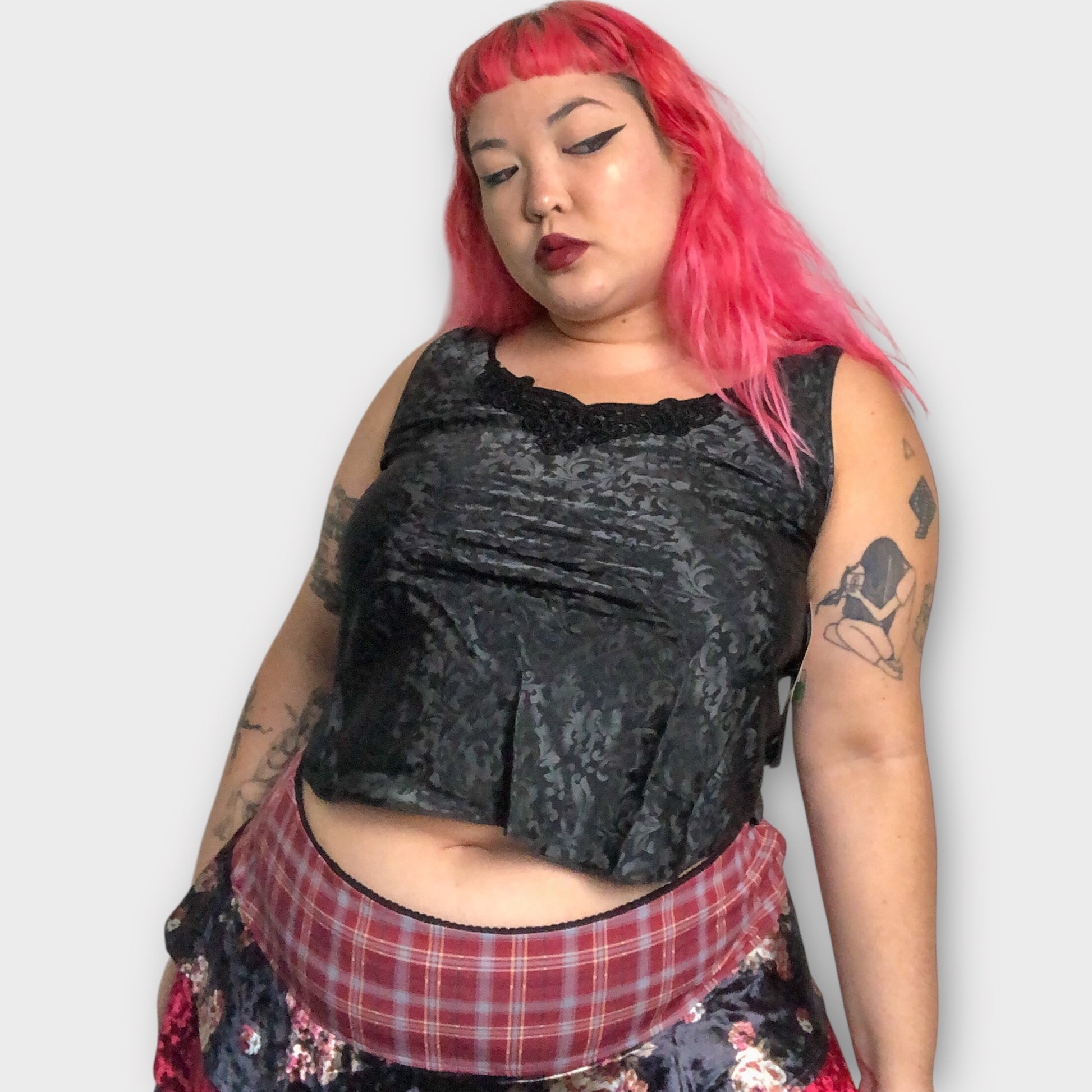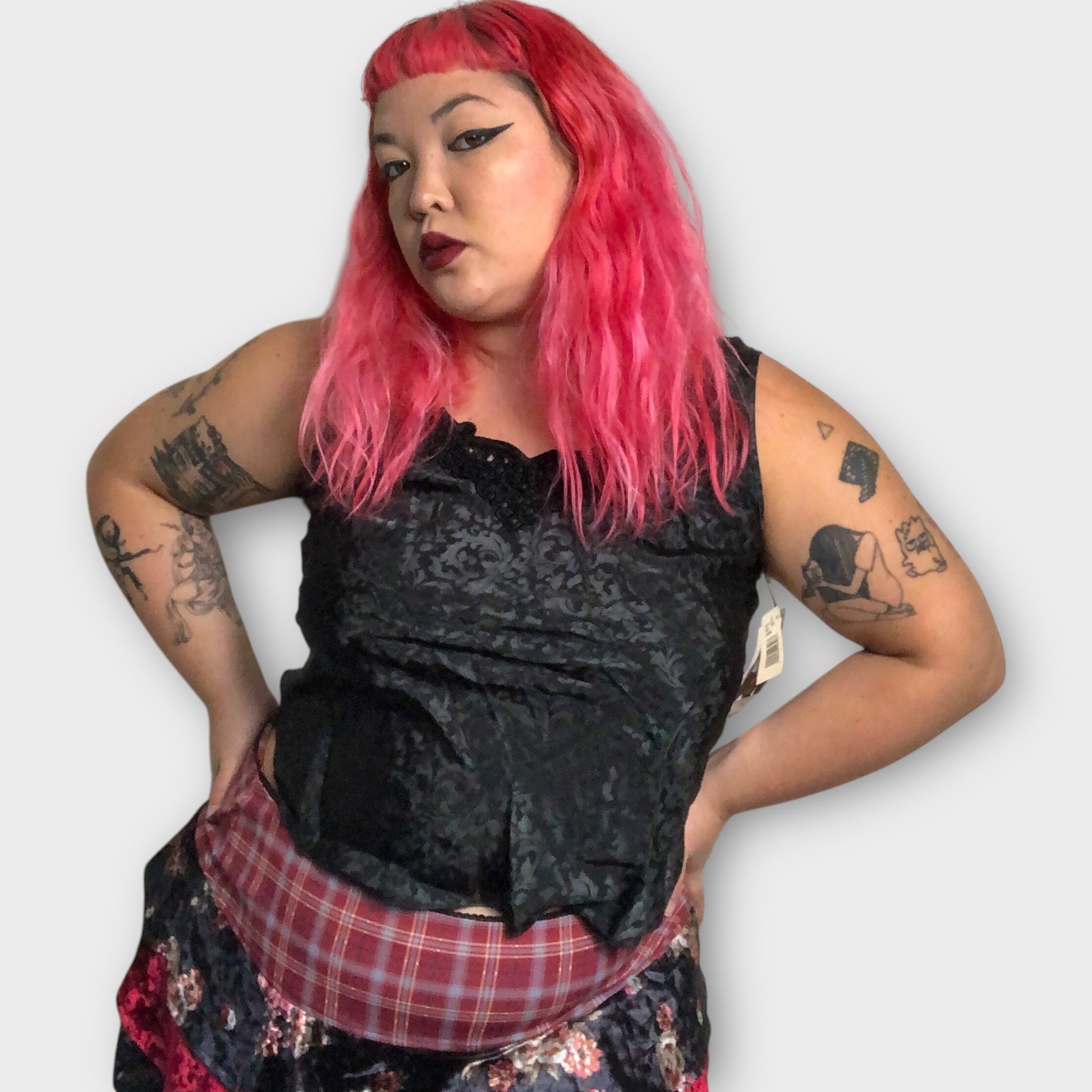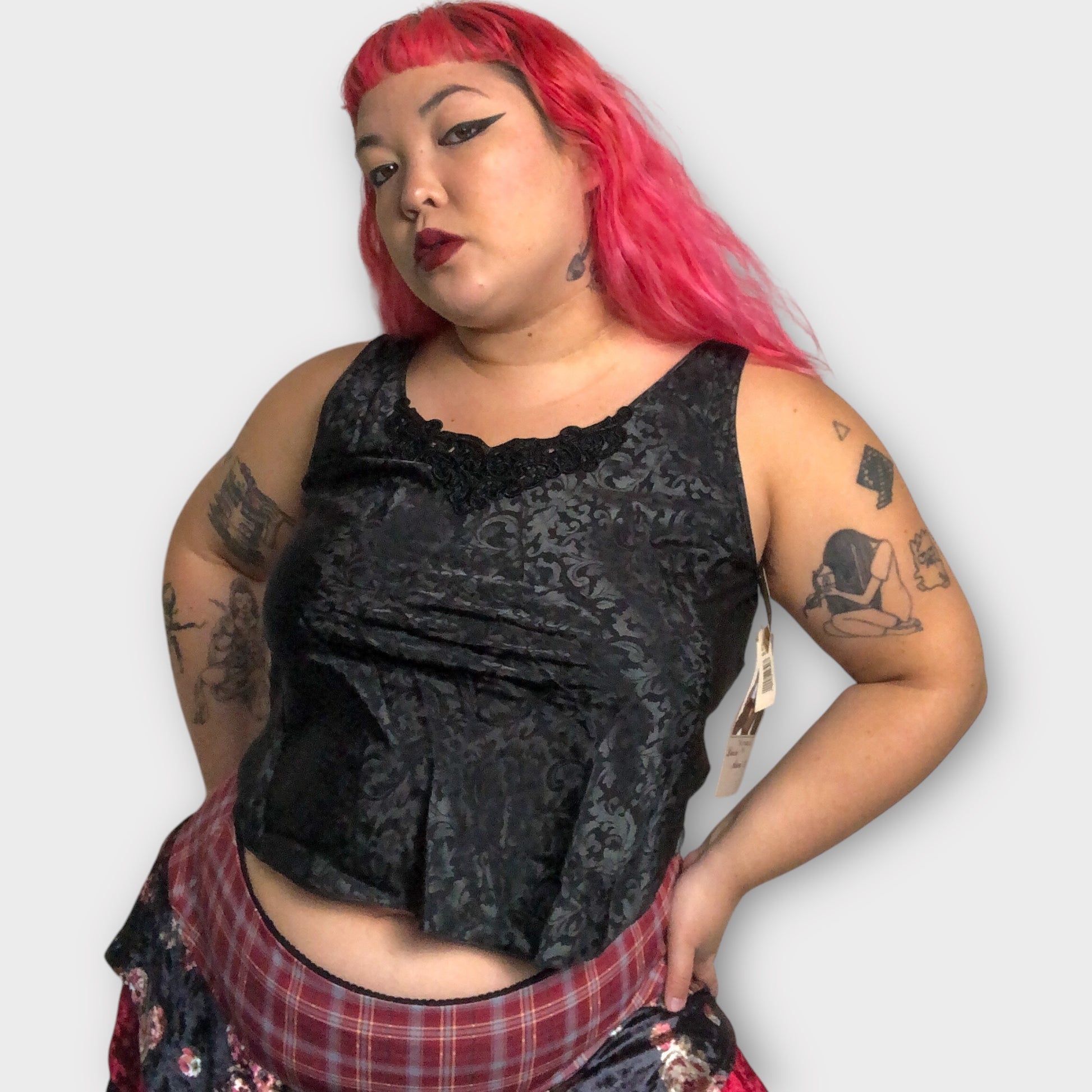 90’s Lucie Ann II Black Filigree Satin Tank Top (L)