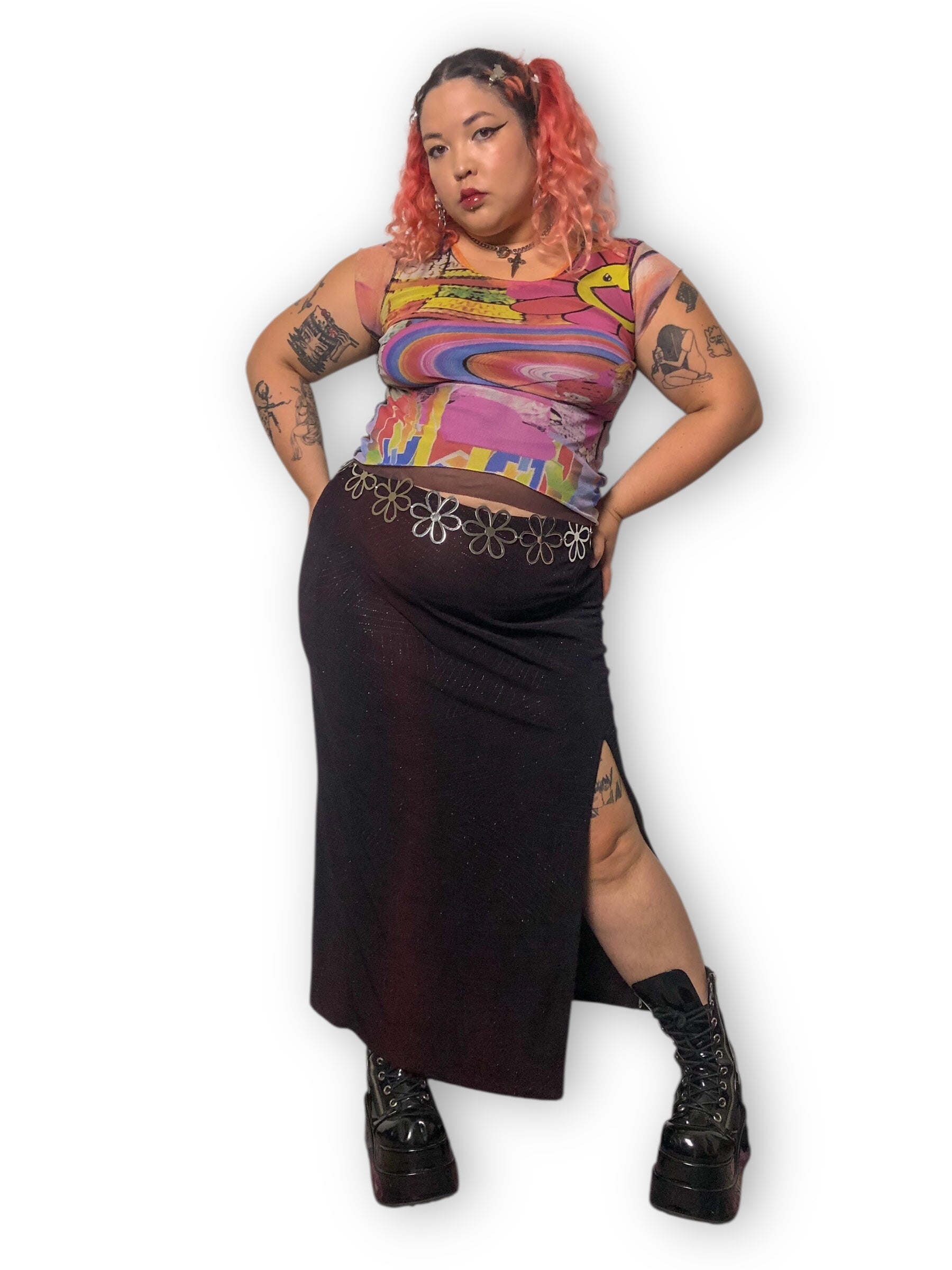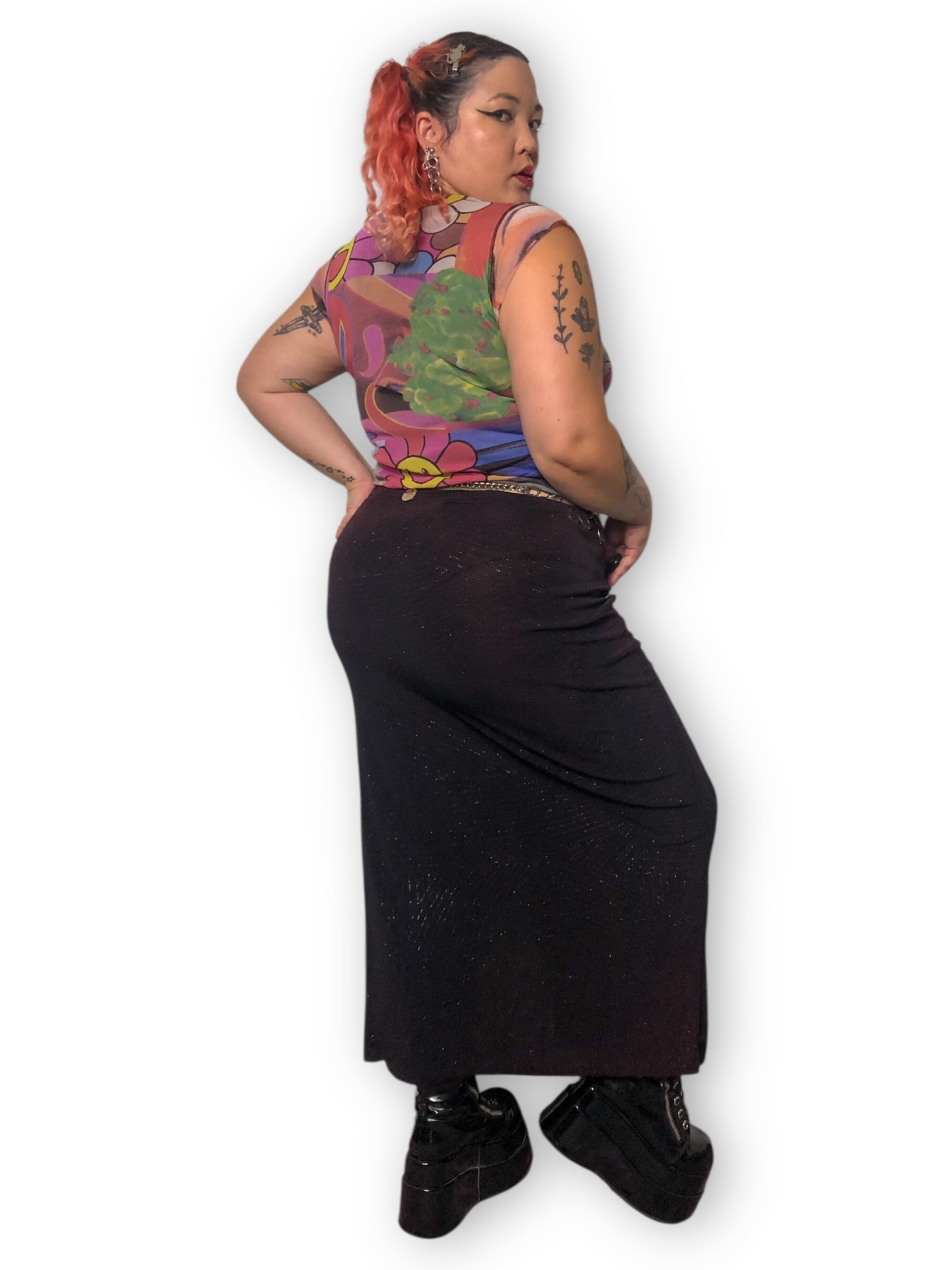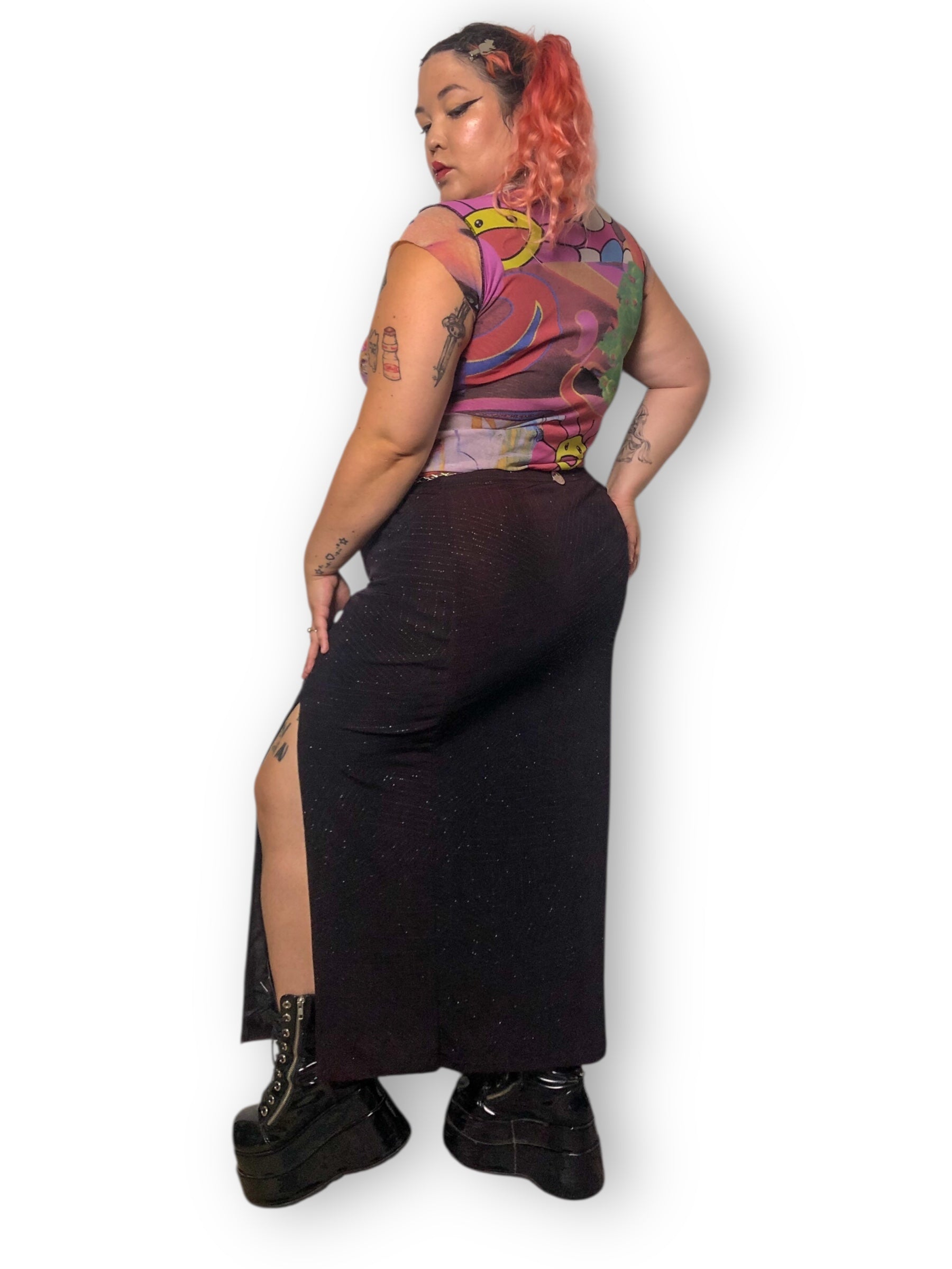 90’s Metro One Black Sparkly Maxi Skirt (XL)