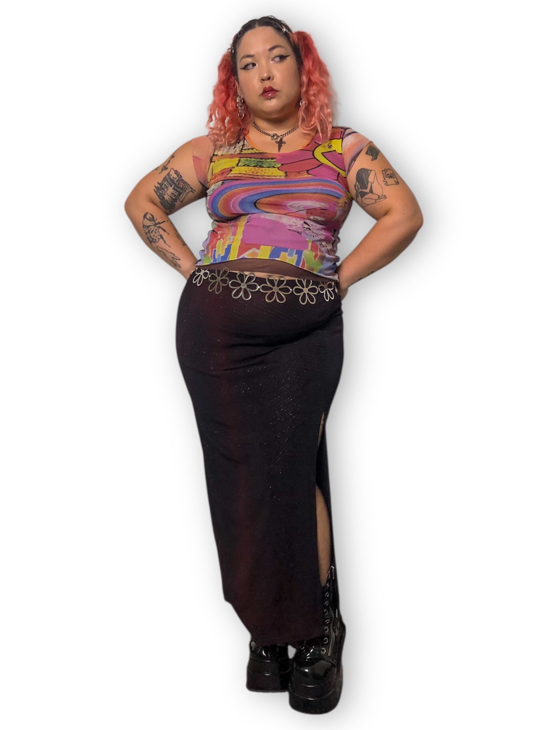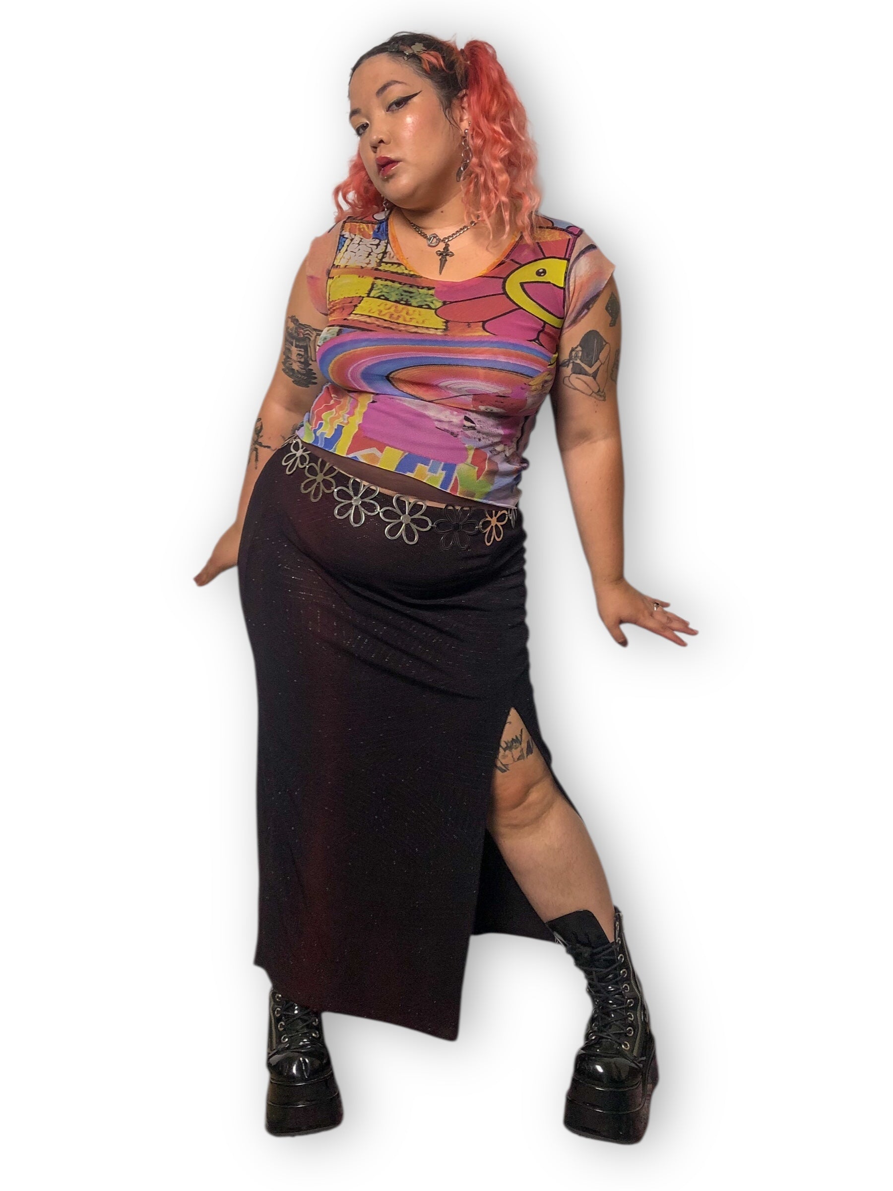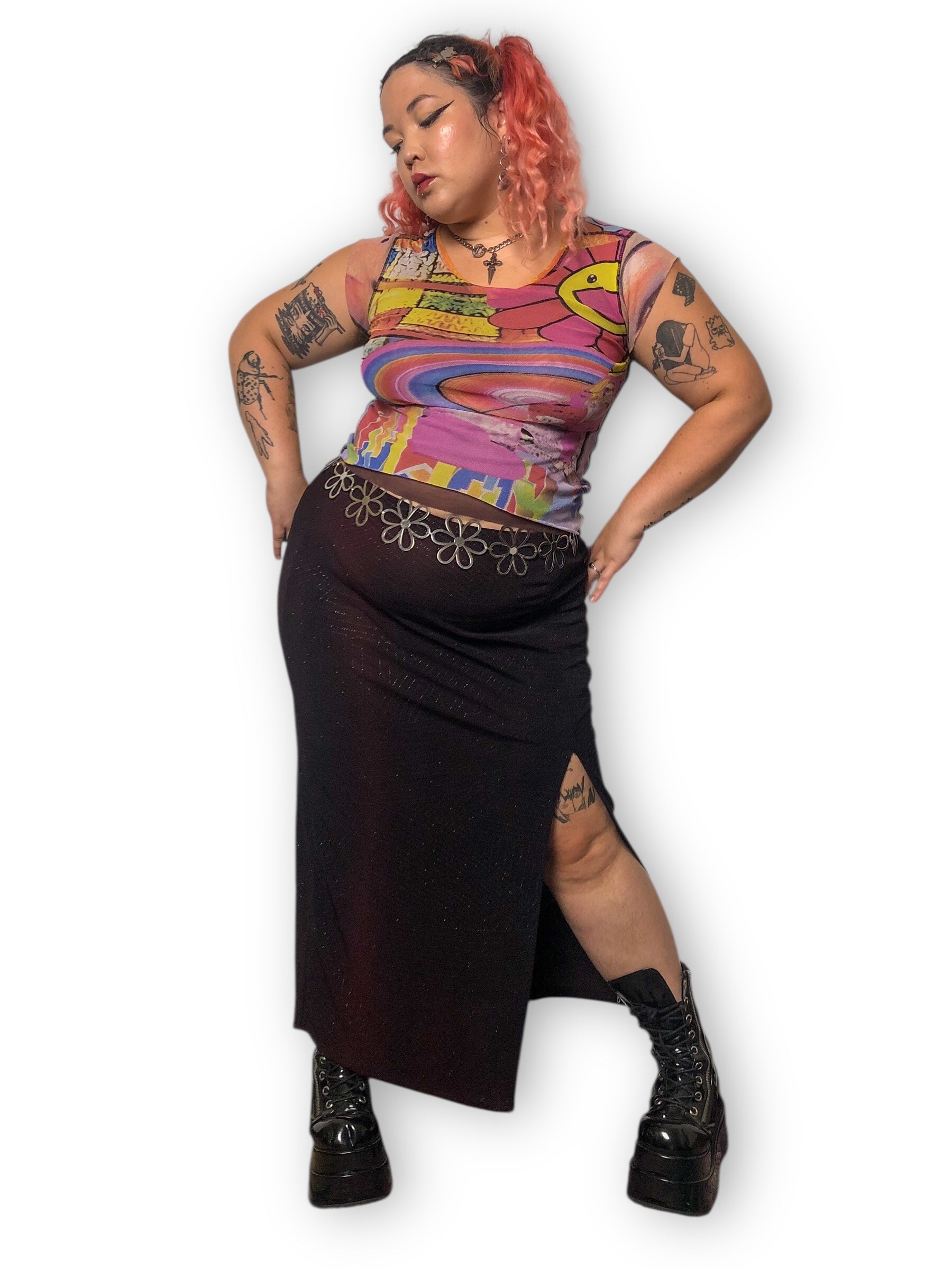 90’s Metro One Black Sparkly Maxi Skirt (XL)