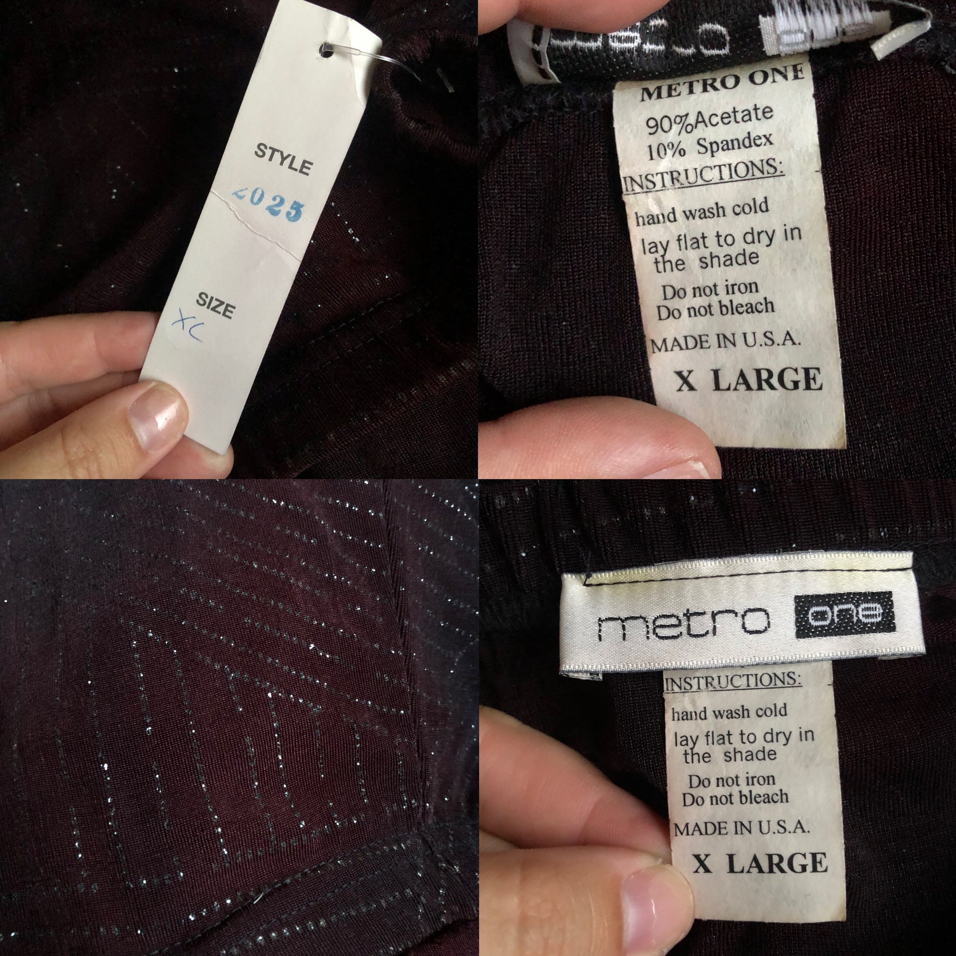 deadstock w/ tags! stretchy elastic waistband + stretchy throughout (90% acetate 10% spandex), front slit, made in USA — slight discoloration from age (pictured)