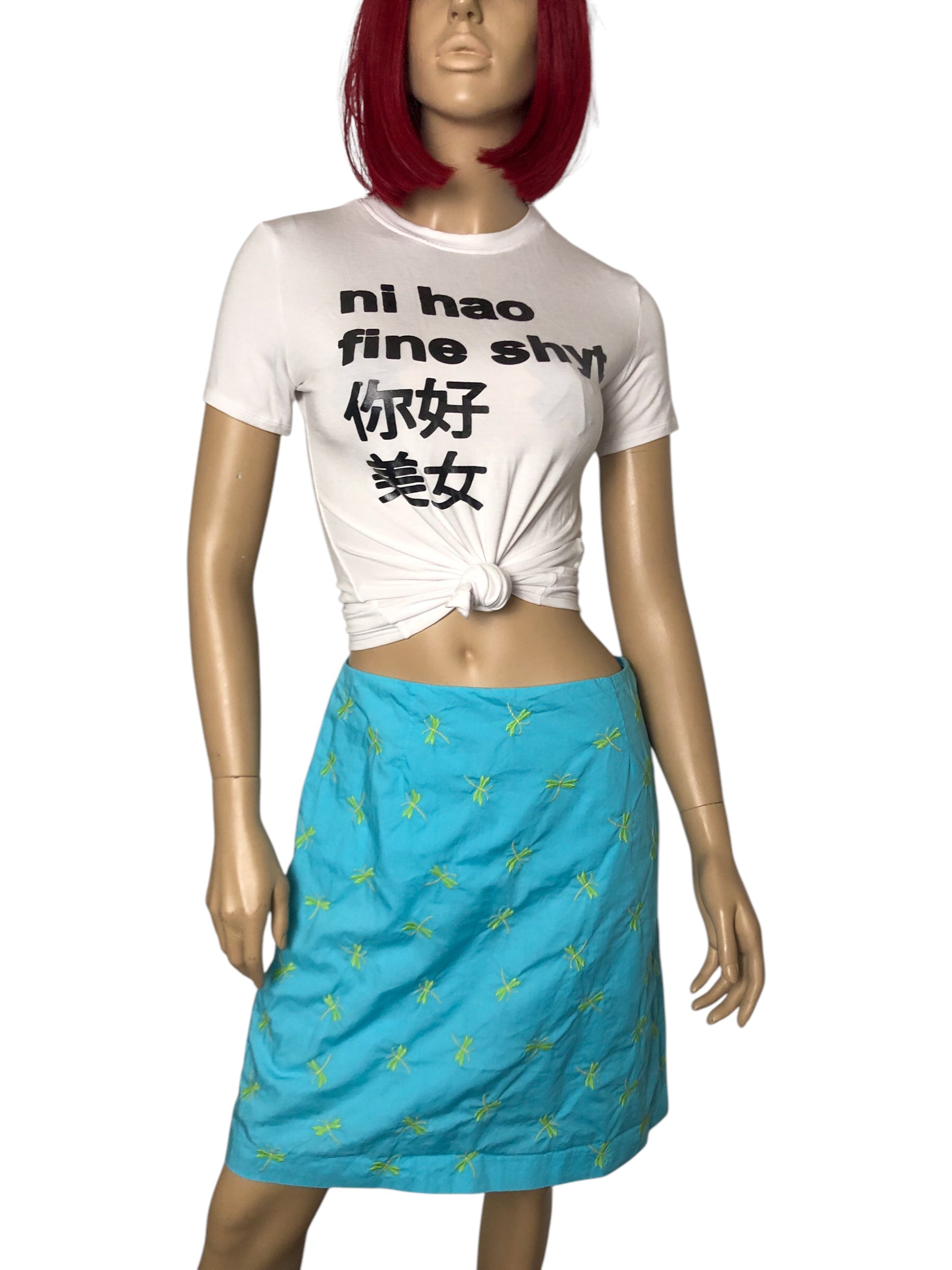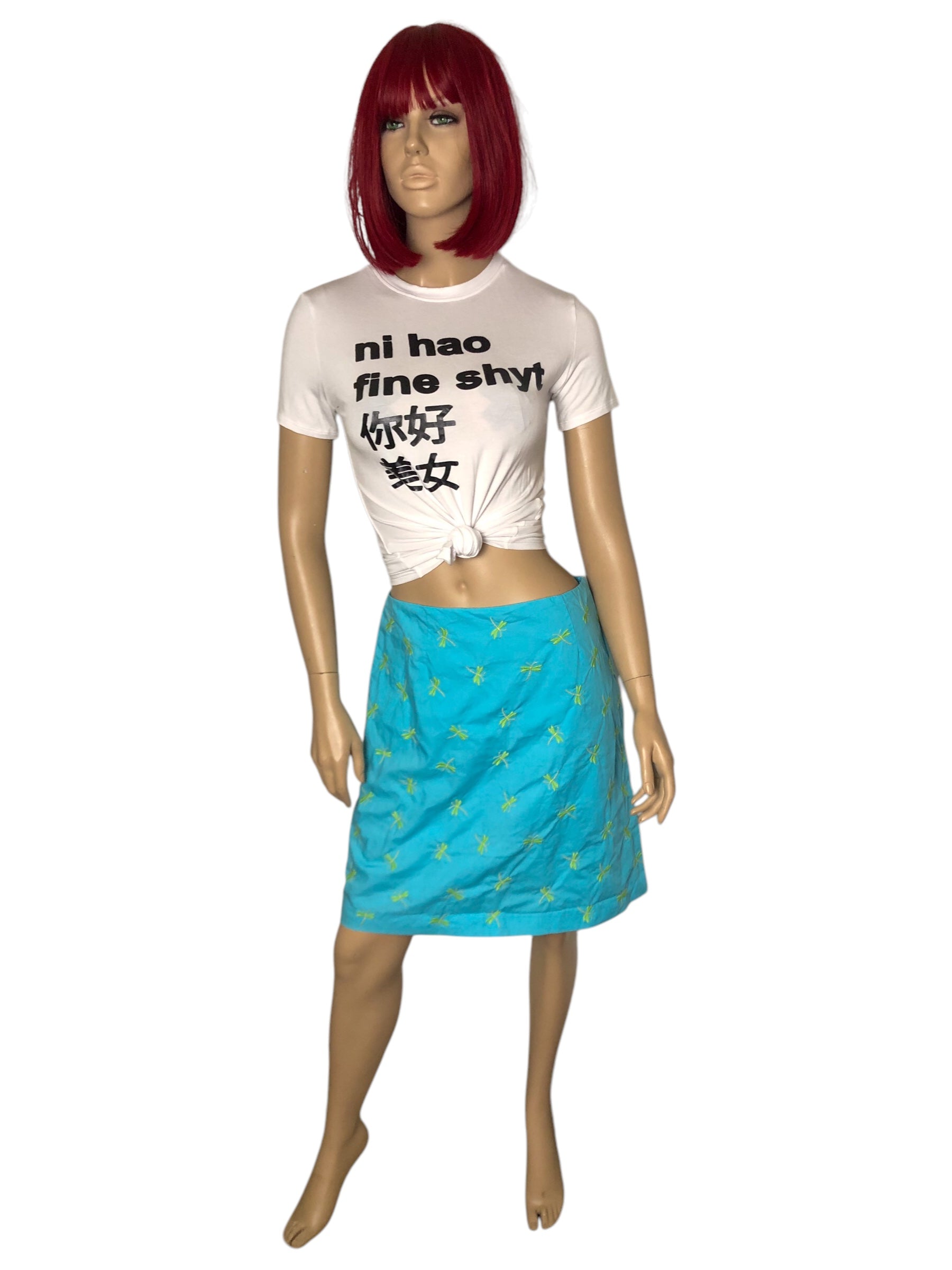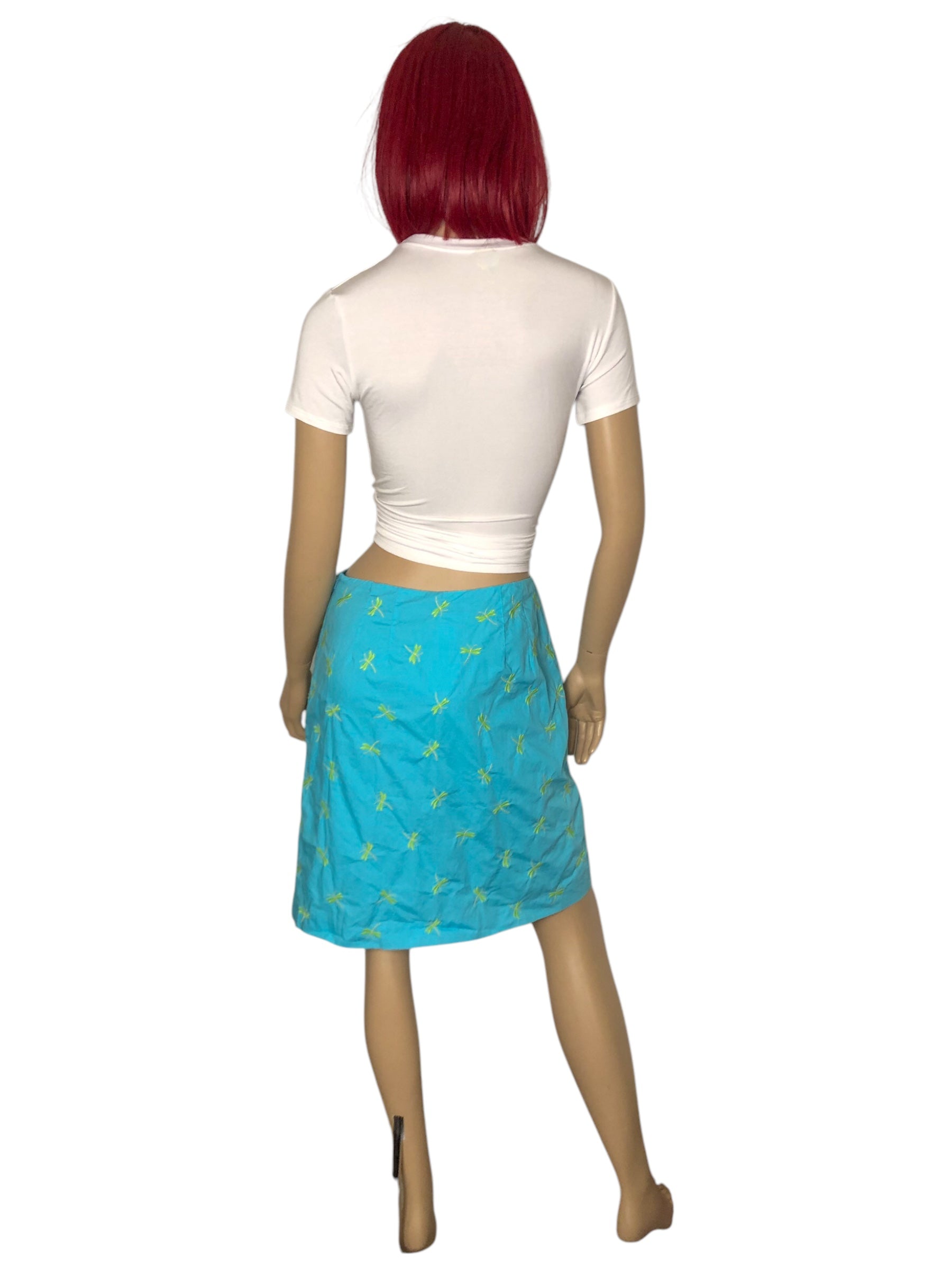 cute green dragonfly embroidery throughout! side button + zipper closure, no stretch - 100% cotton lining & shell