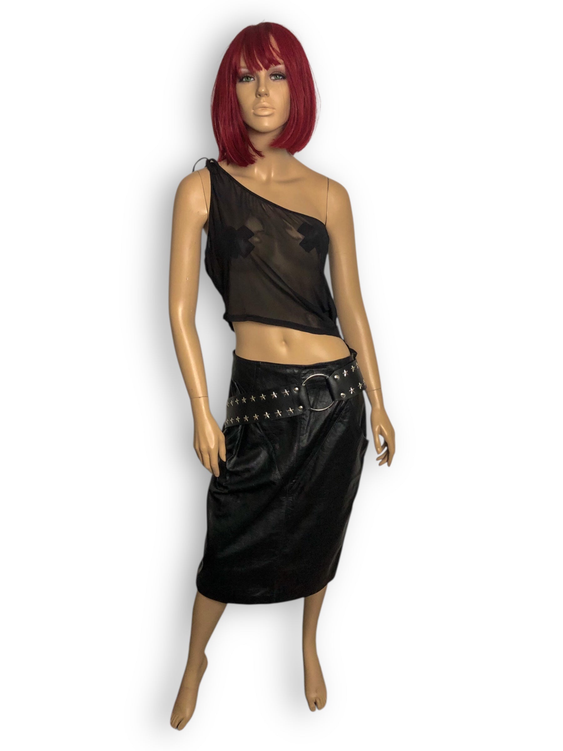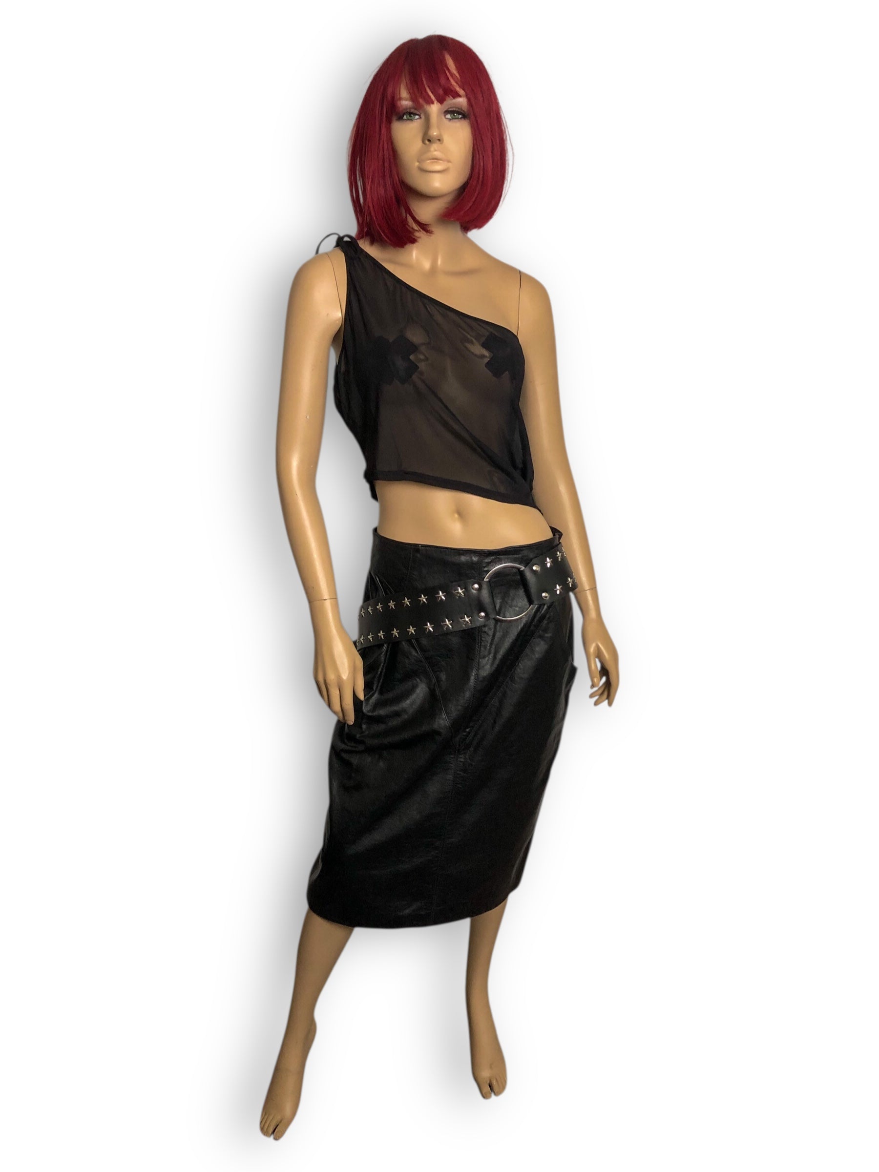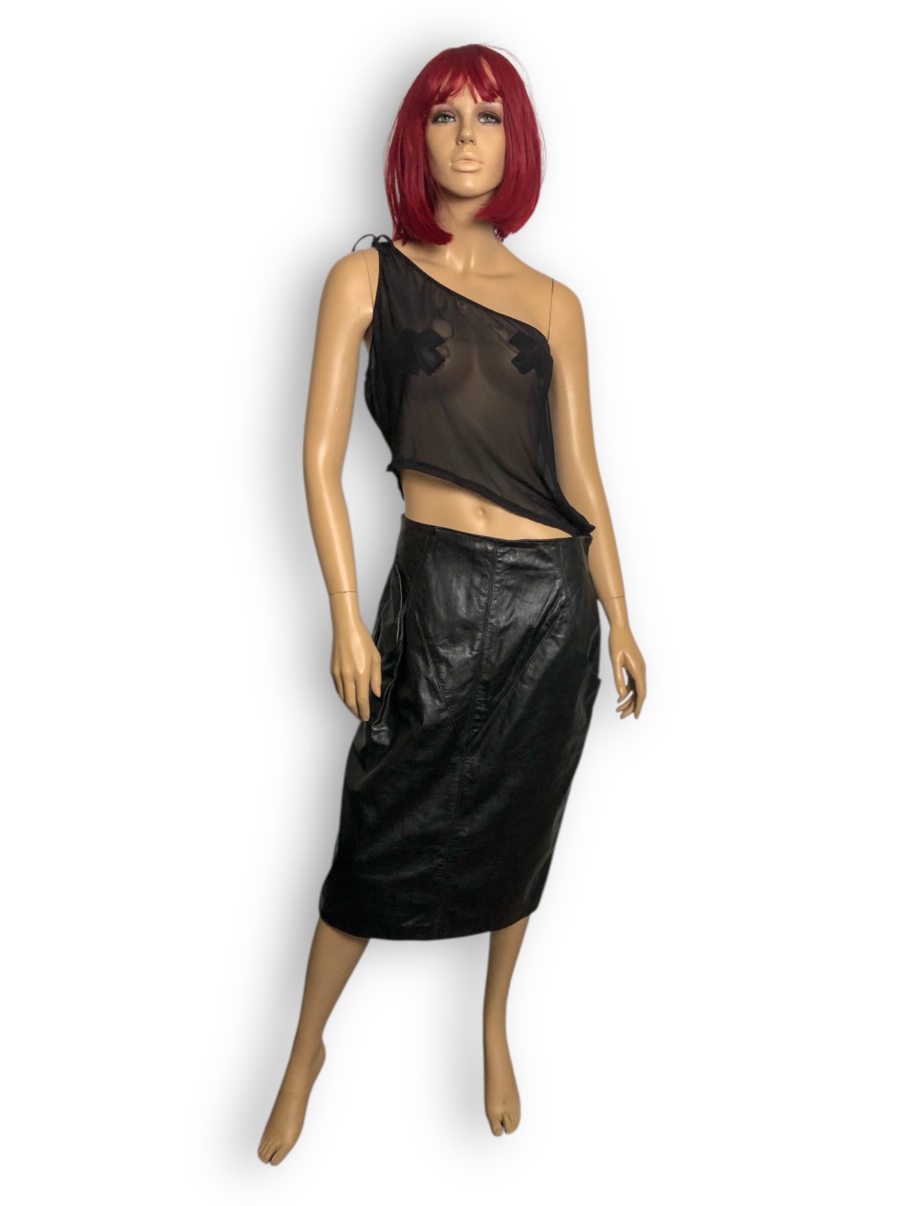 90’s/Y2K Black Leather Pencil Skirt (L)