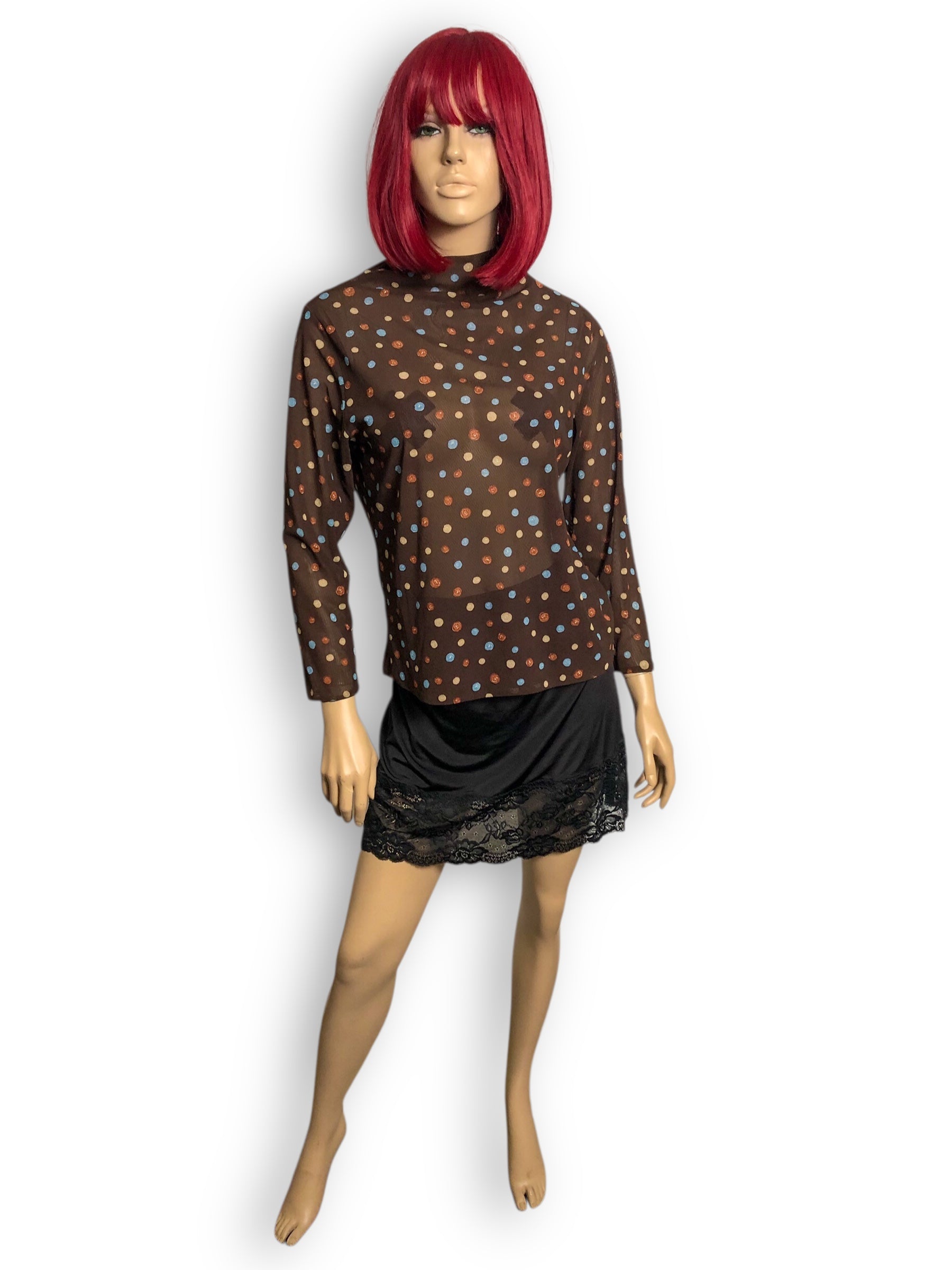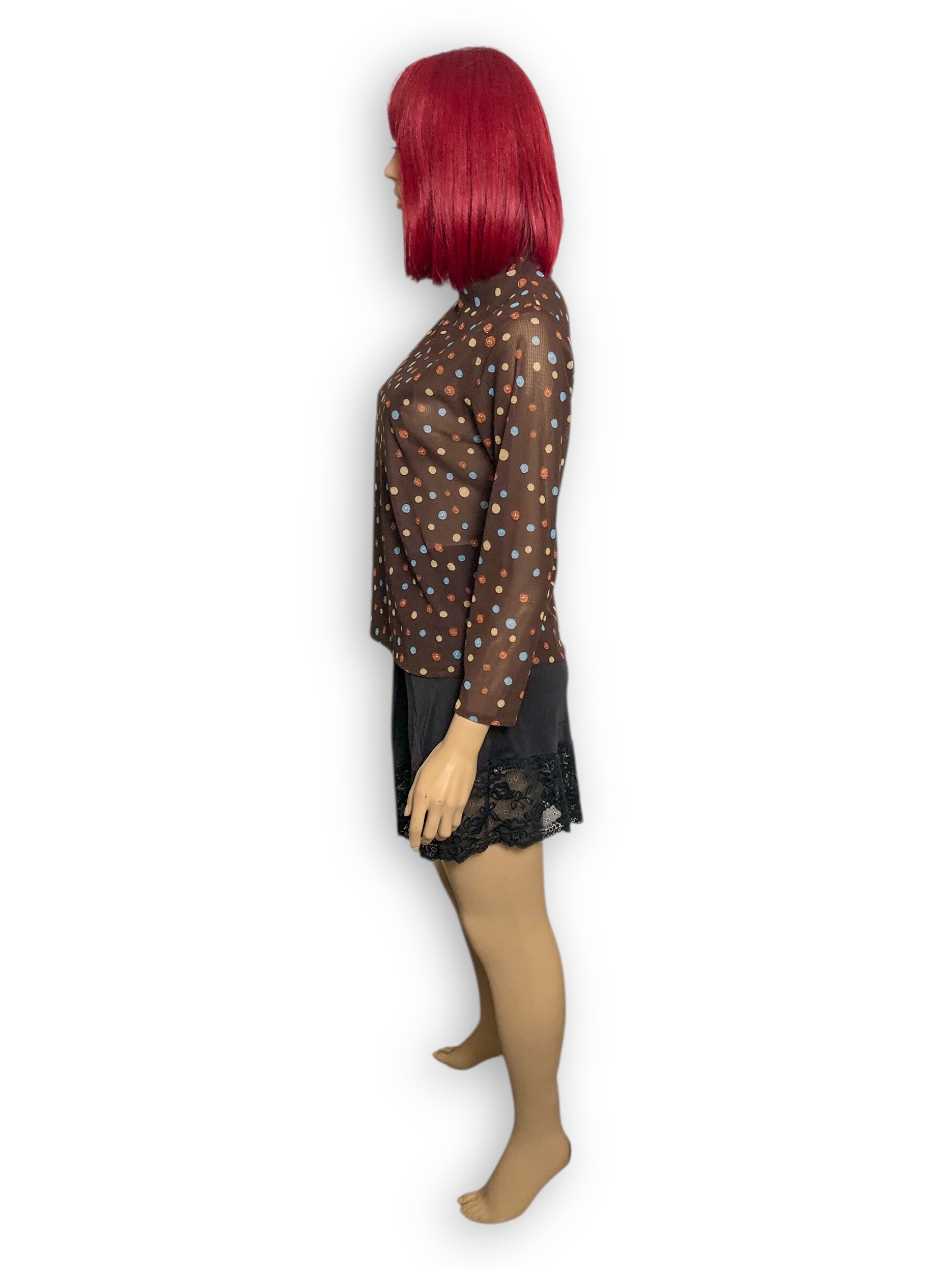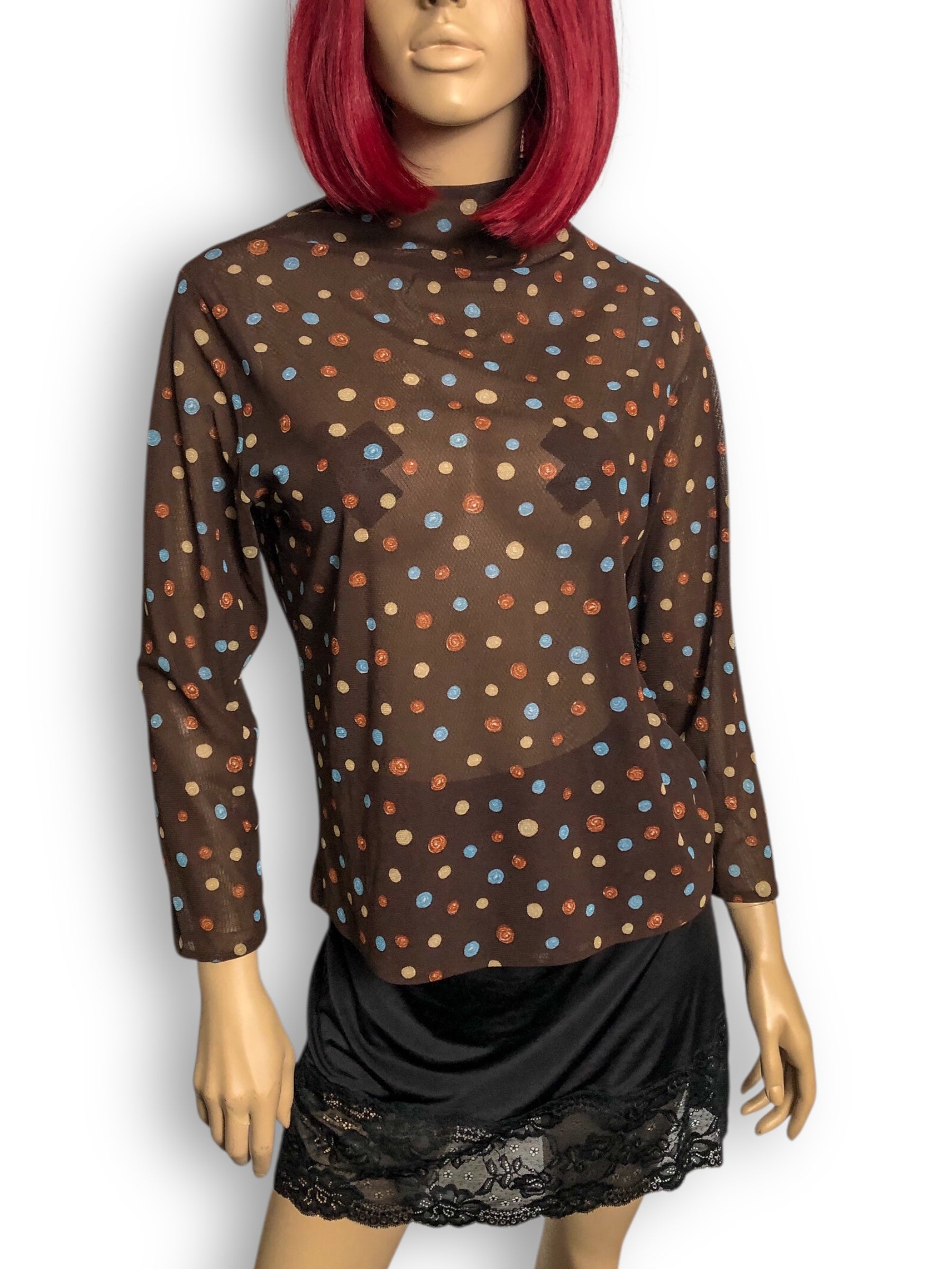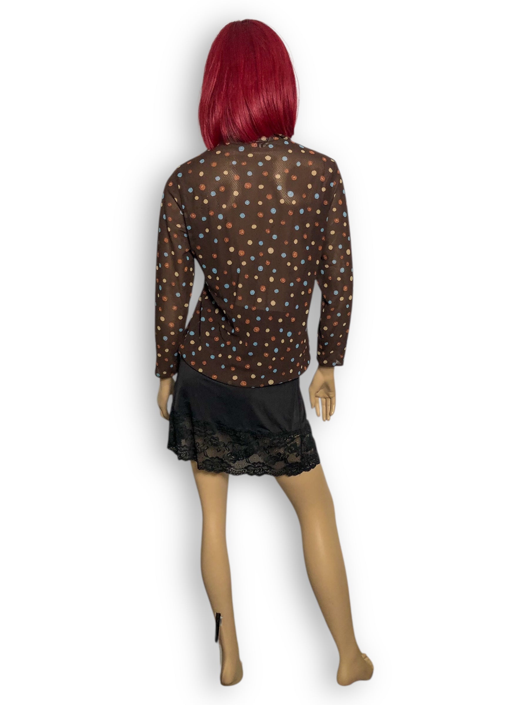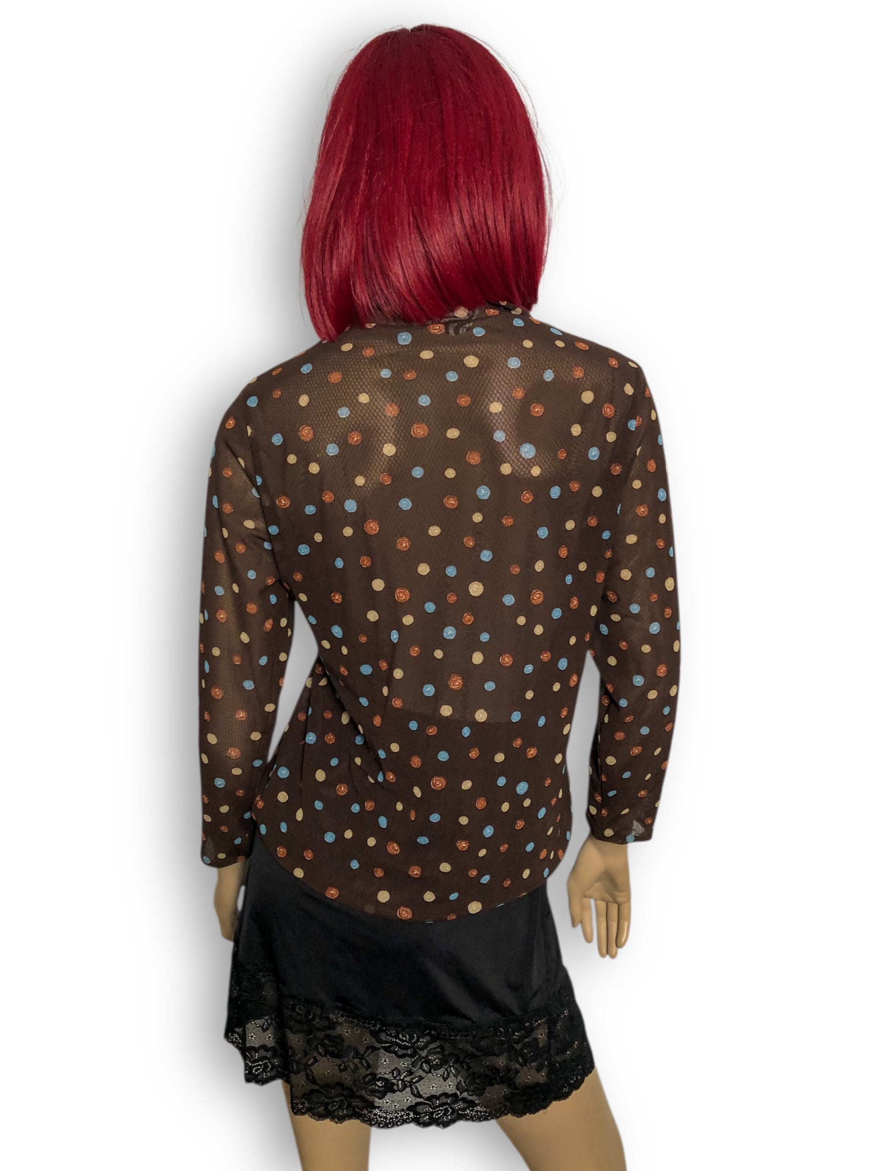 90’s/Y2K Brown Polka Dot Mesh Long Sleeve Top (M)