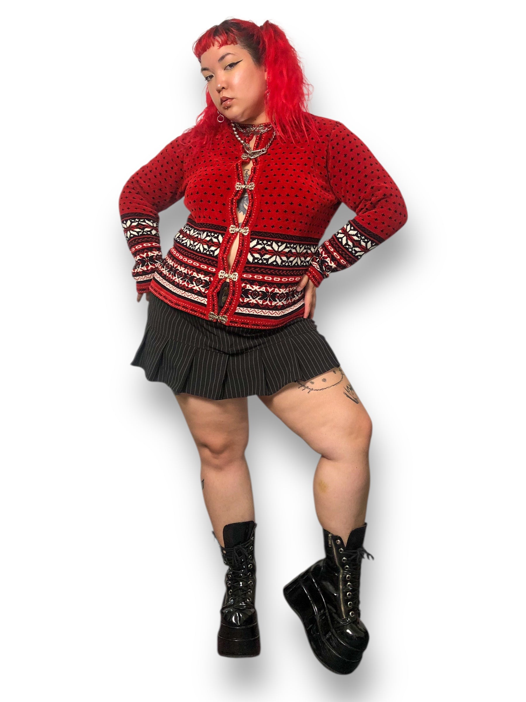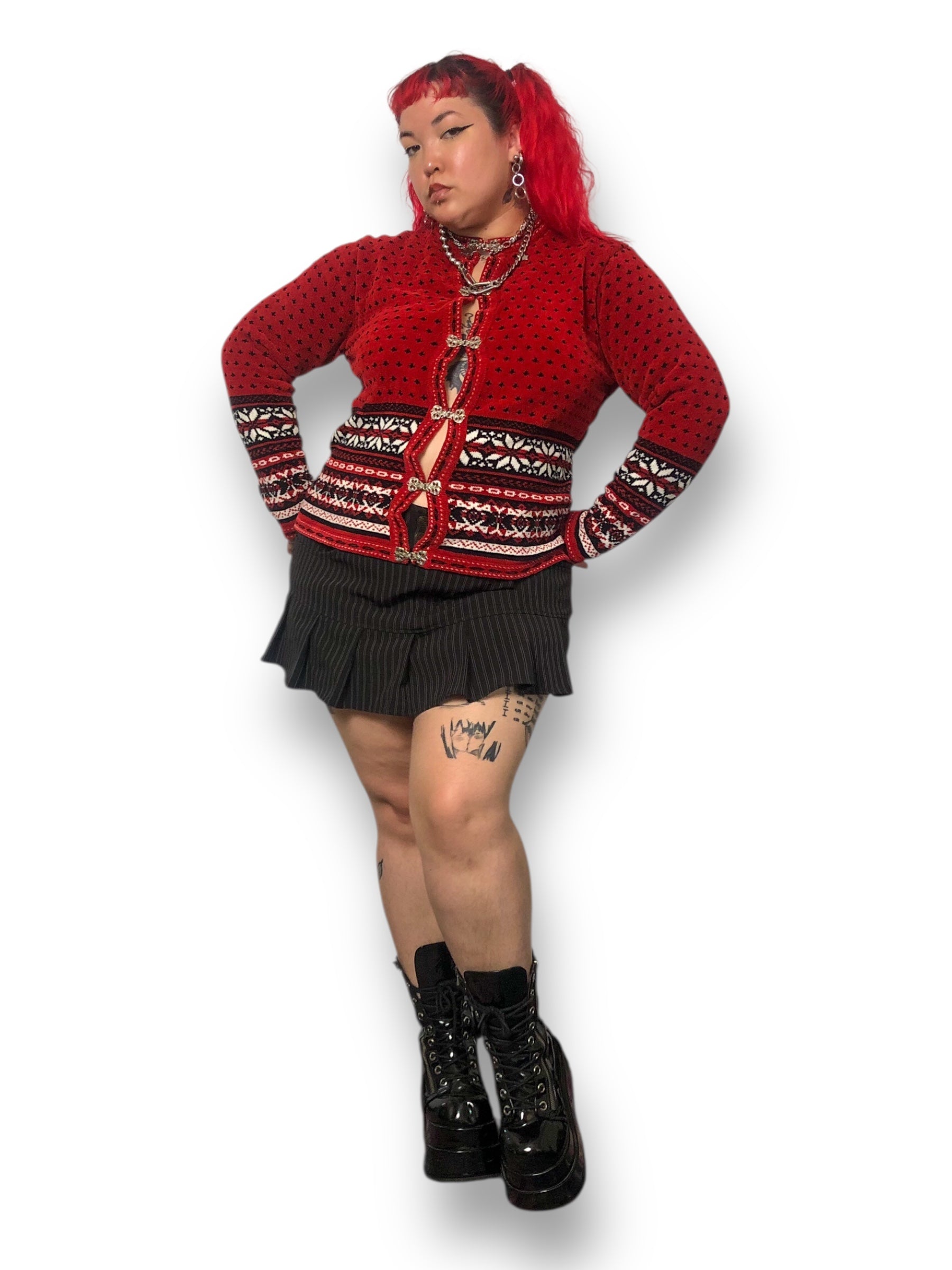 90’s/Y2K Croft & Barrow Red Patterned Cardigan Sweater (XL)