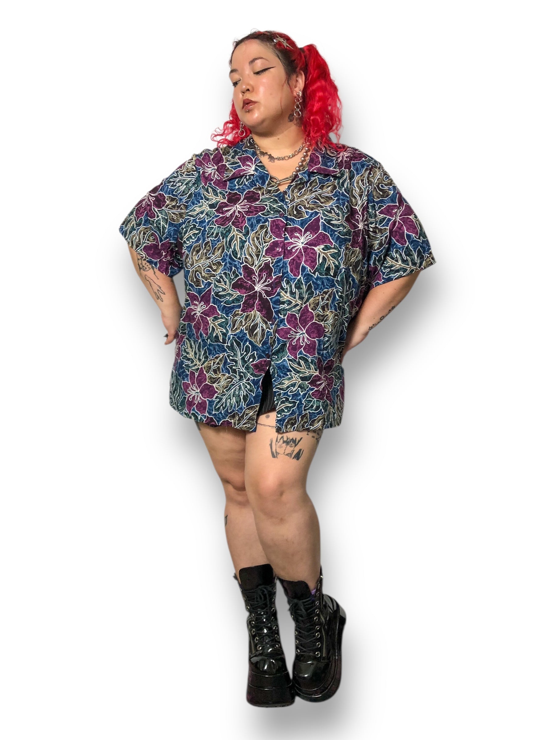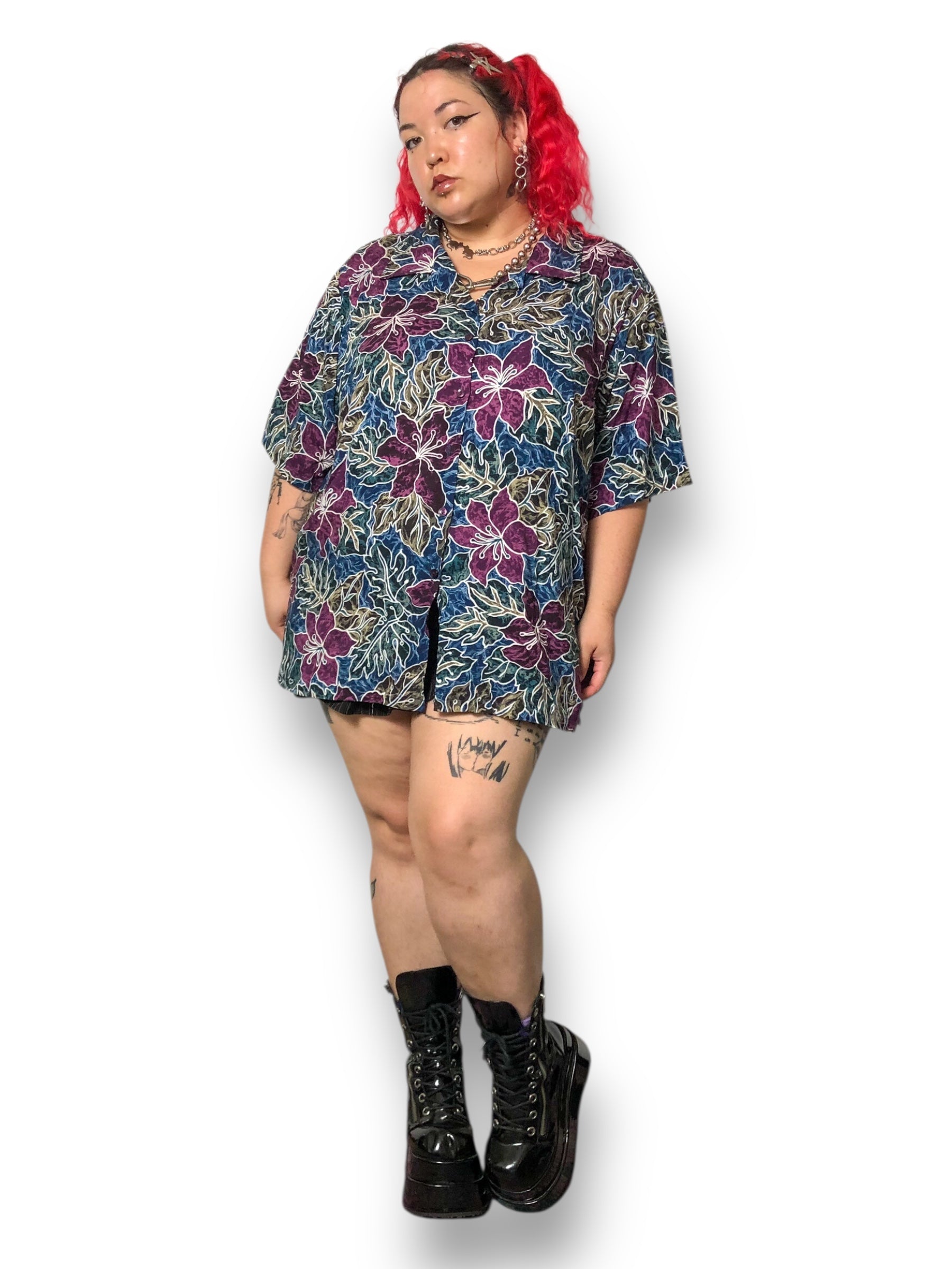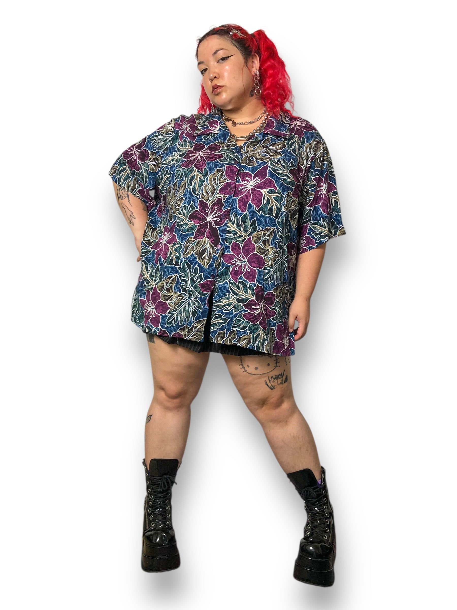 90’s/Y2K Hilo Hattie Blue and Purple Hawaiian Shirt (3X)