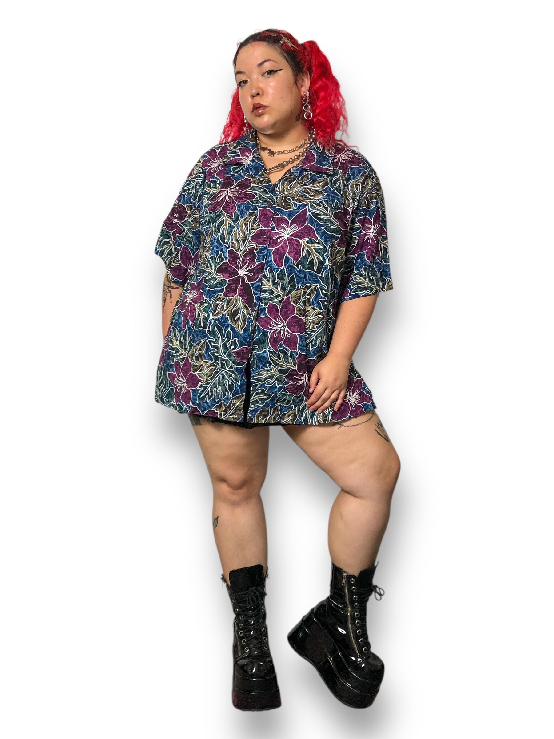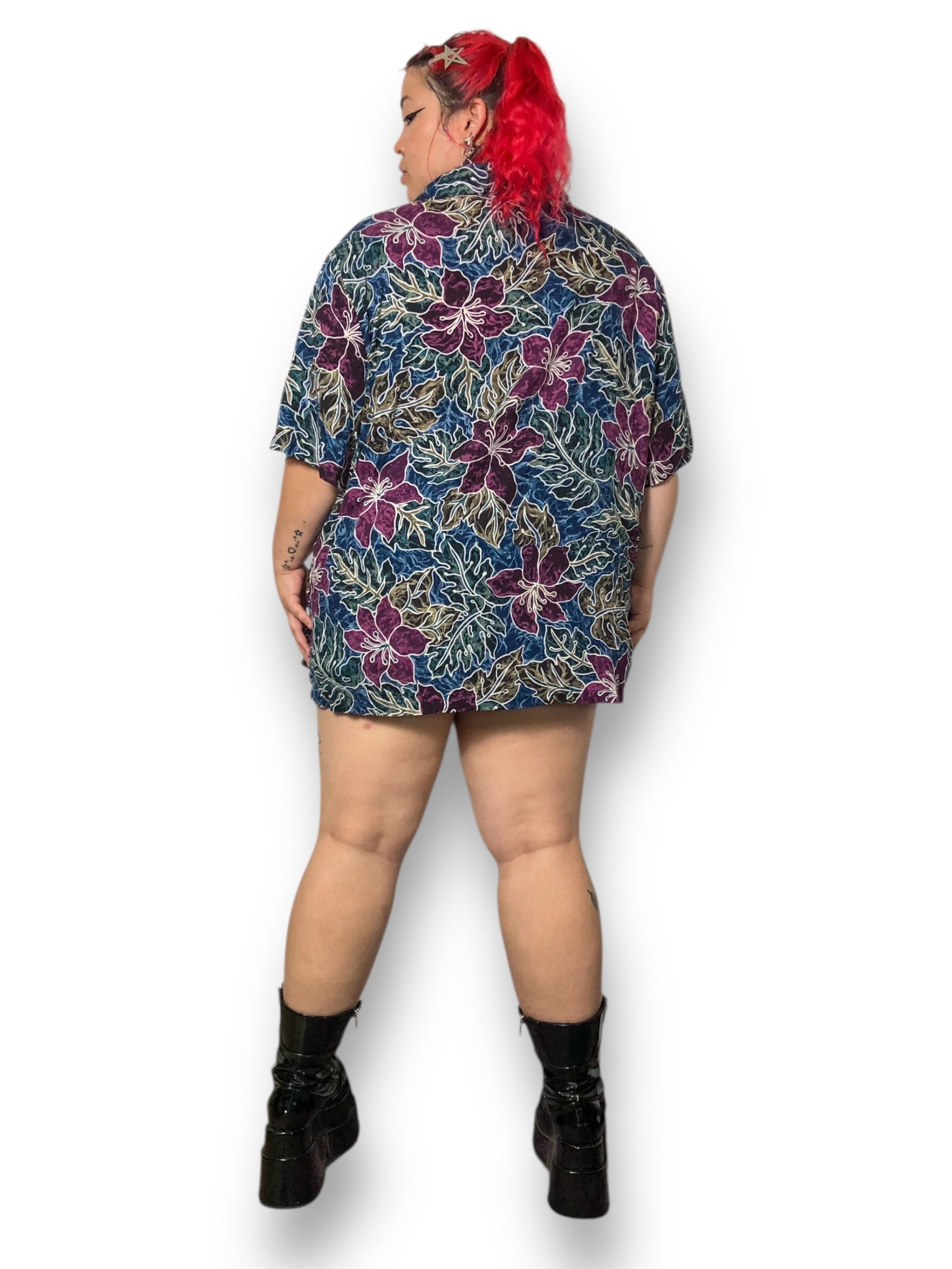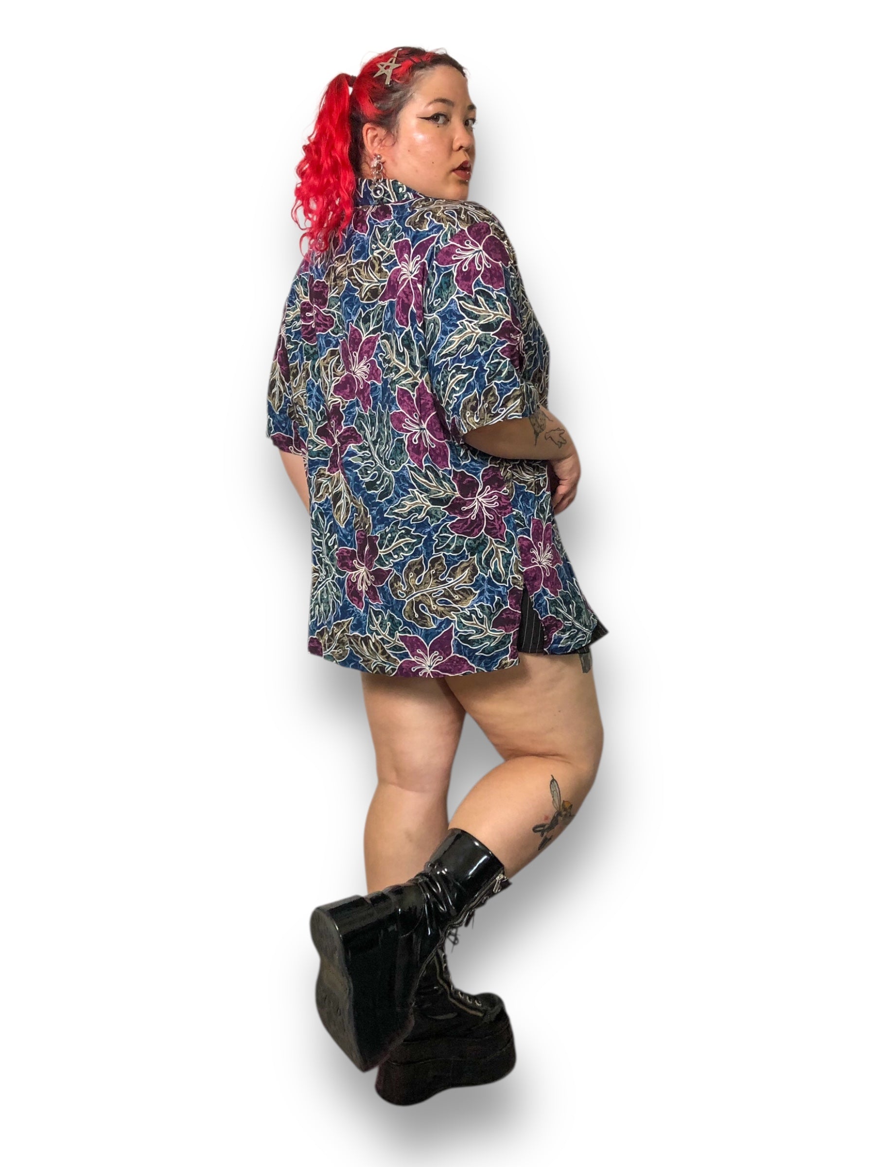 90’s/Y2K Hilo Hattie Blue and Purple Hawaiian Shirt (3X)