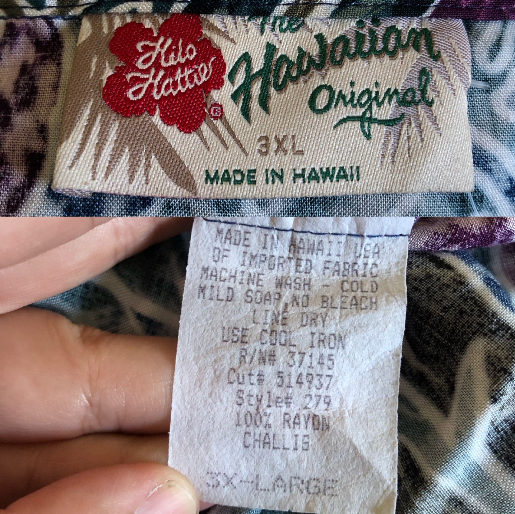 buttons down the front, shirt pocket, 100% rayon, made in Hawaii