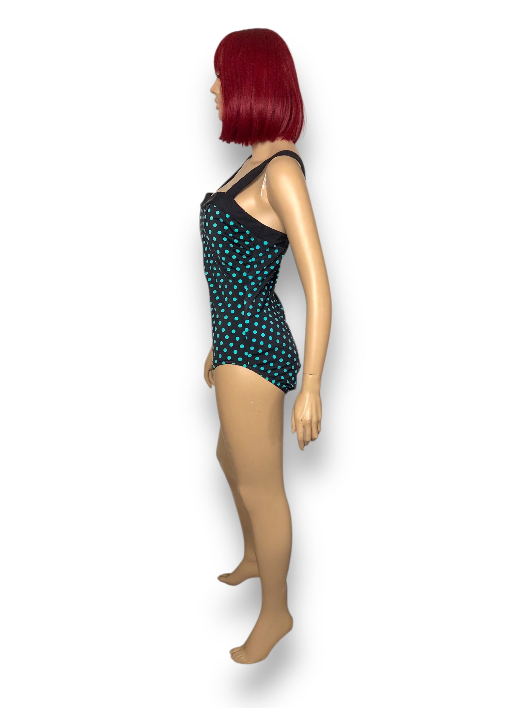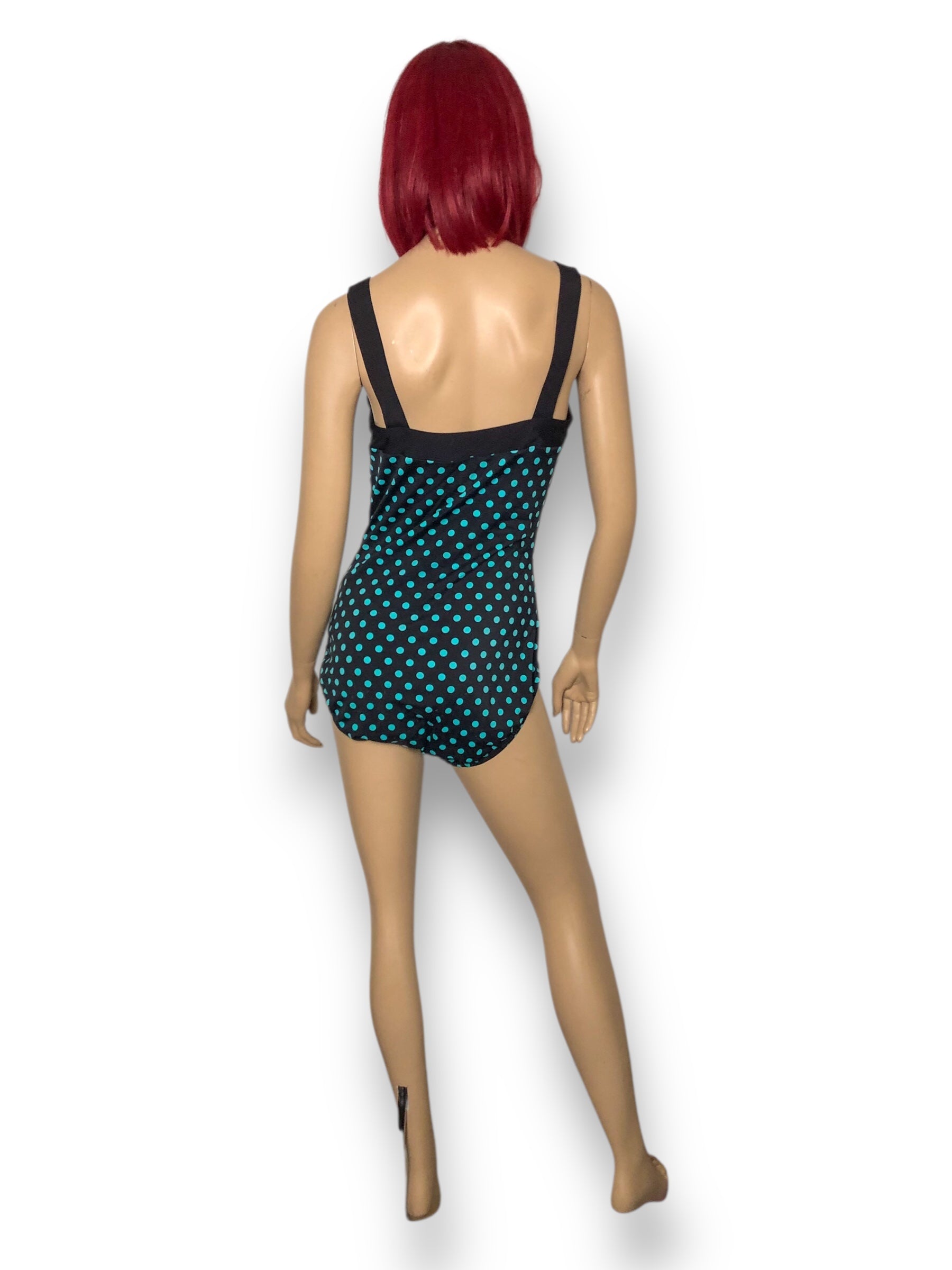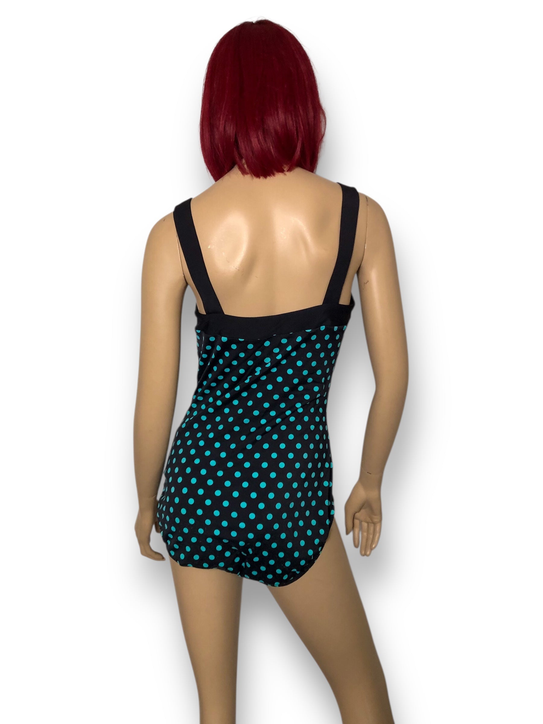 90’s/Y2K INC International Concepts Black and Turquoise Polka Dot Swimsuit (L)