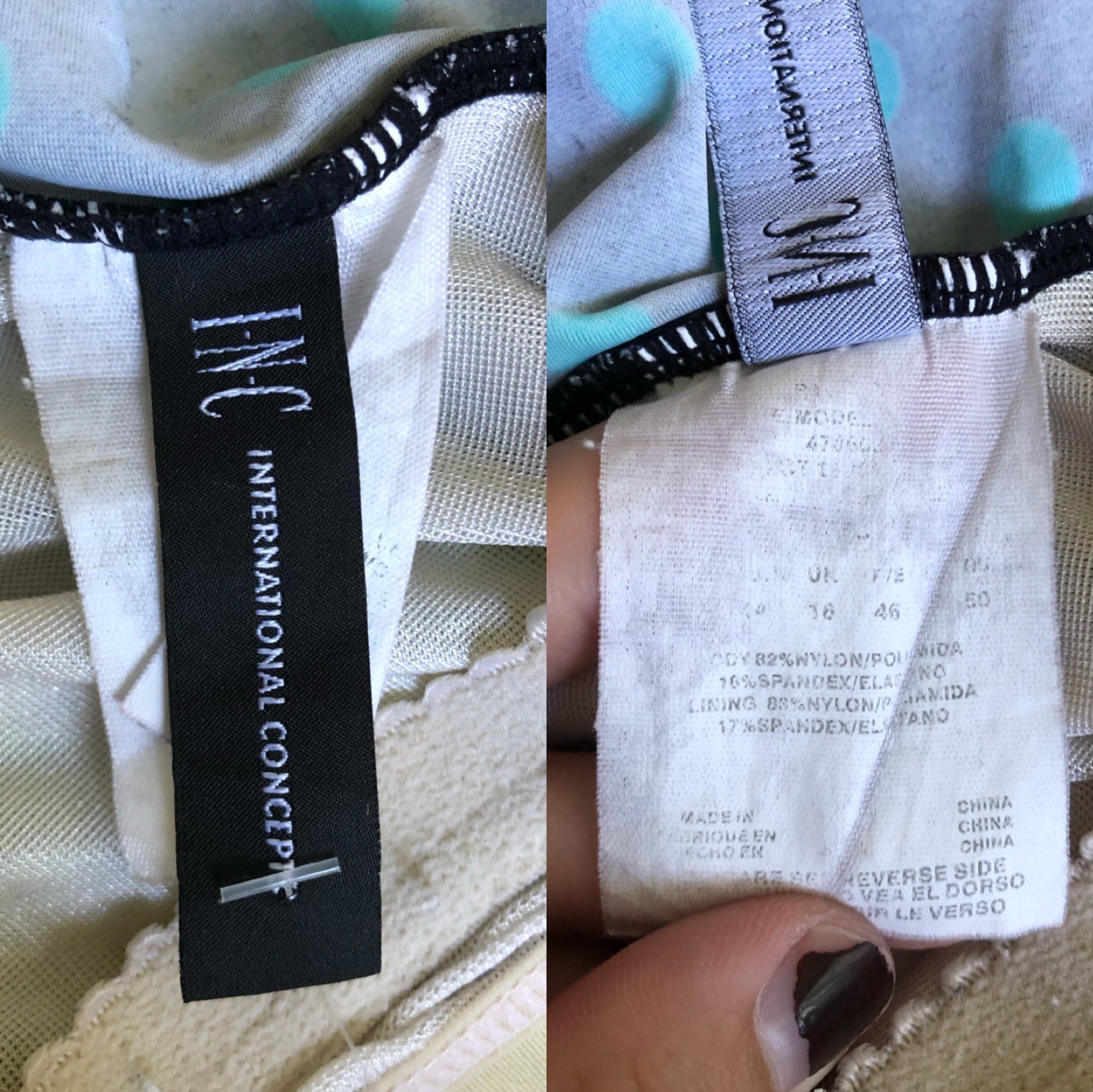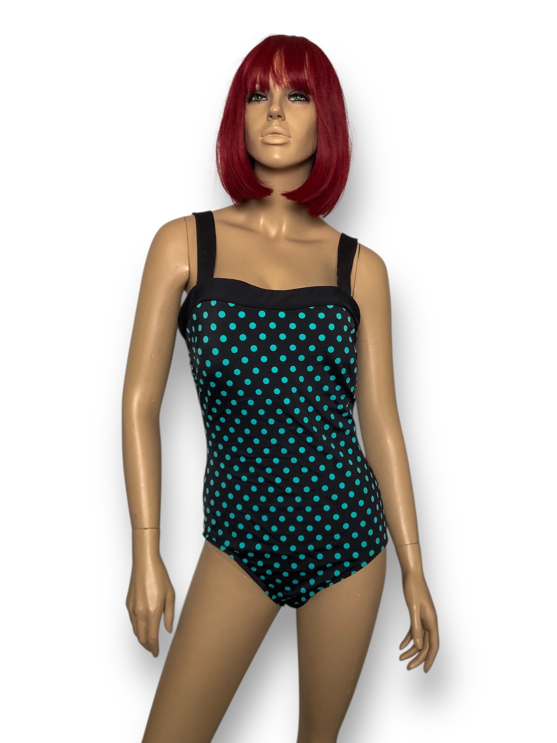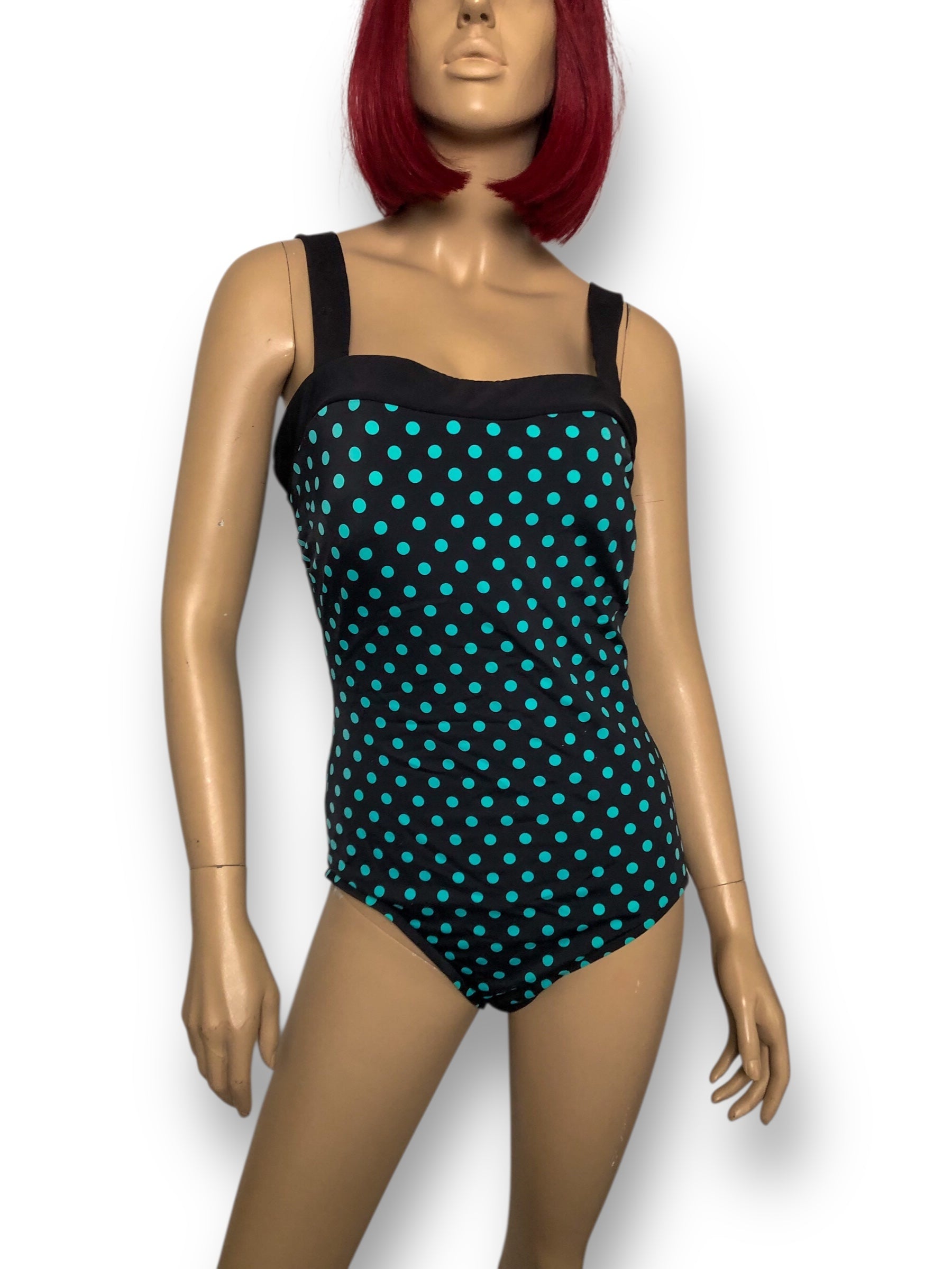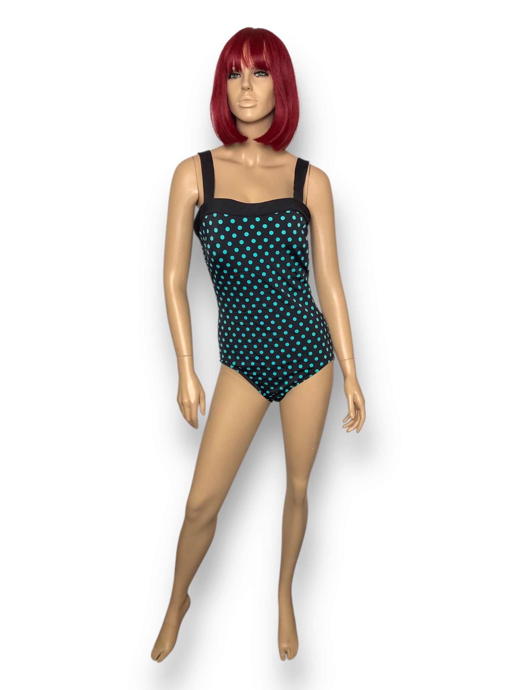 90’s/Y2K INC International Concepts Black and Turquoise Polka Dot Swimsuit (L)