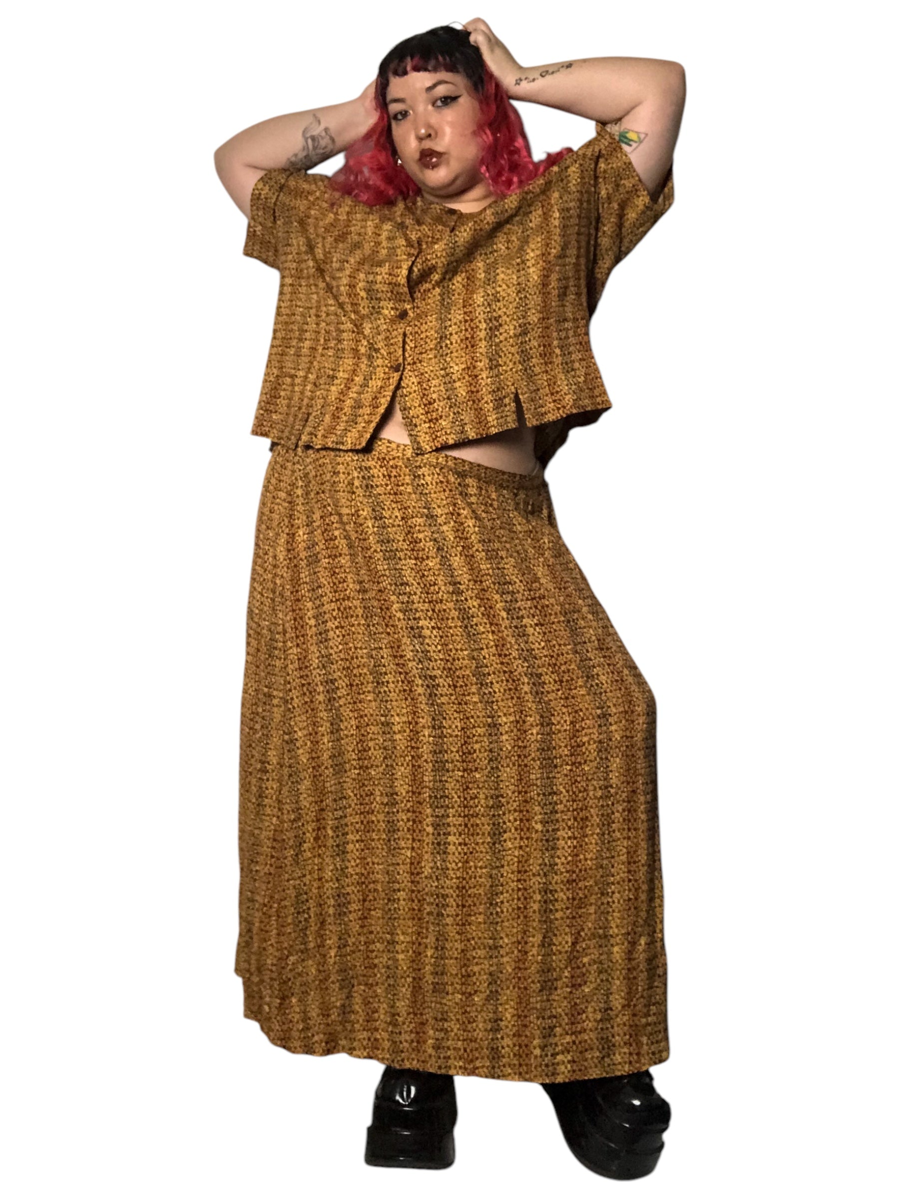 90’s/Y2K Maggie McNaughton Yellow and Brown Patterned 2-Piece Set (3X)