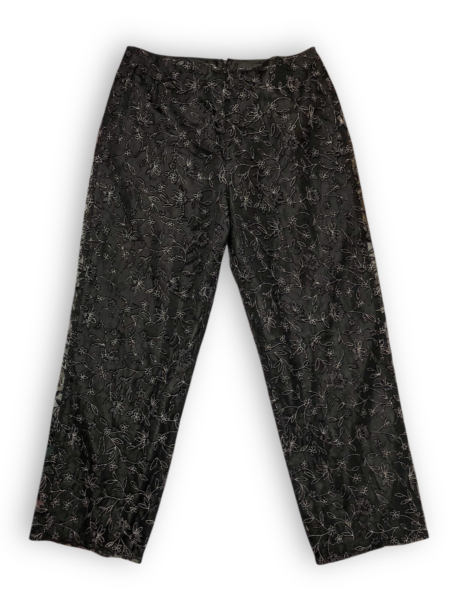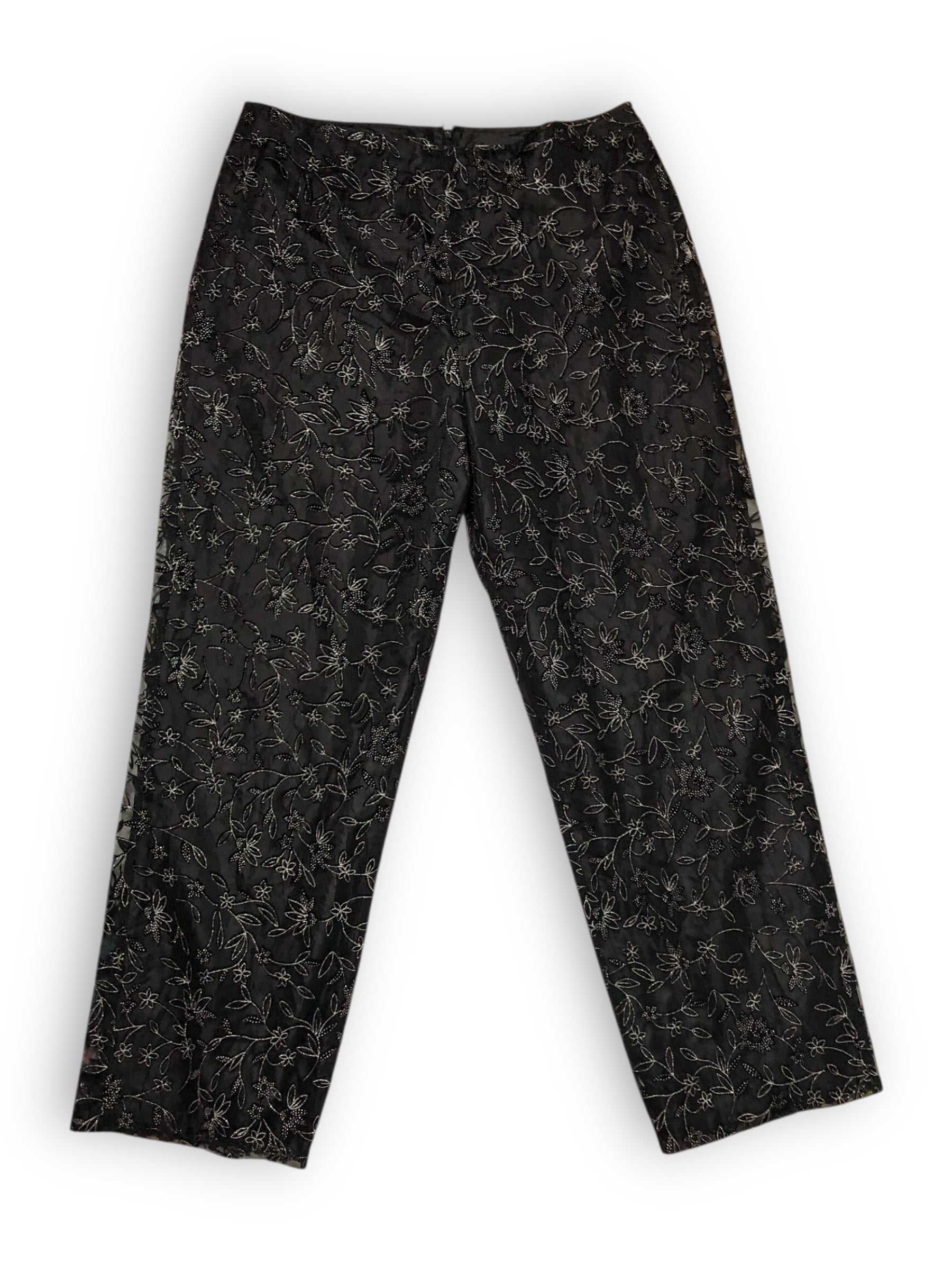 90’s/Y2K Ronni Nicole by Ouida Black Glittery Floral Pants (XL)