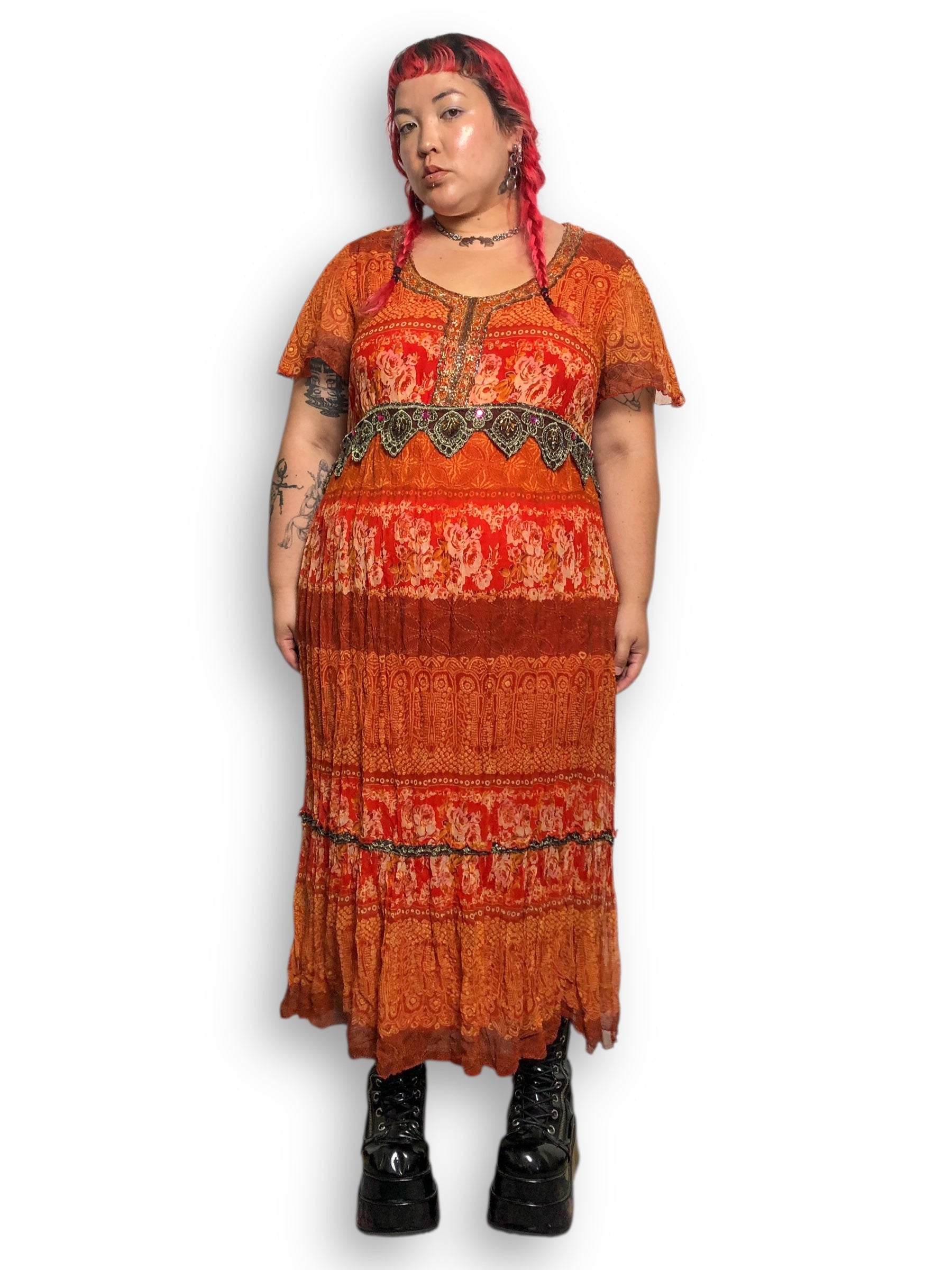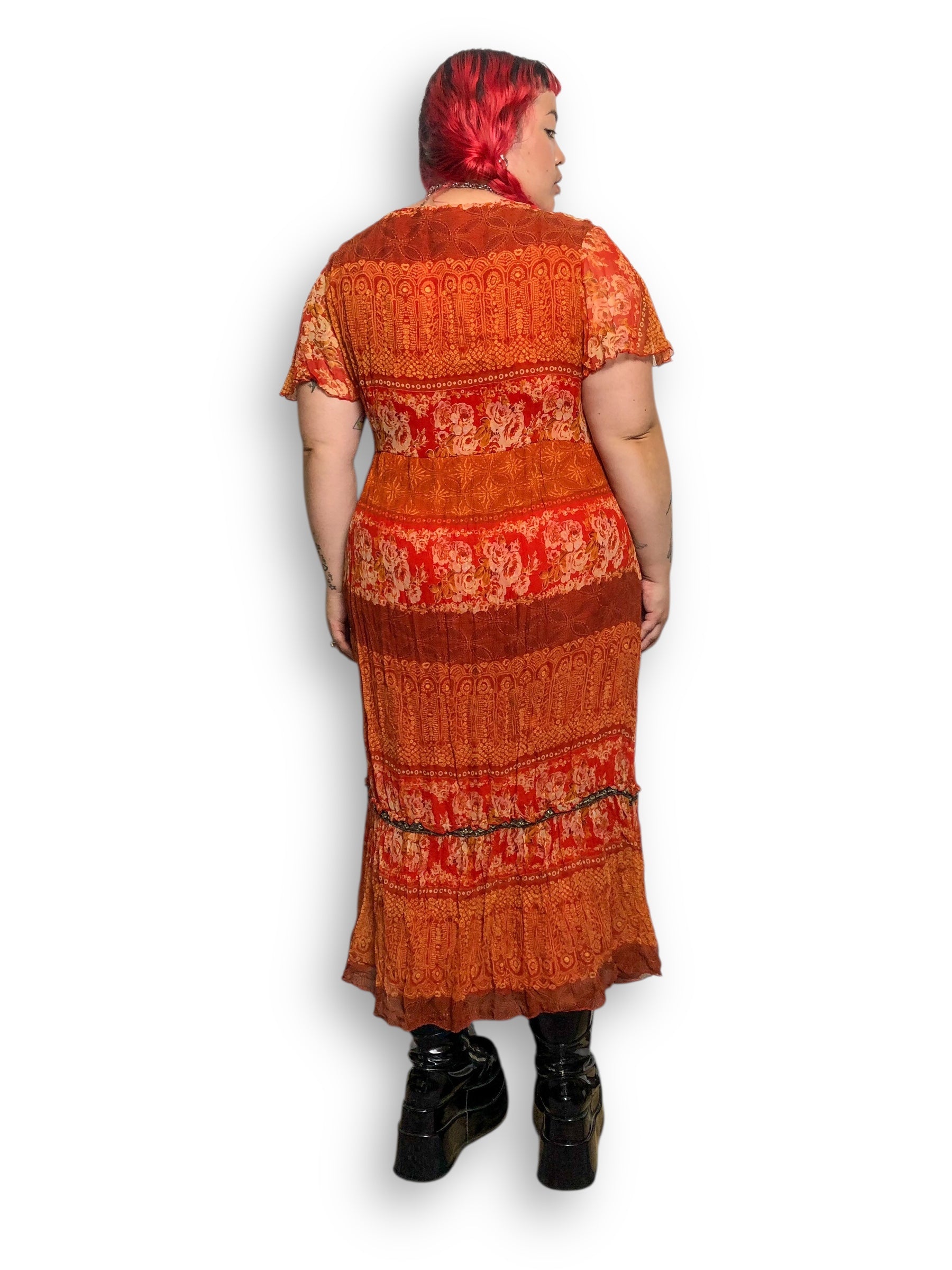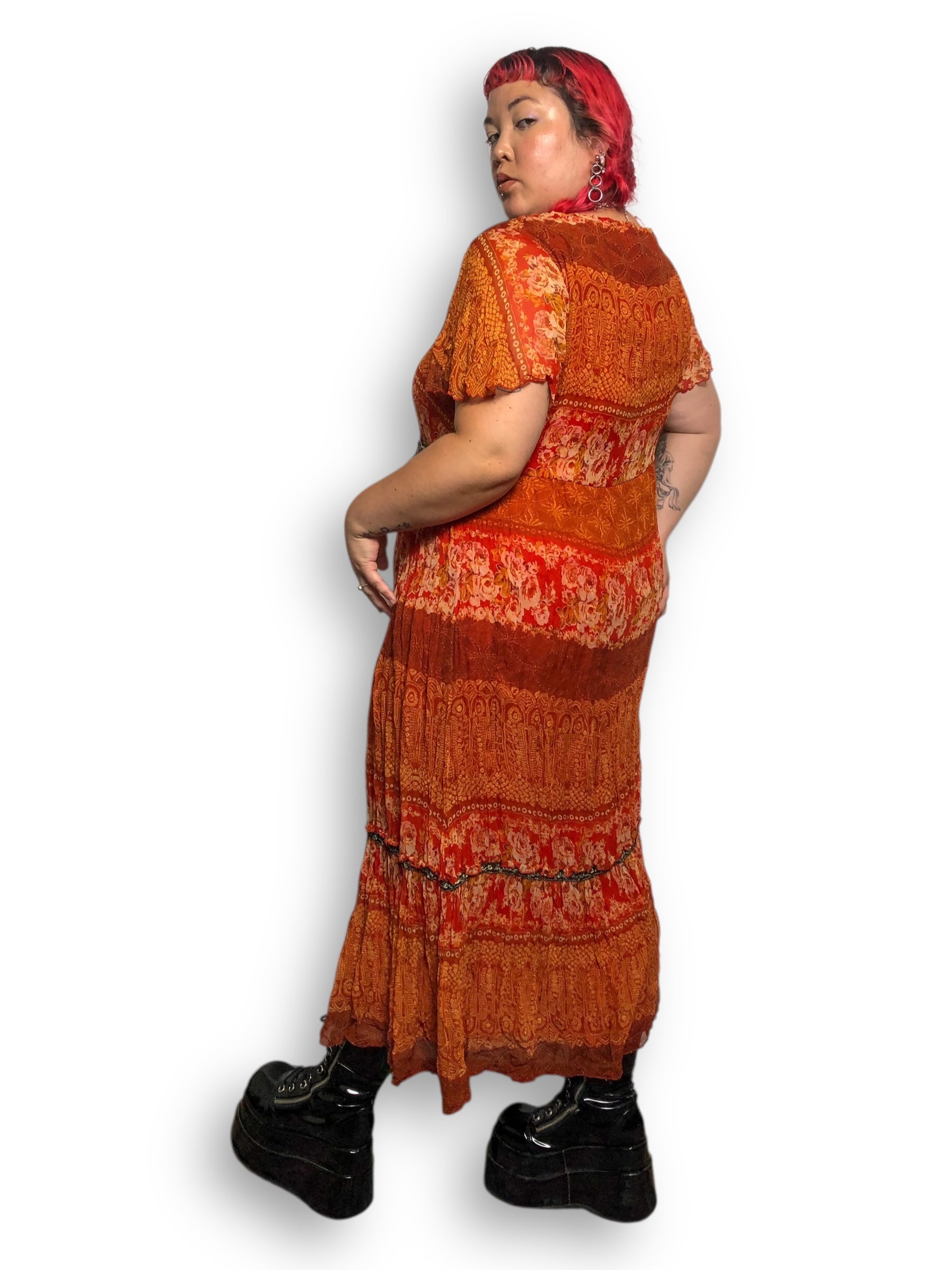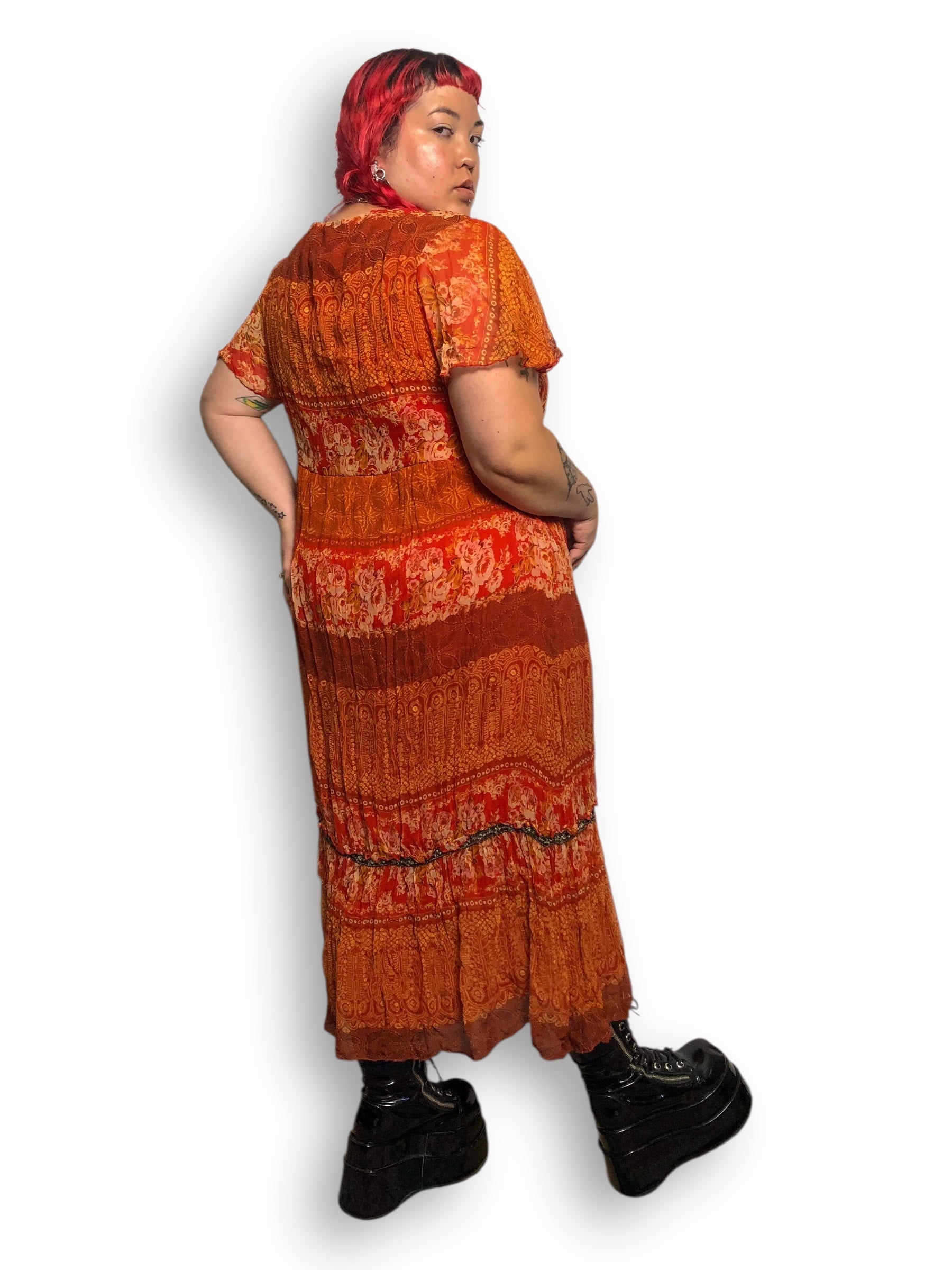 90’s/Y2K Signature by Robbie Bee Orange Patterned Maxi Dress (2X)