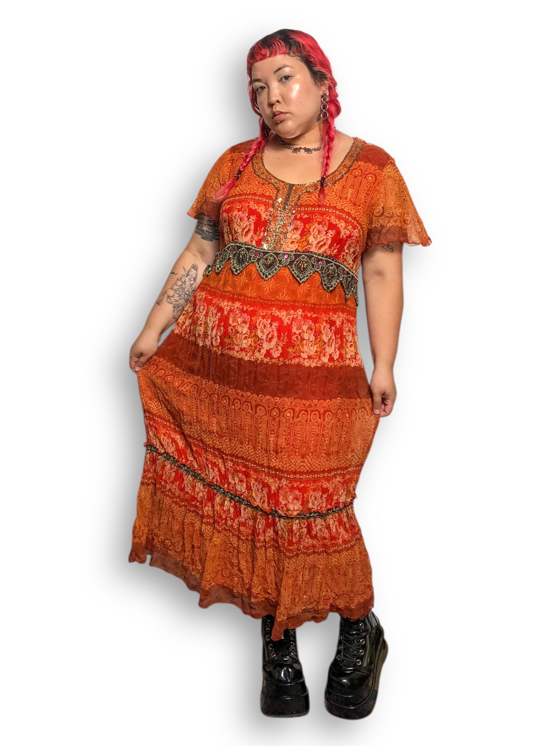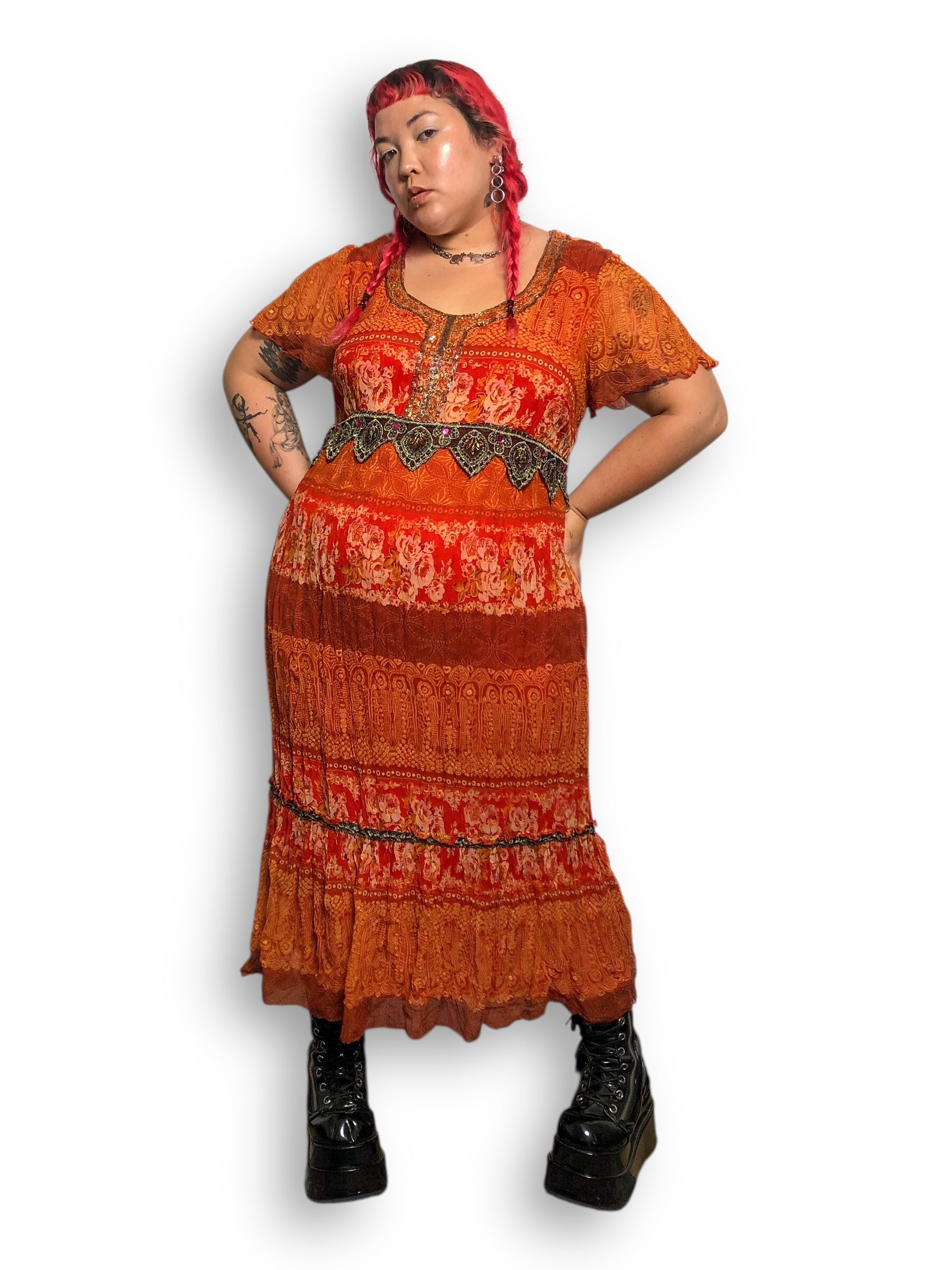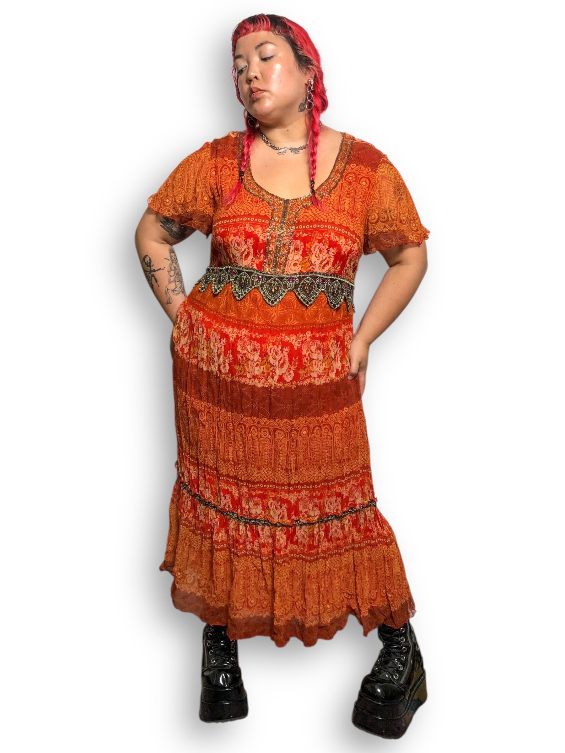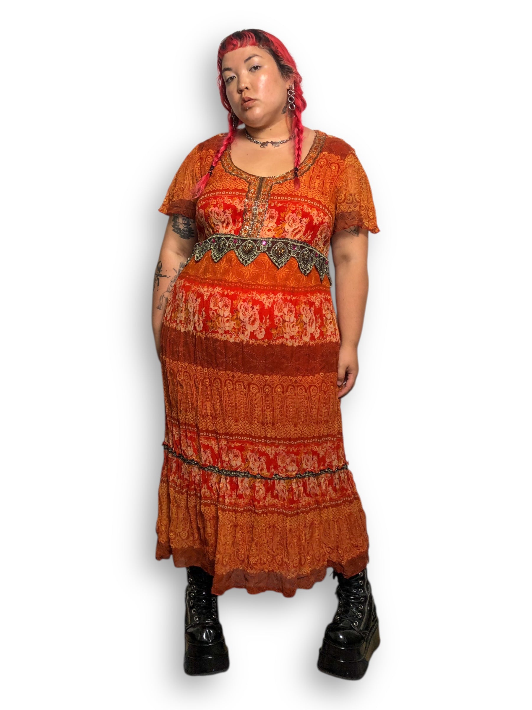 90’s/Y2K Signature by Robbie Bee Orange Patterned Maxi Dress (2X)