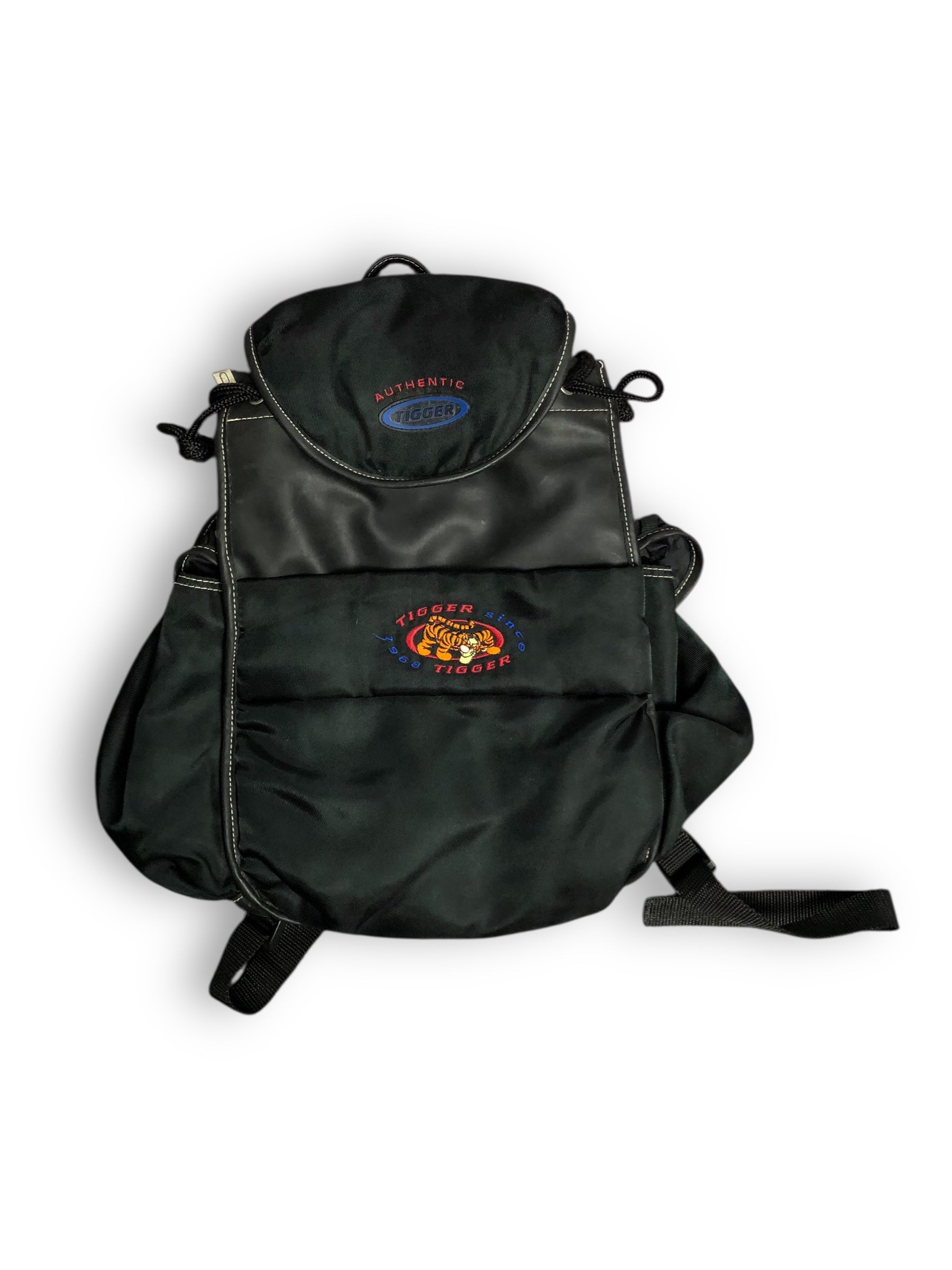 officially licensed vintage Disney Store merch! drawstring bucket + velcro flap closure, small front velcro pocket, side velcro mini pockets, adjustable straps, ‘TIGGER’ embroidery on the front + ‘T’ embroidery on the back, 100% polyvinyl chloride