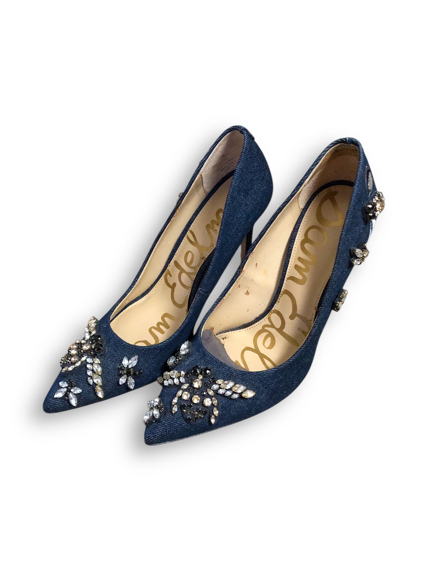 Sam Edelman Denim Rhinestone Heels (6.5)