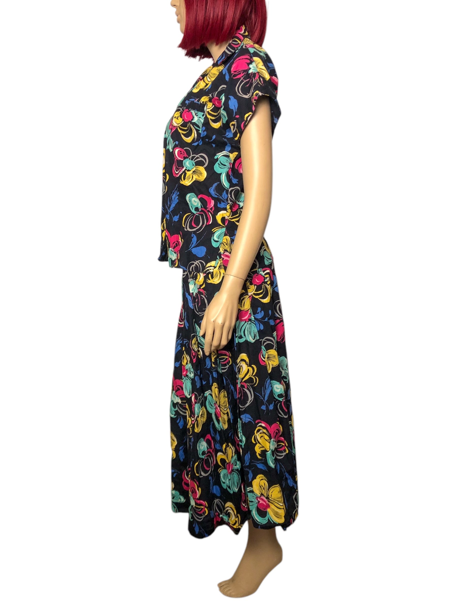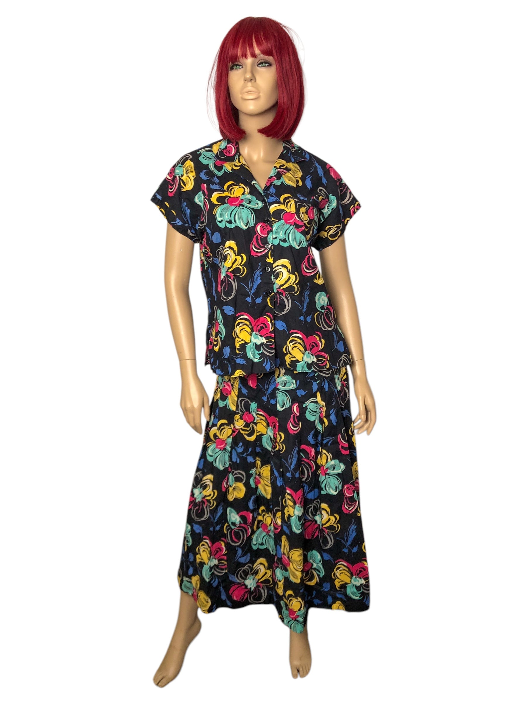 Vintage Abstract Floral Print 2-Piece Set (L)