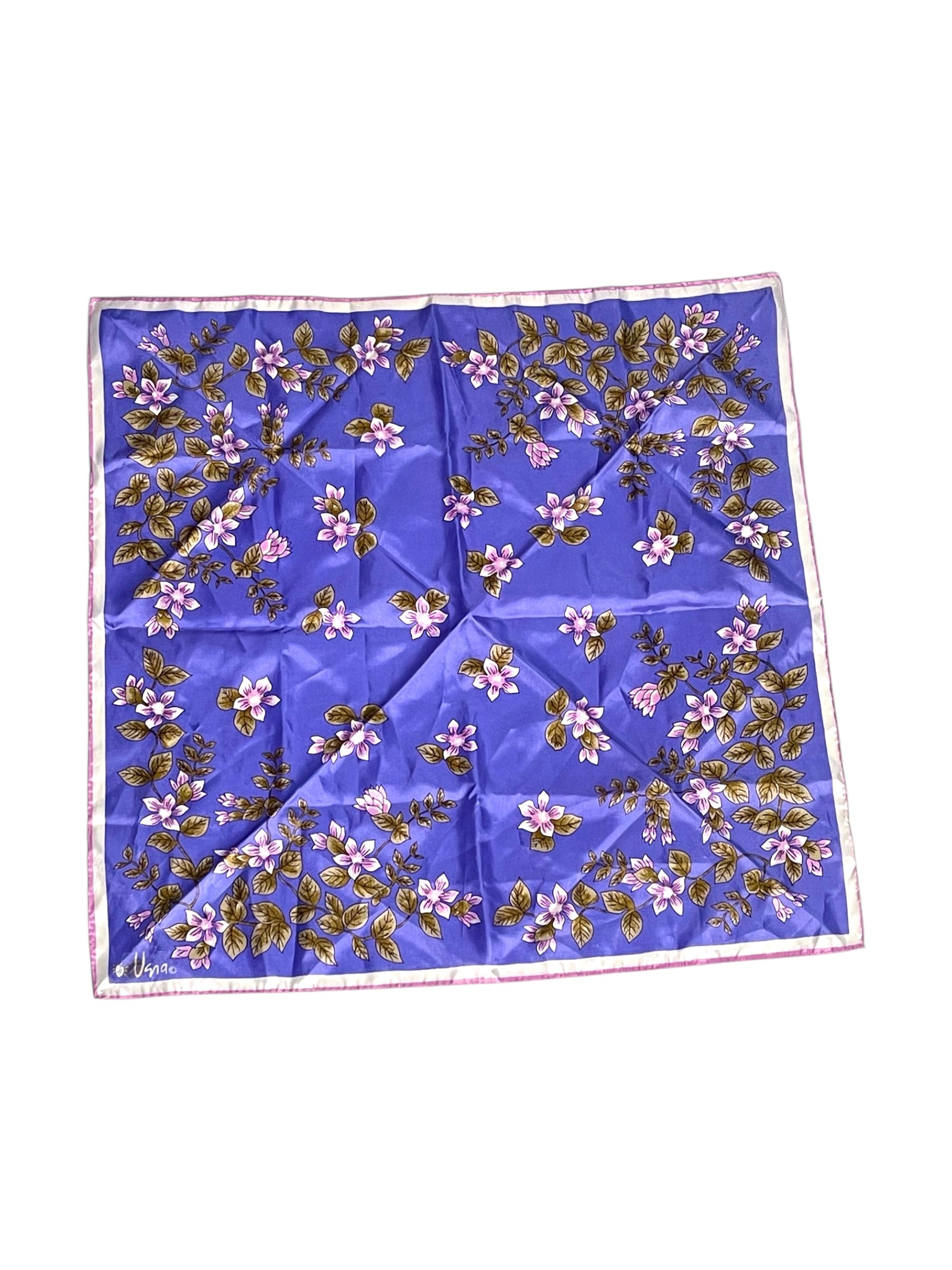 Vintage Purple Floral Satin Scarf