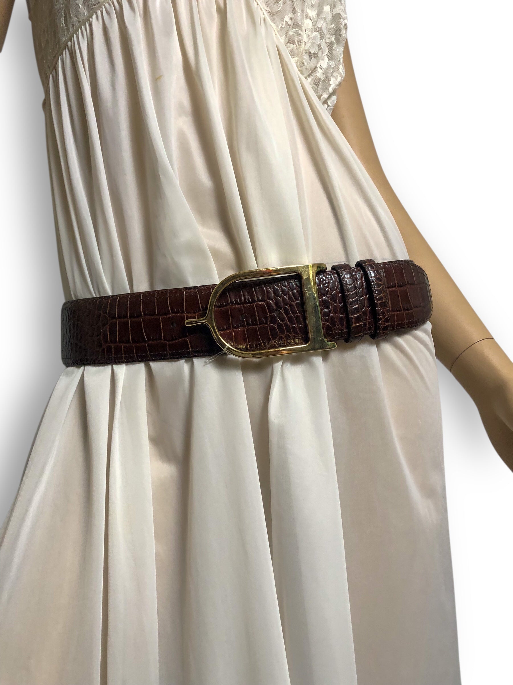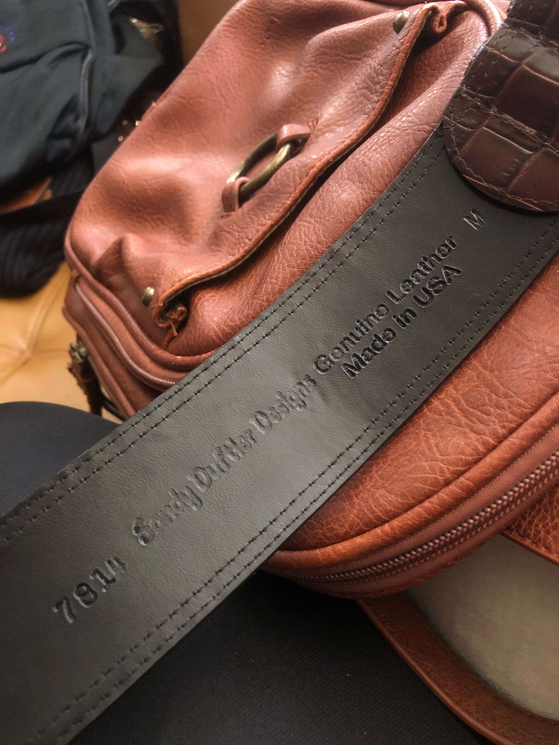 reptile embossed texture throughout, large gold belt buckle, genuine leather, made in USA — seems barely worn if at all!