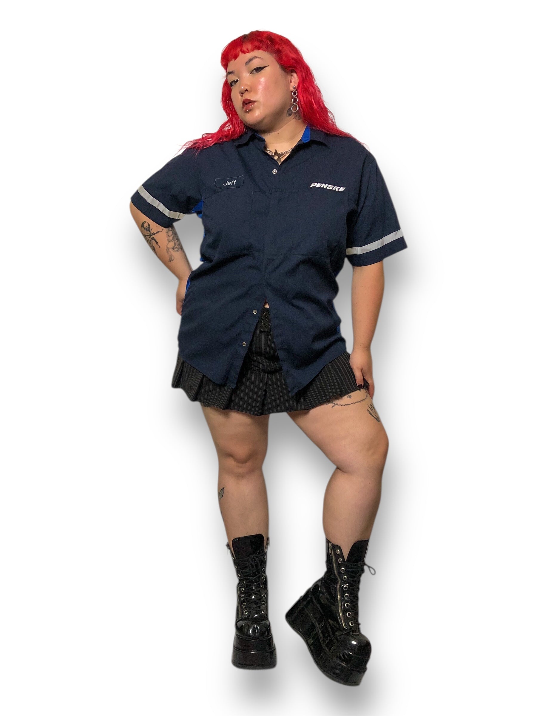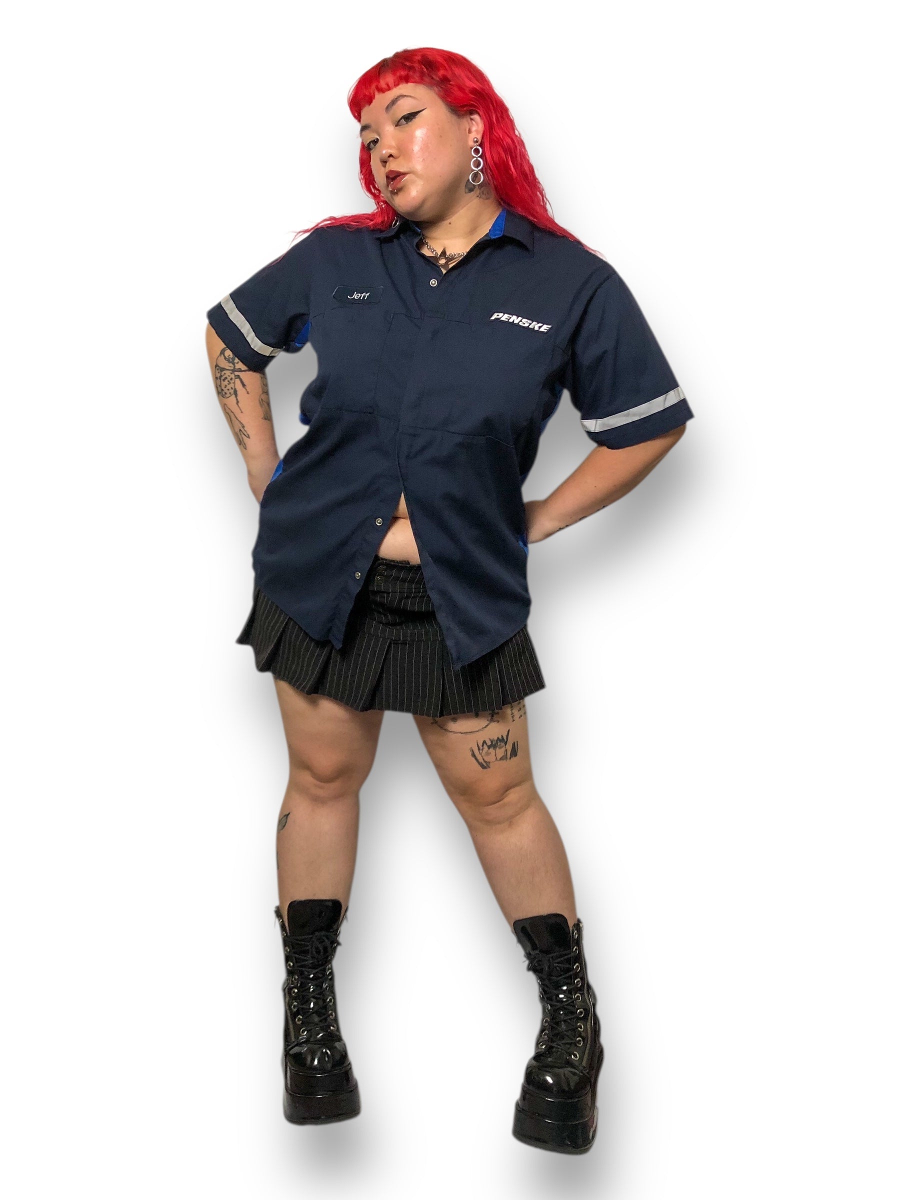 Y2K/Modern Navy Blue Work Shirt (XL/2X)