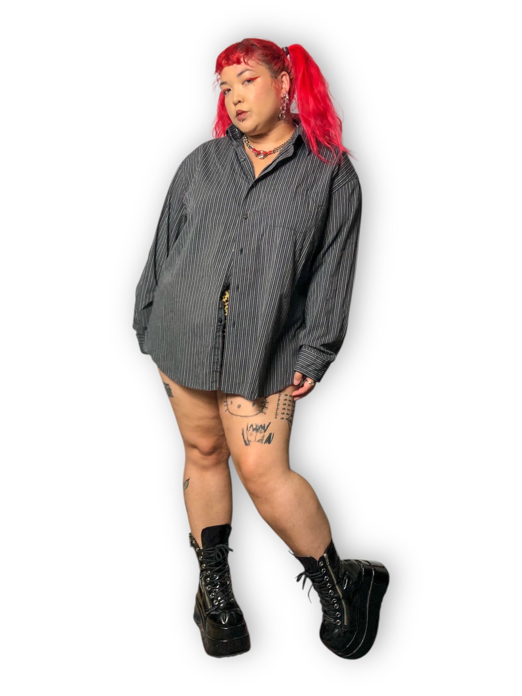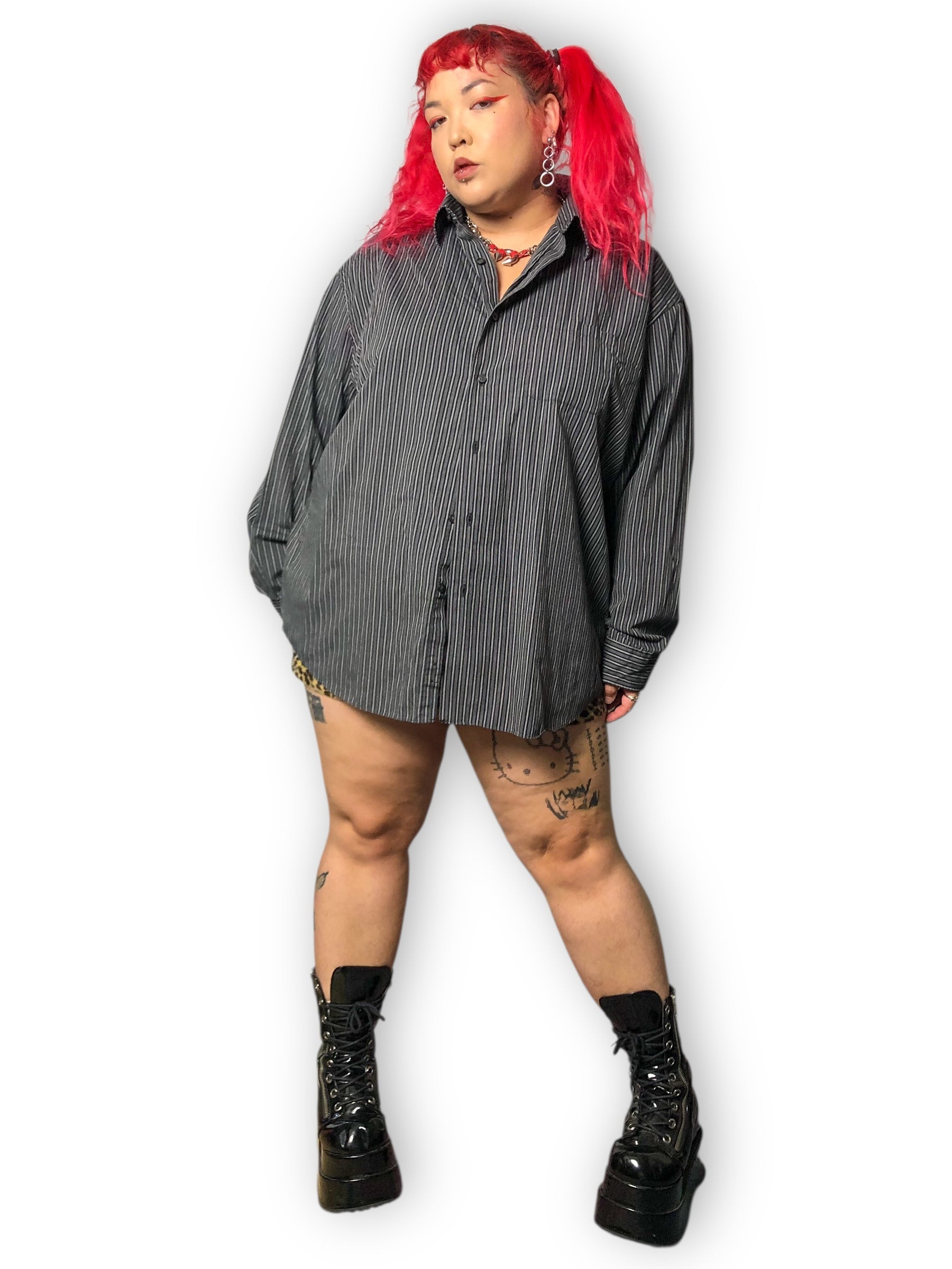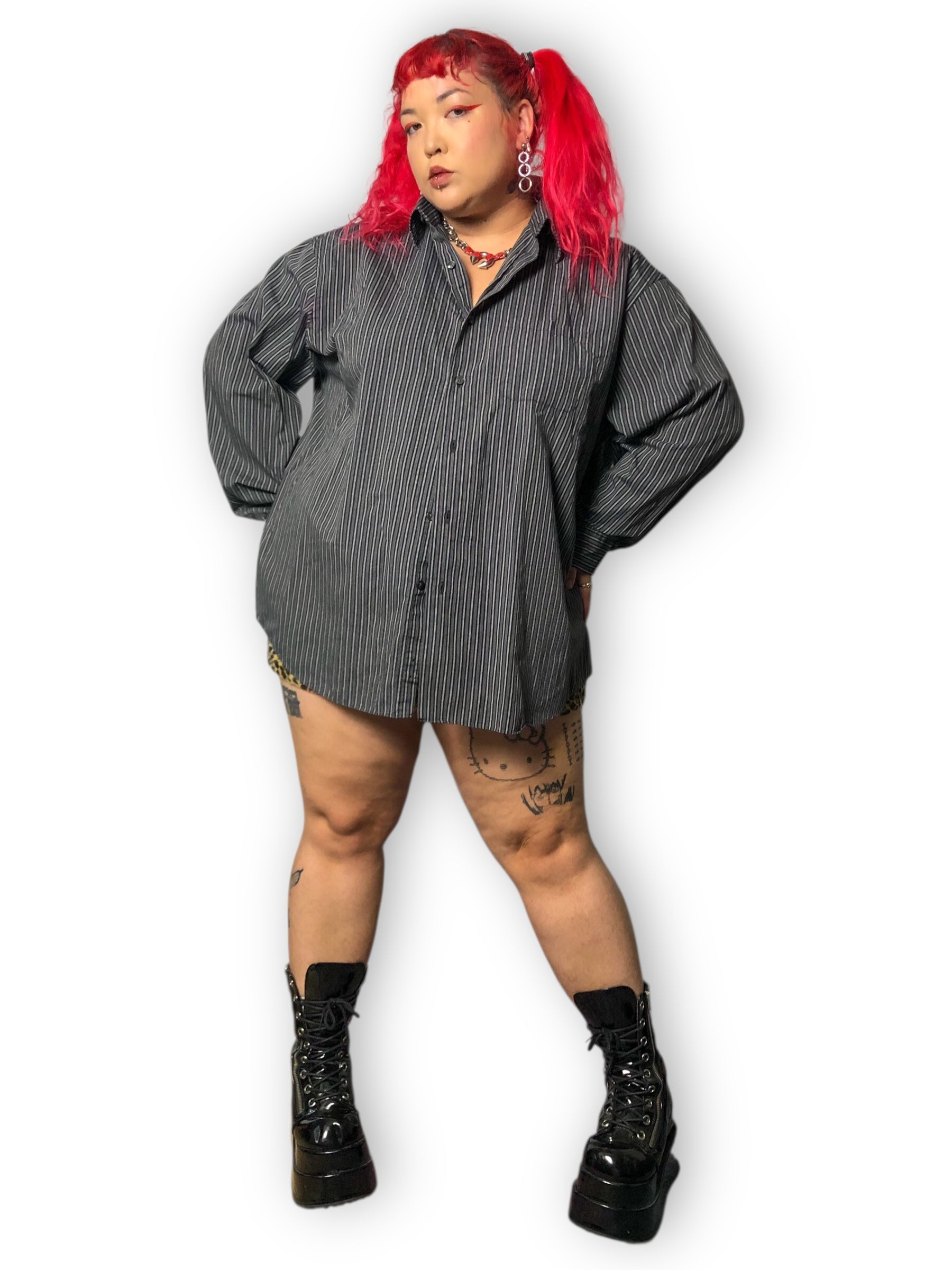Y2K/Modern Van Heusen Gray Striped Button Down Shirt (2X/3X)