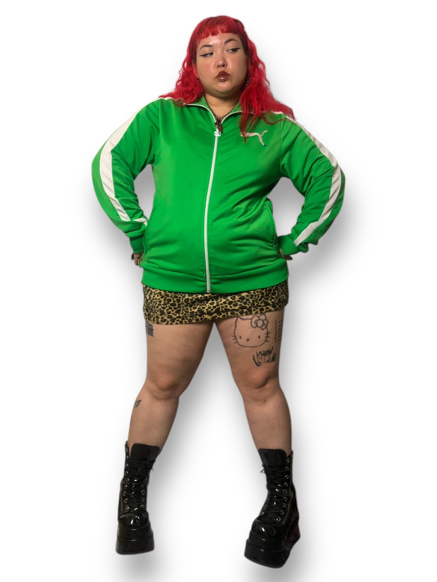 quintessential 00s piece!! logo zip down the front, white accents throughout, ribbed knit cuffs + waistband, mock turtleneck, iconic puma logo on the front chest (slightly faded, pictured), side zip pockets, some stretch (100% polyester)