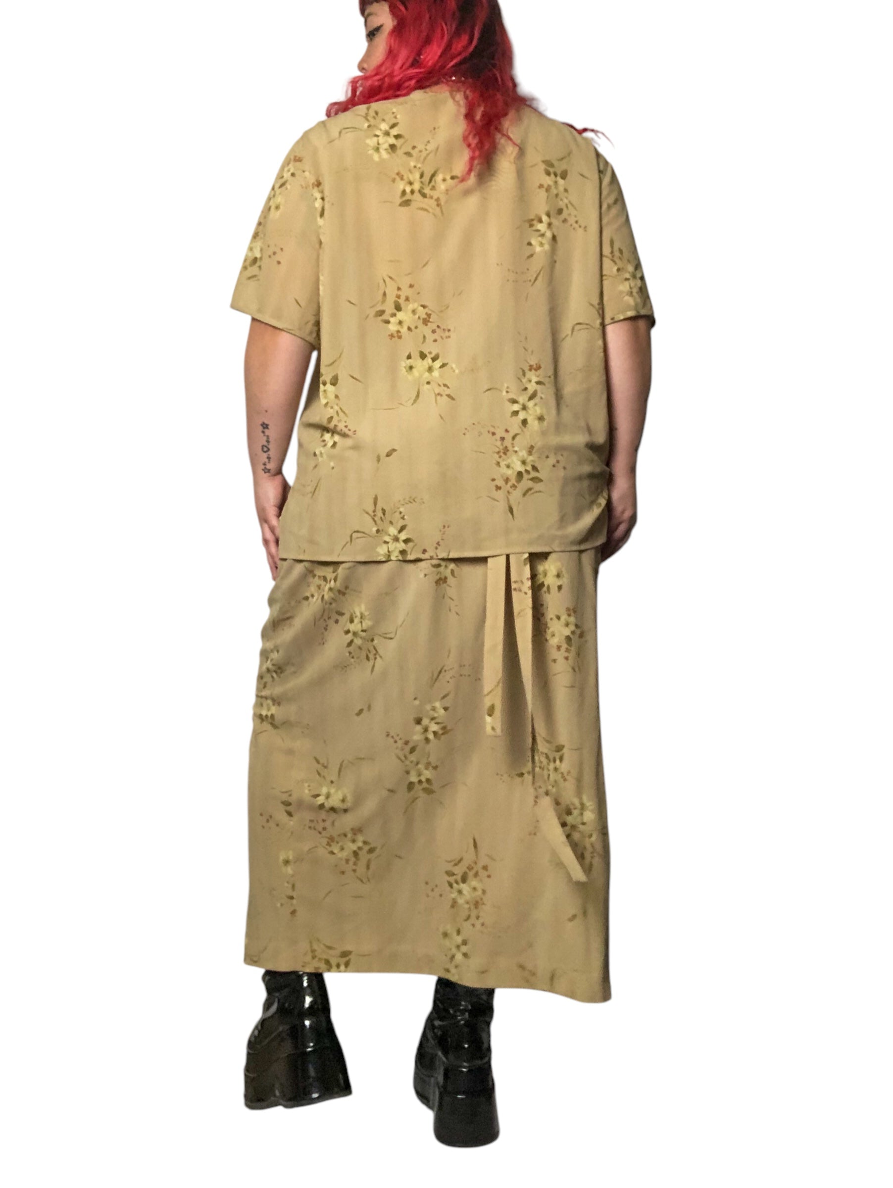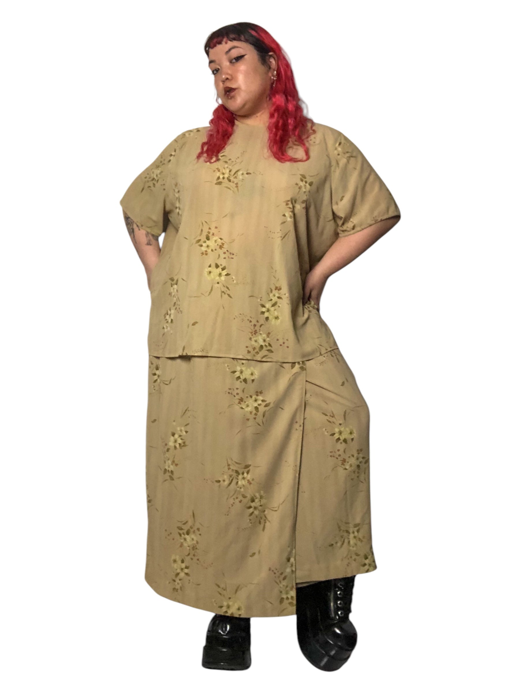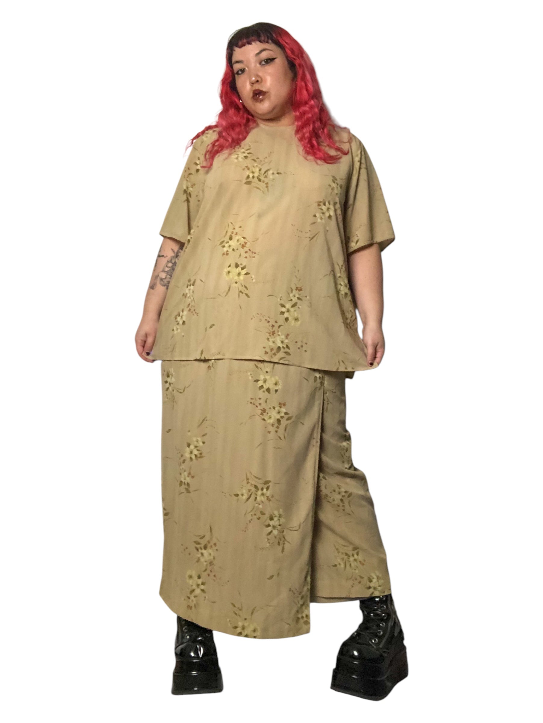 Y2K Rena Rowan Khaki Floral Print 2-Piece Set (3X)