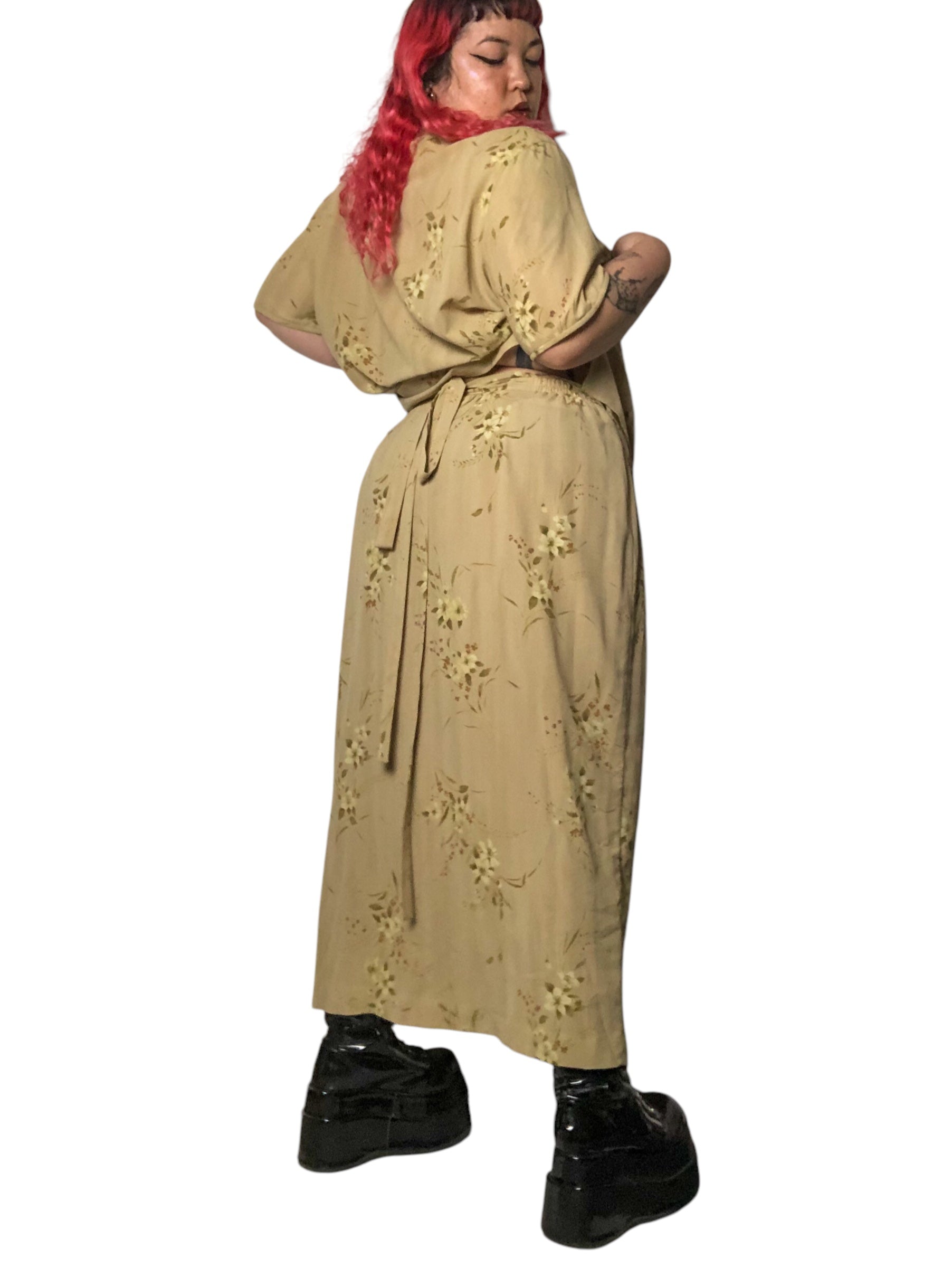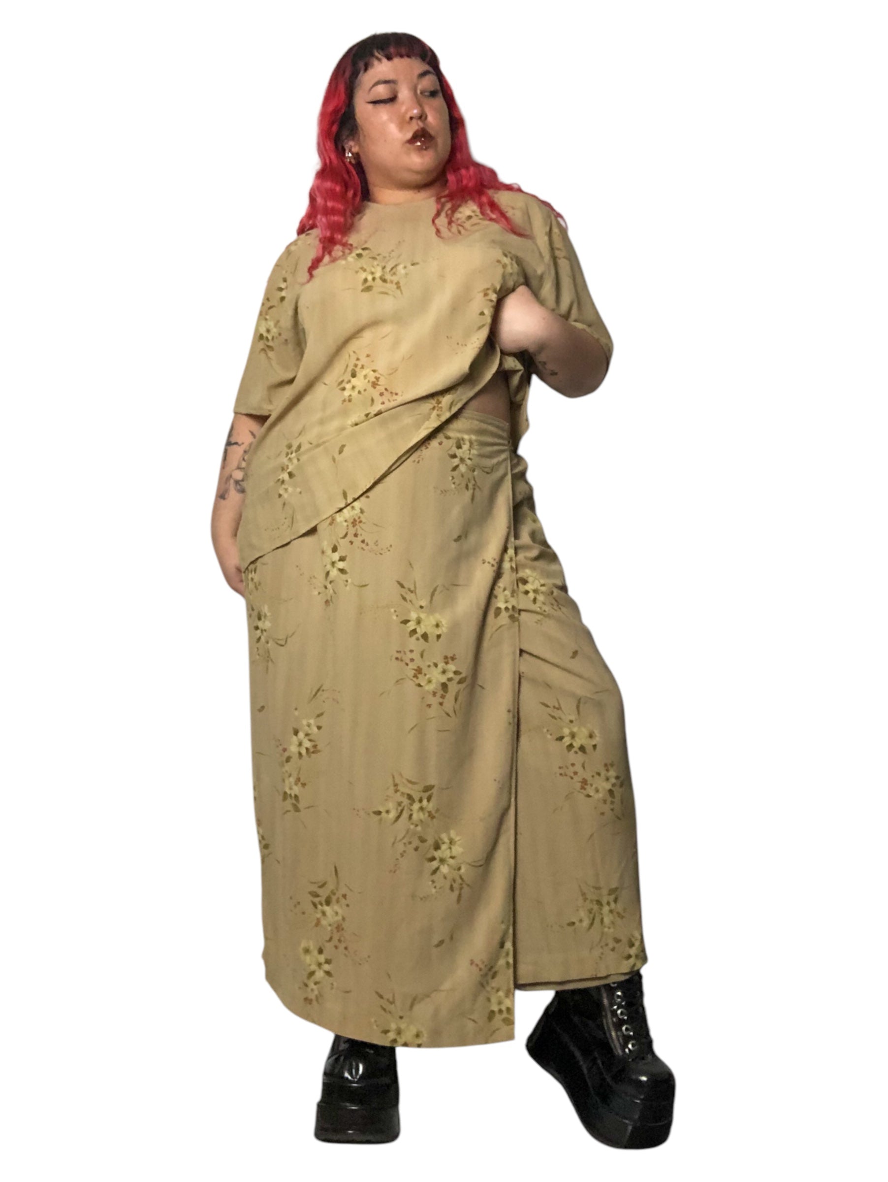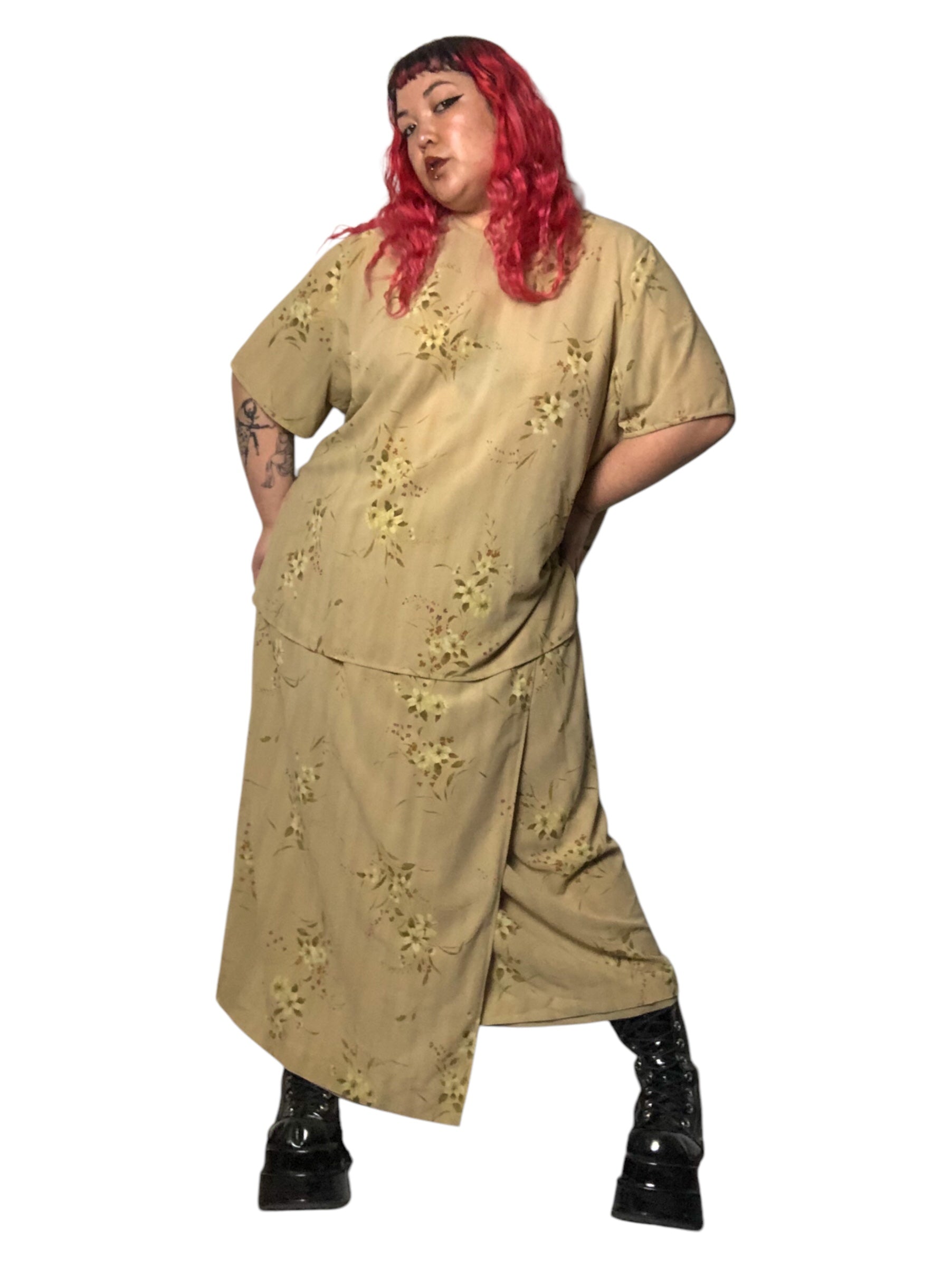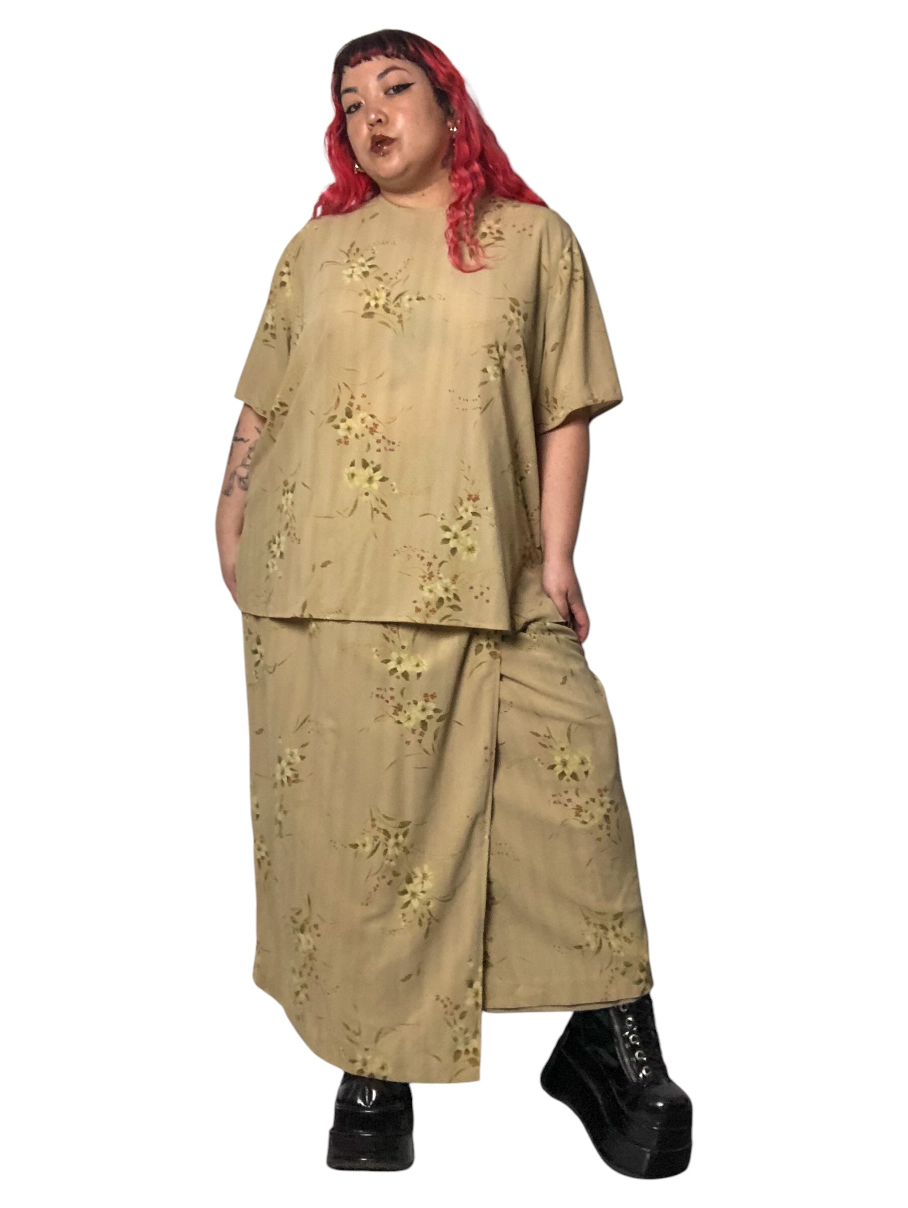 Y2K Rena Rowan Khaki Floral Print 2-Piece Set (3X)