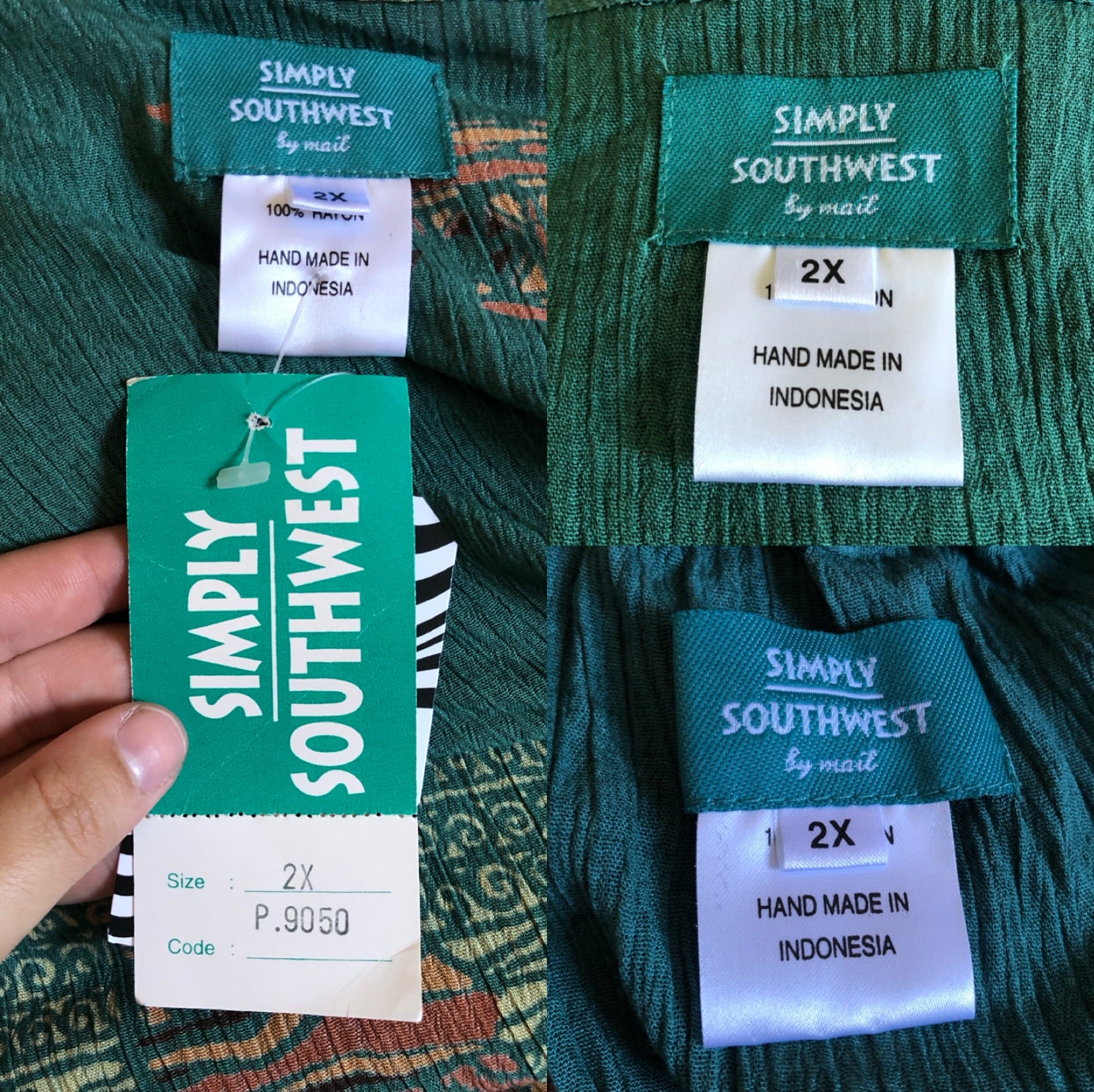 deadstock w/ tags! orange and yellow southwestern print design throughout, slightly crinkled textured fabric, stretchy elastic waistband on the skirt + pleating, 100% rayon