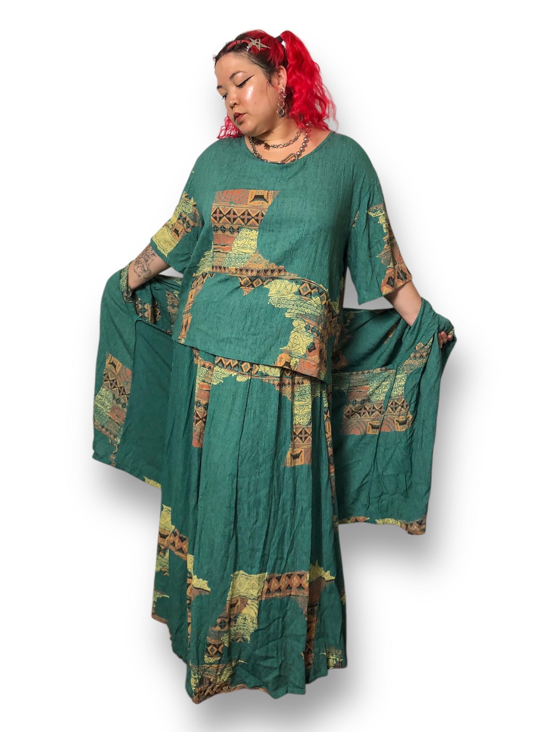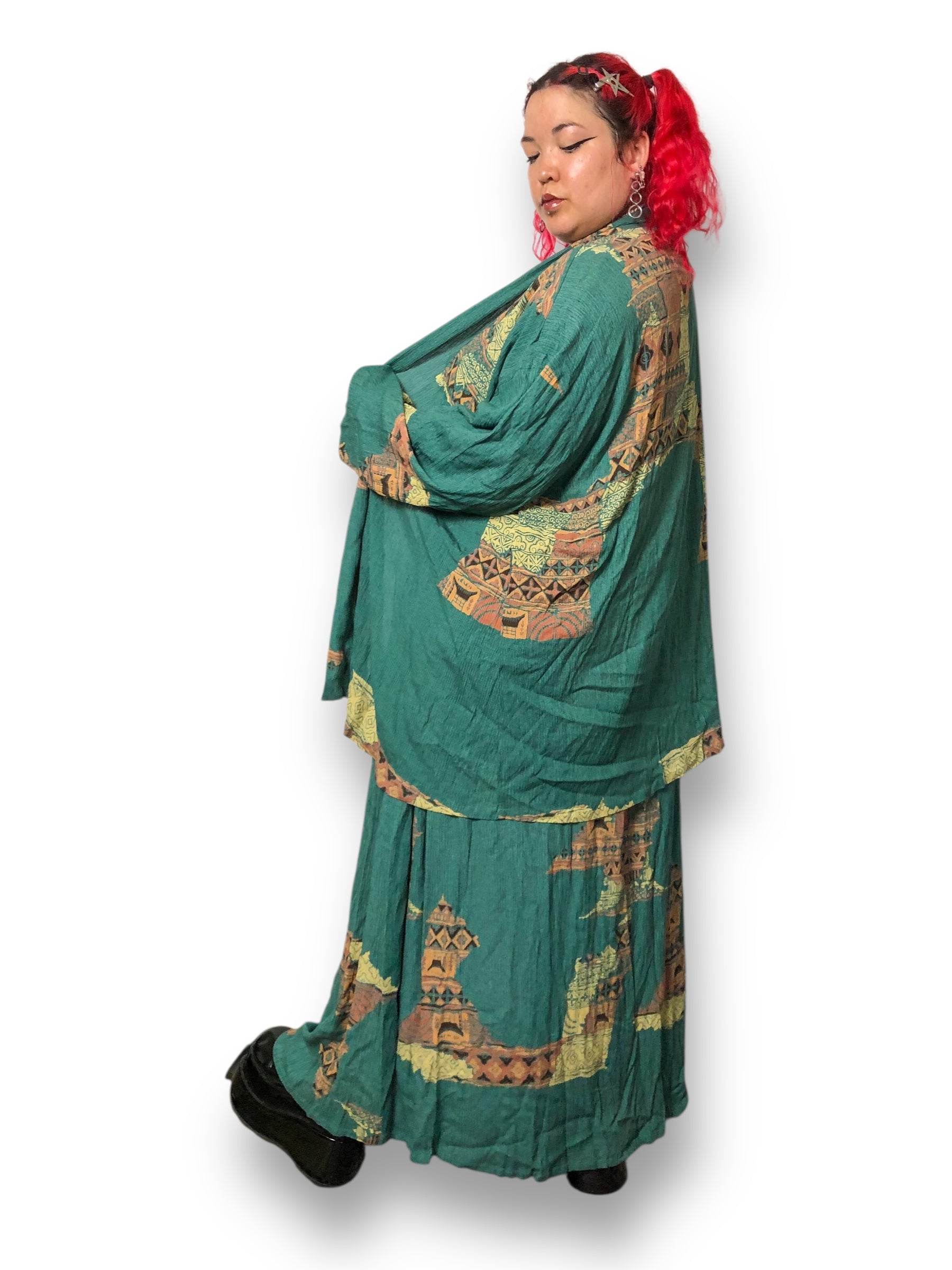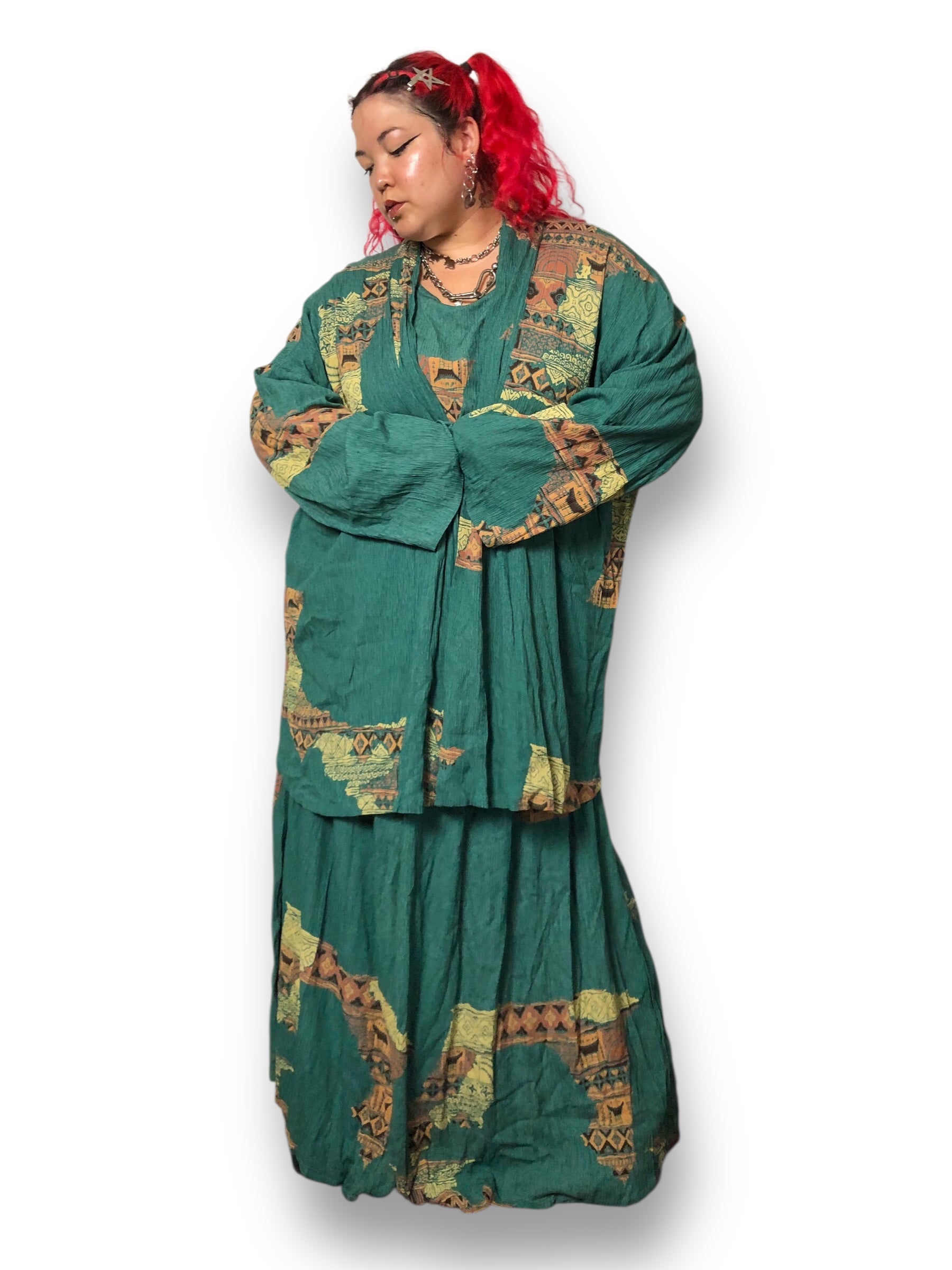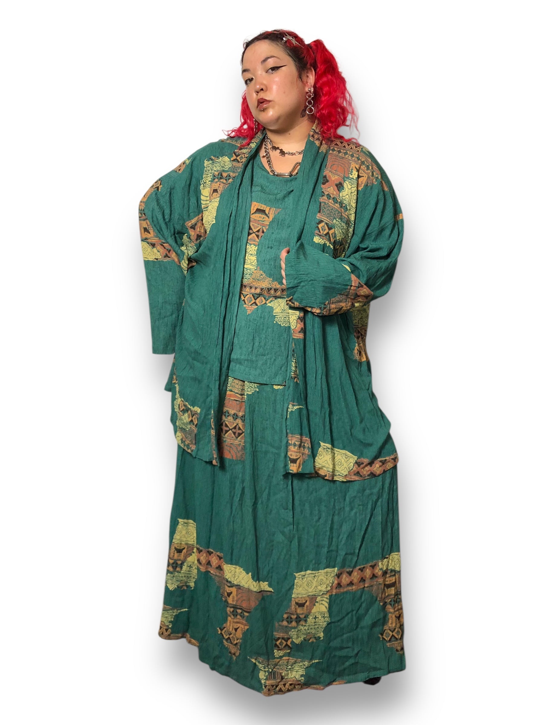 Y2K Simply Southwest Sea Green Retro Patterned 3-Piece Set (2X)