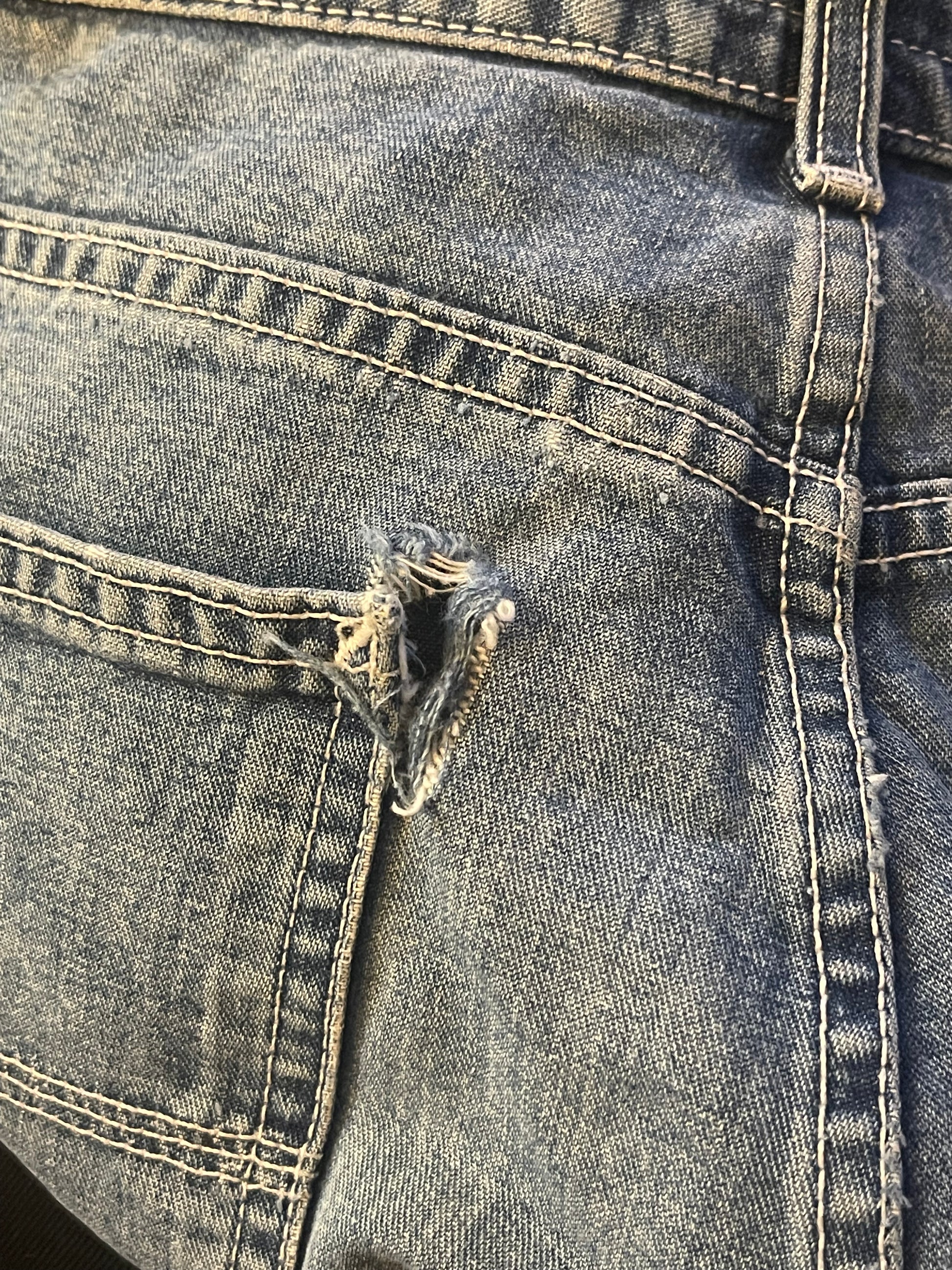 light wash jorts, multi pockets + side strap, feels like 100% cotton, hole in the back + faint stain in the front (pictured)