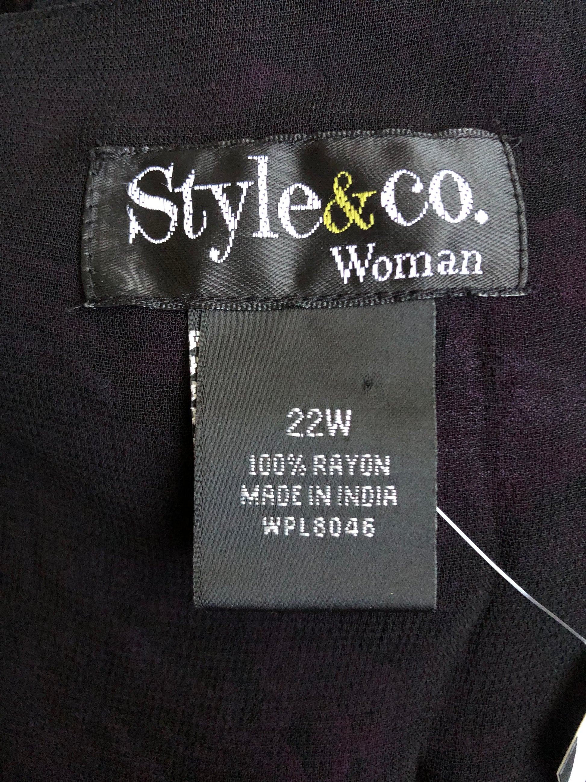 purple and pink graphic sunflower print throughout~ tie at the neckline, ruffled hems, layered fabrics (100% rayon)