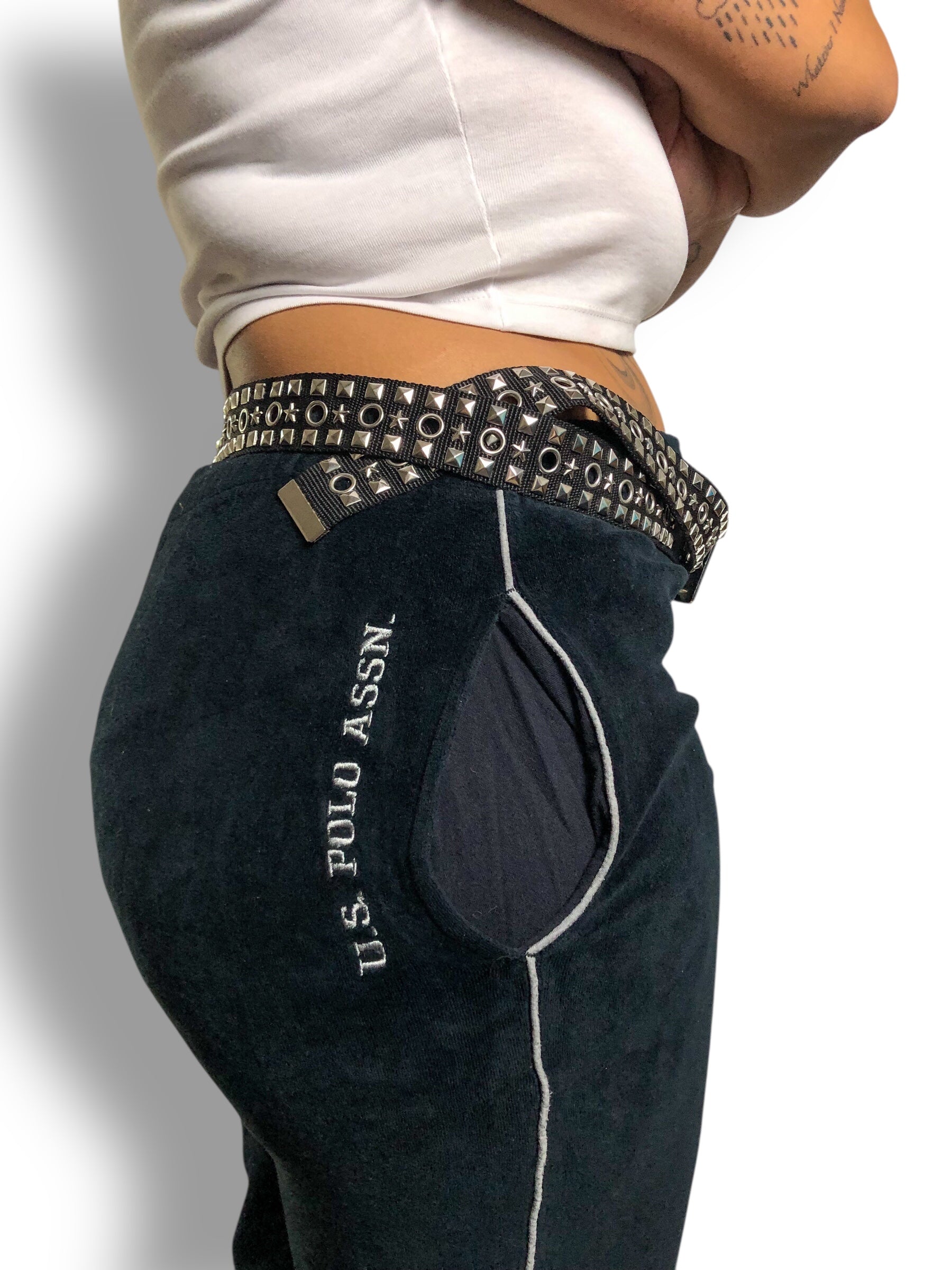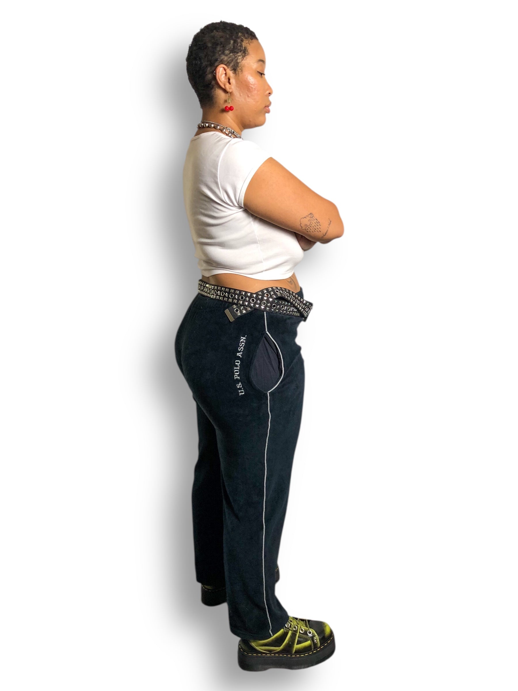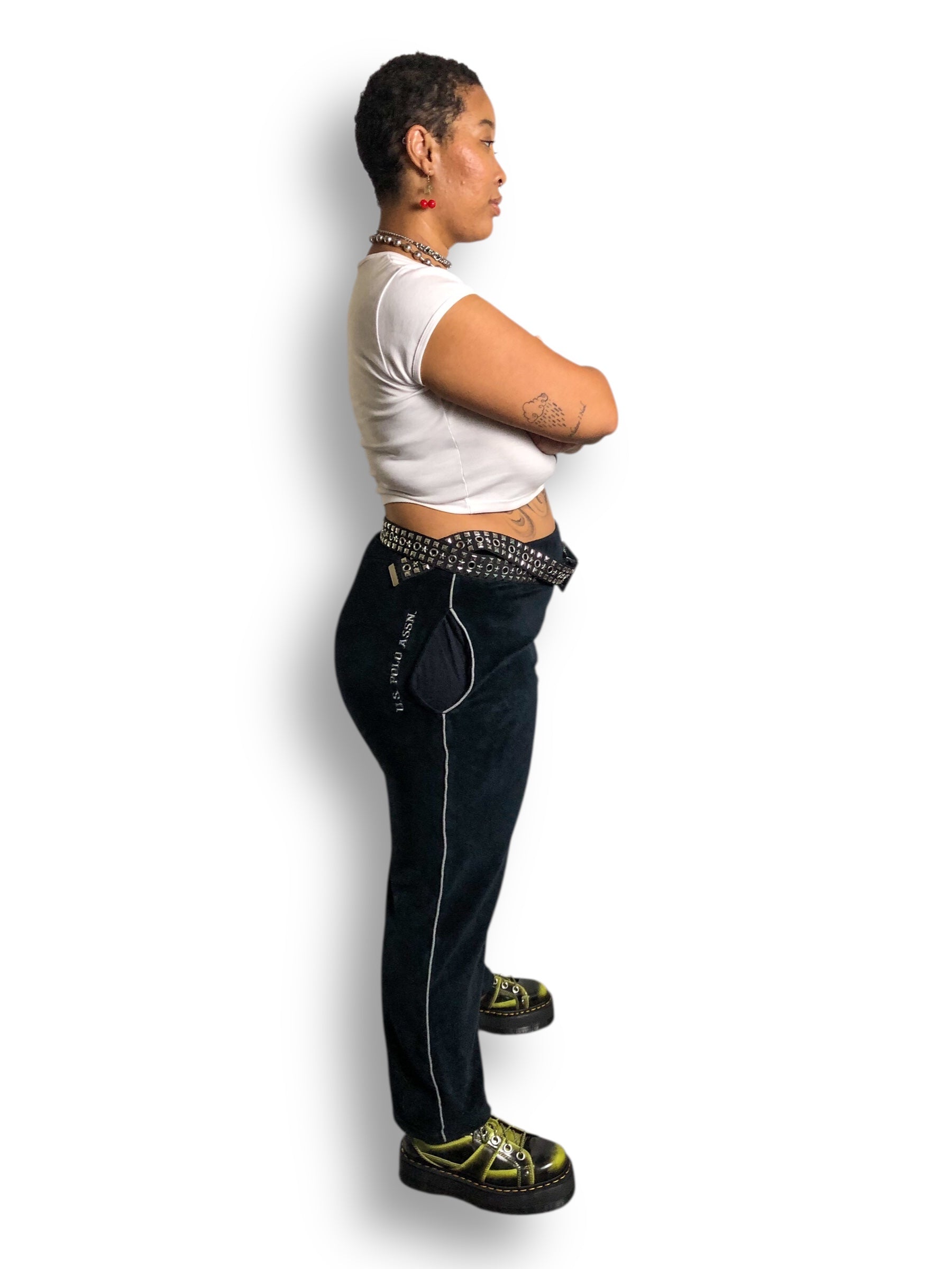 Y2K U.S. Polo Assocation Black Velour Track Pants (M/L/XL/2X)